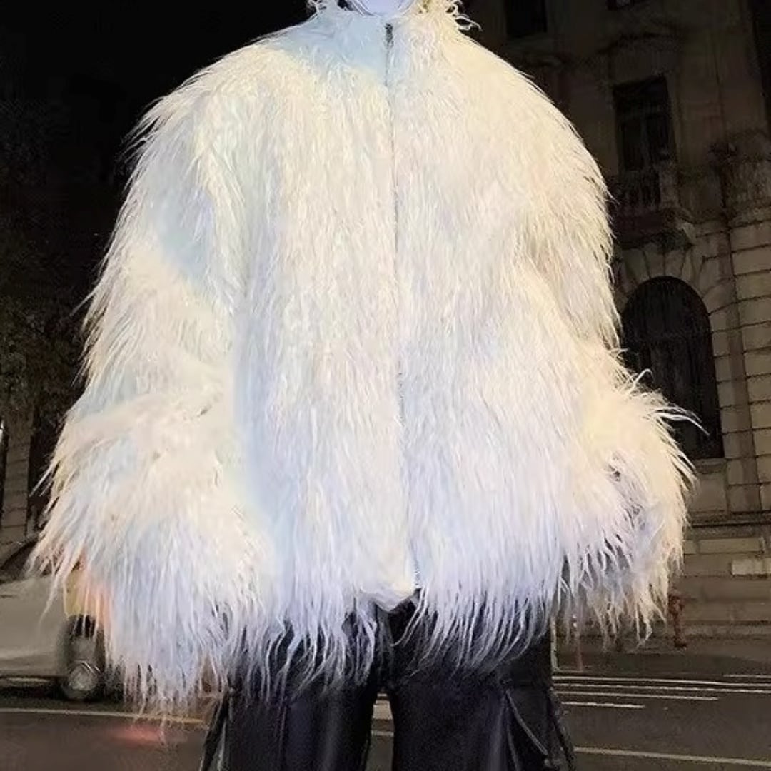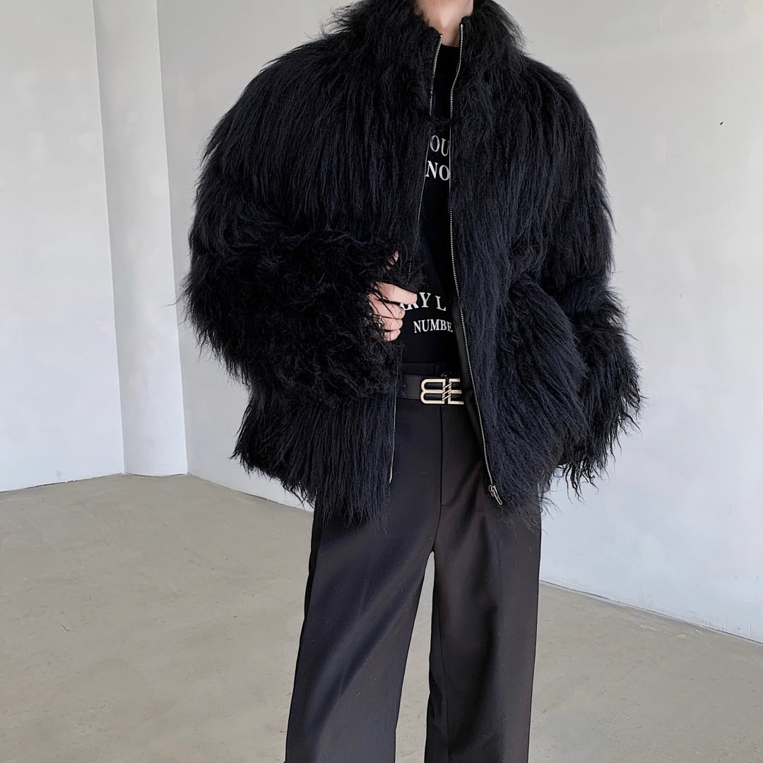 ボリュームシャギーファー スタンドカラージップブルゾン 2カラー D12103