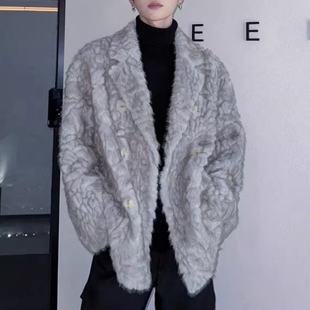 ダブルボタン フェイクファーショートコート 3カラー D12114