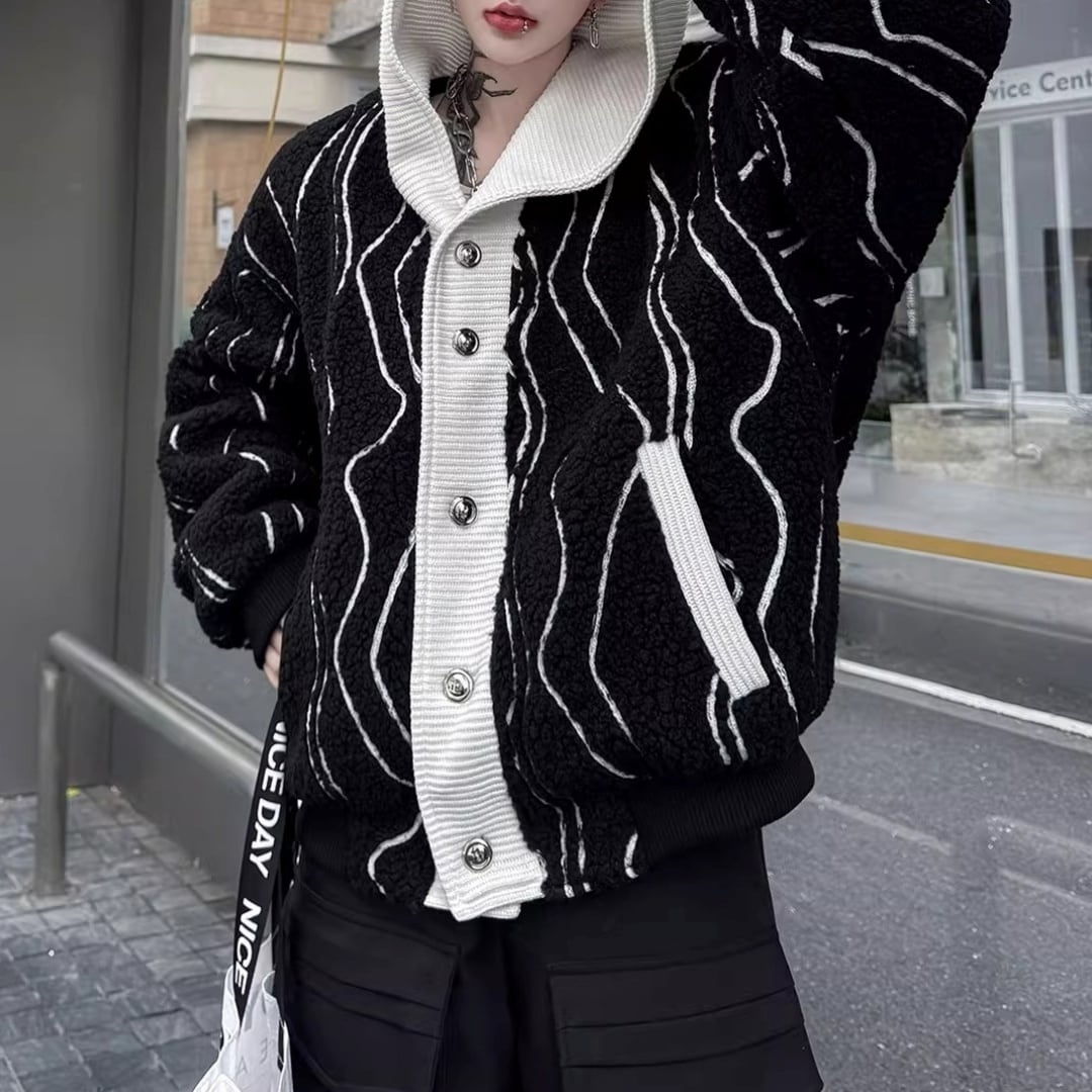 ウェーブパターン オーバーサイズボアフーディーブルゾン 2カラー D12138