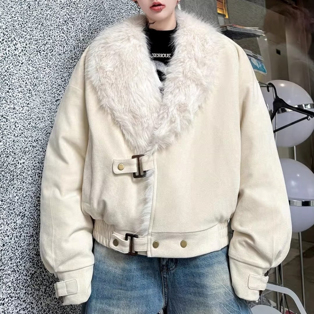 ファーカラー ムートン風ショートブルゾン 2カラー D12140