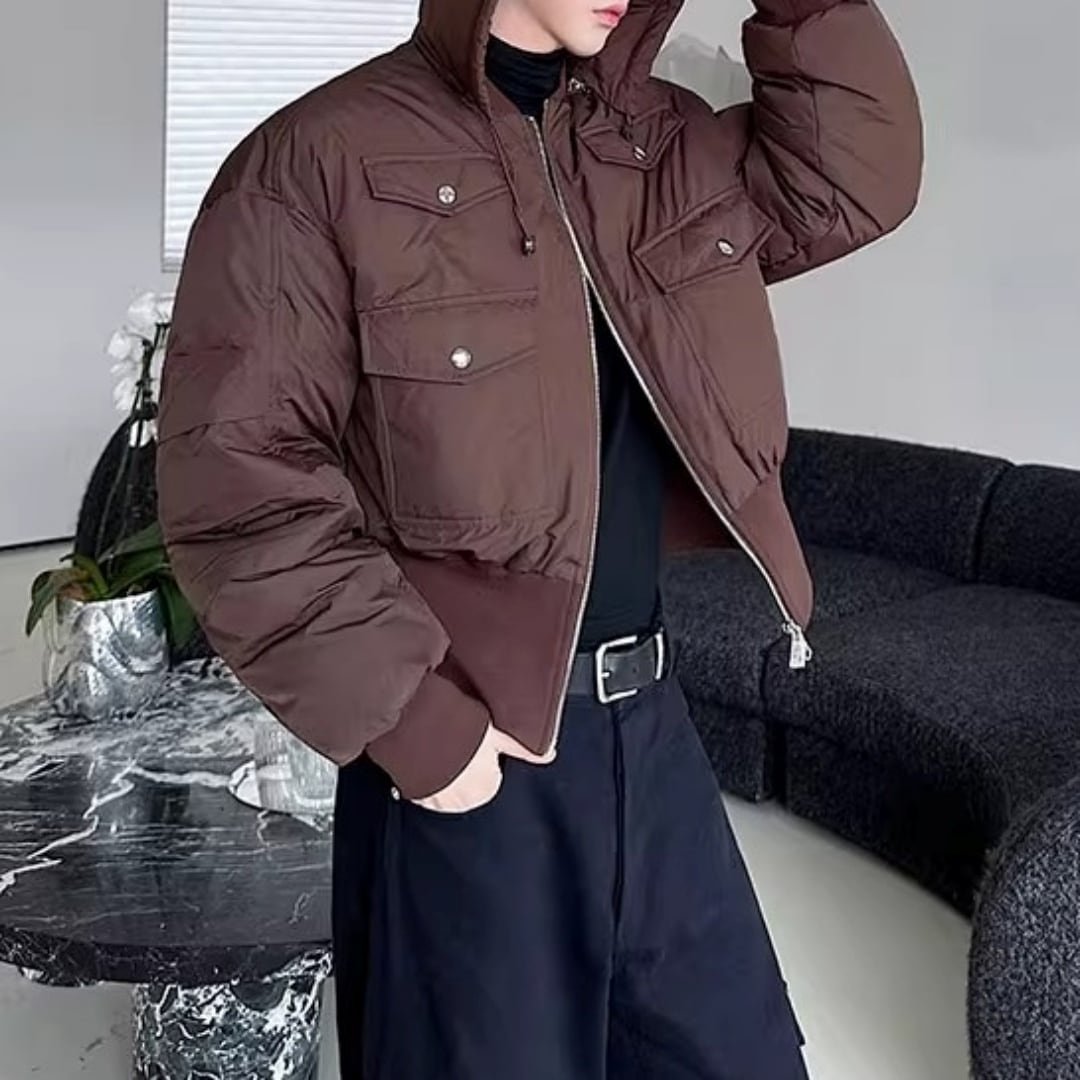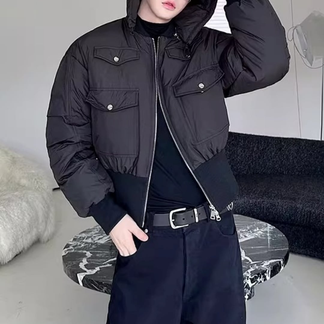 ボックスポケット クロップドフーデッドダウンブルゾン 2カラー D12162