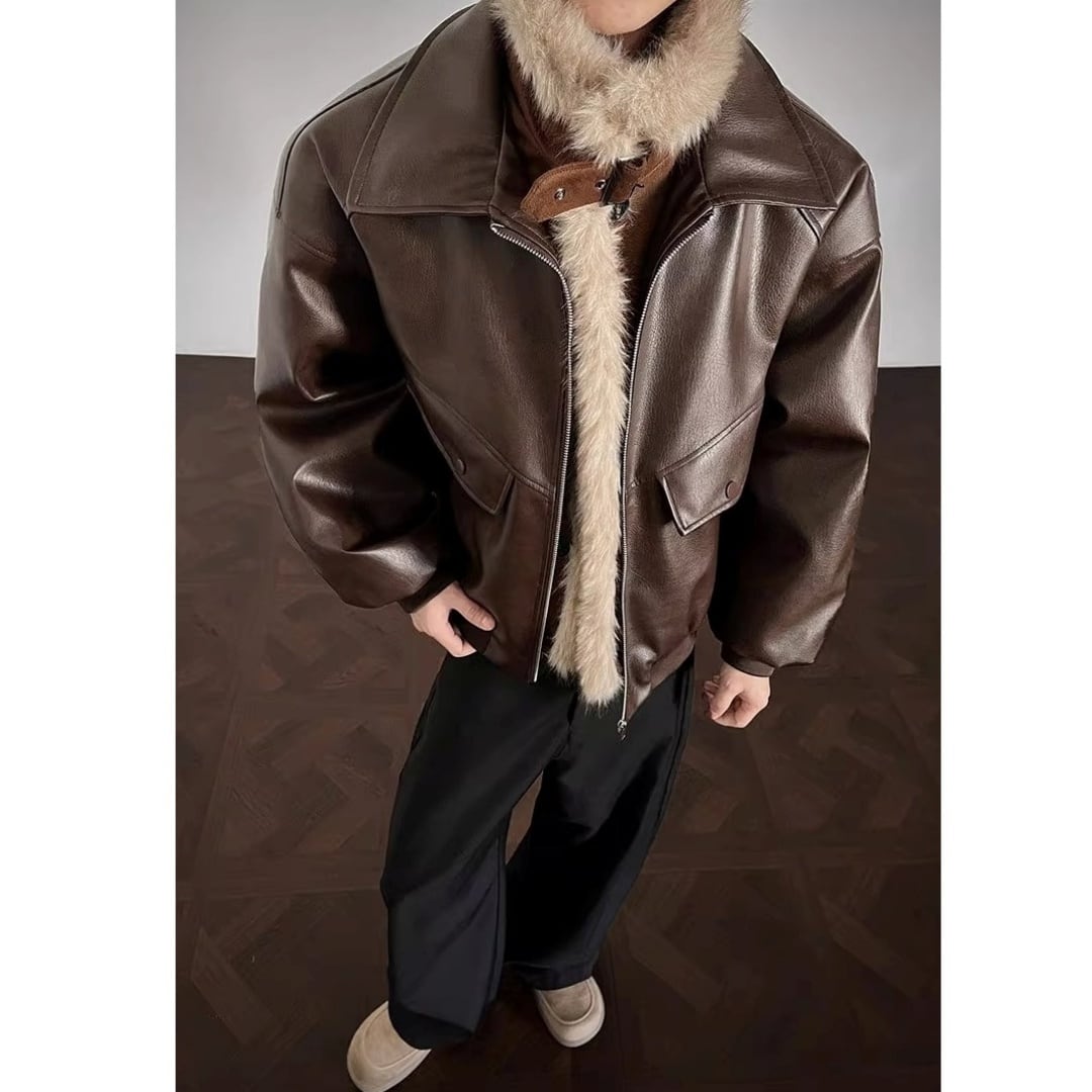 ファーカラー PUレザーフライトブルゾン 2カラー D12167