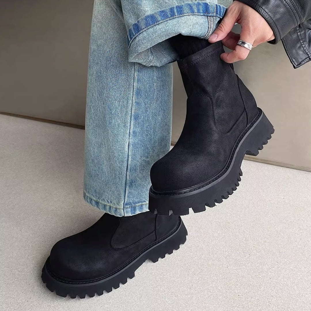 レトロ風 タンクソールアンクルブーツ D12173