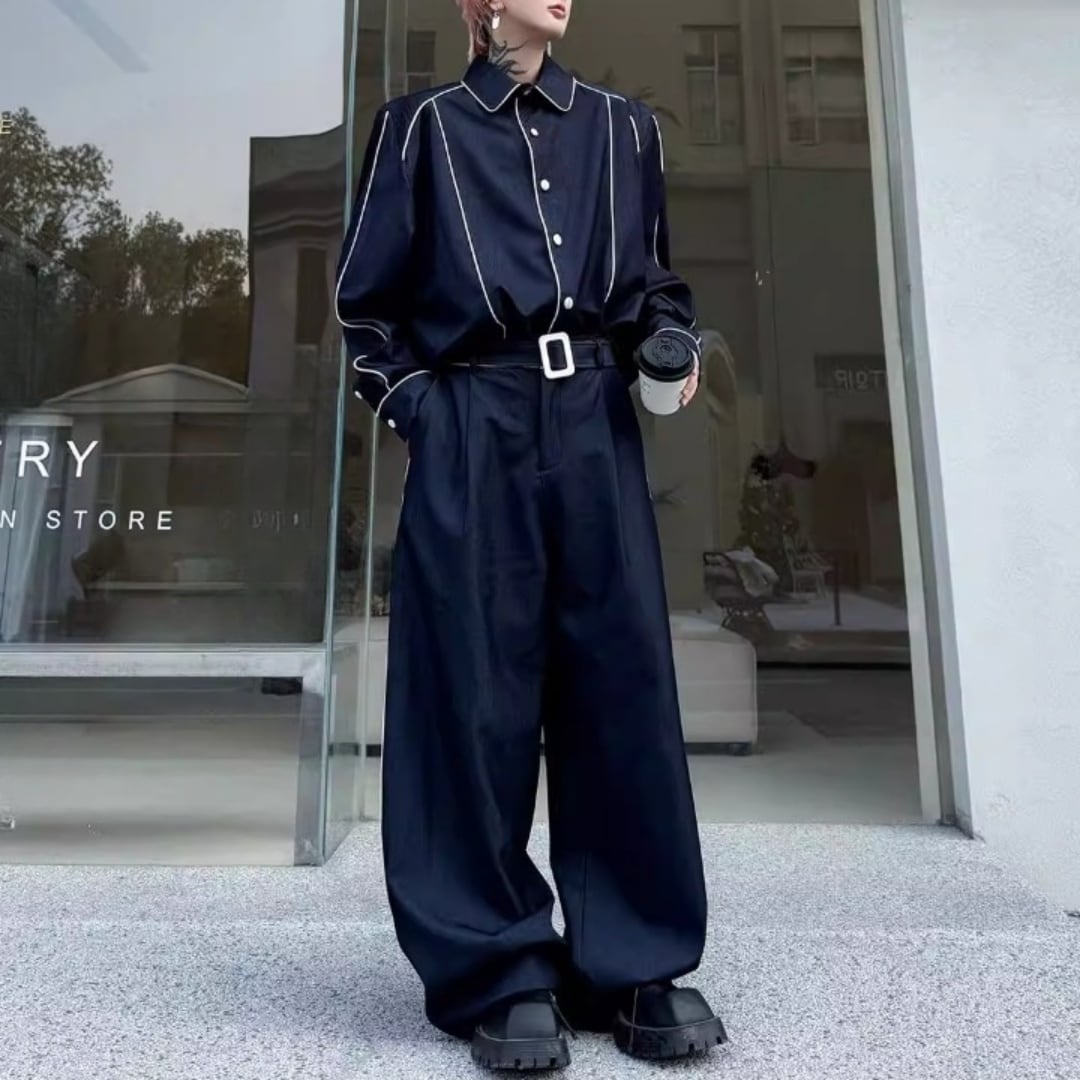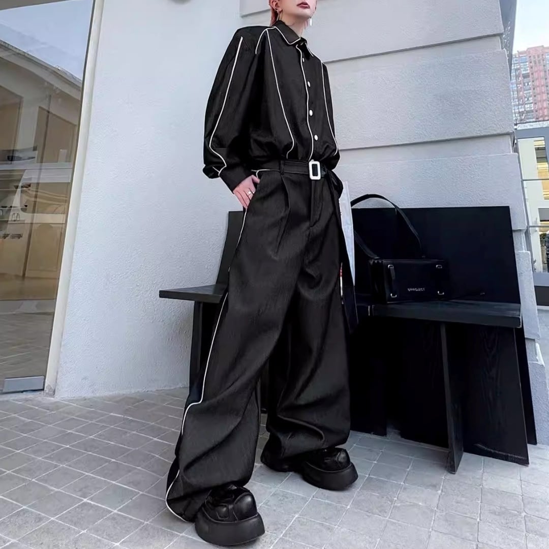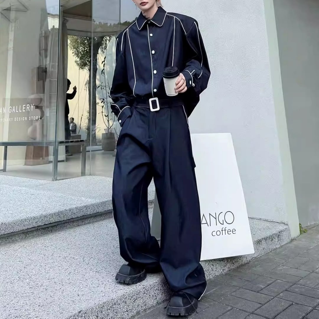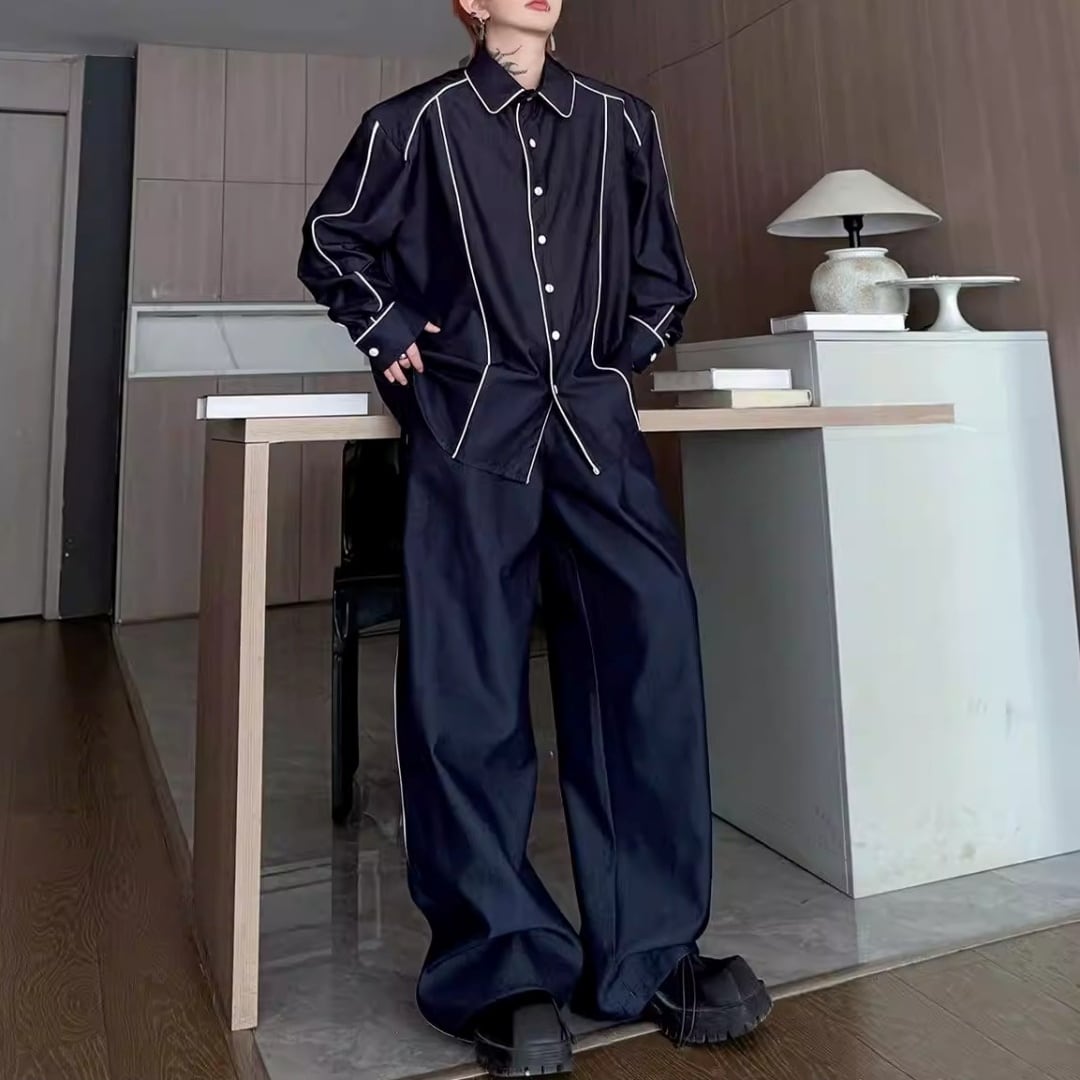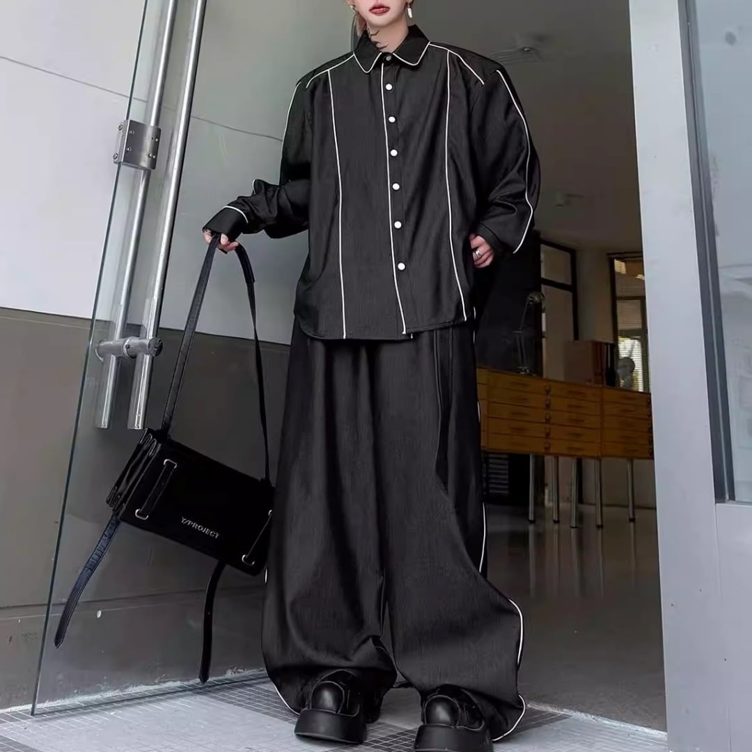 コントラストパイピング オーバーサイズセットアップ 2カラー D12192