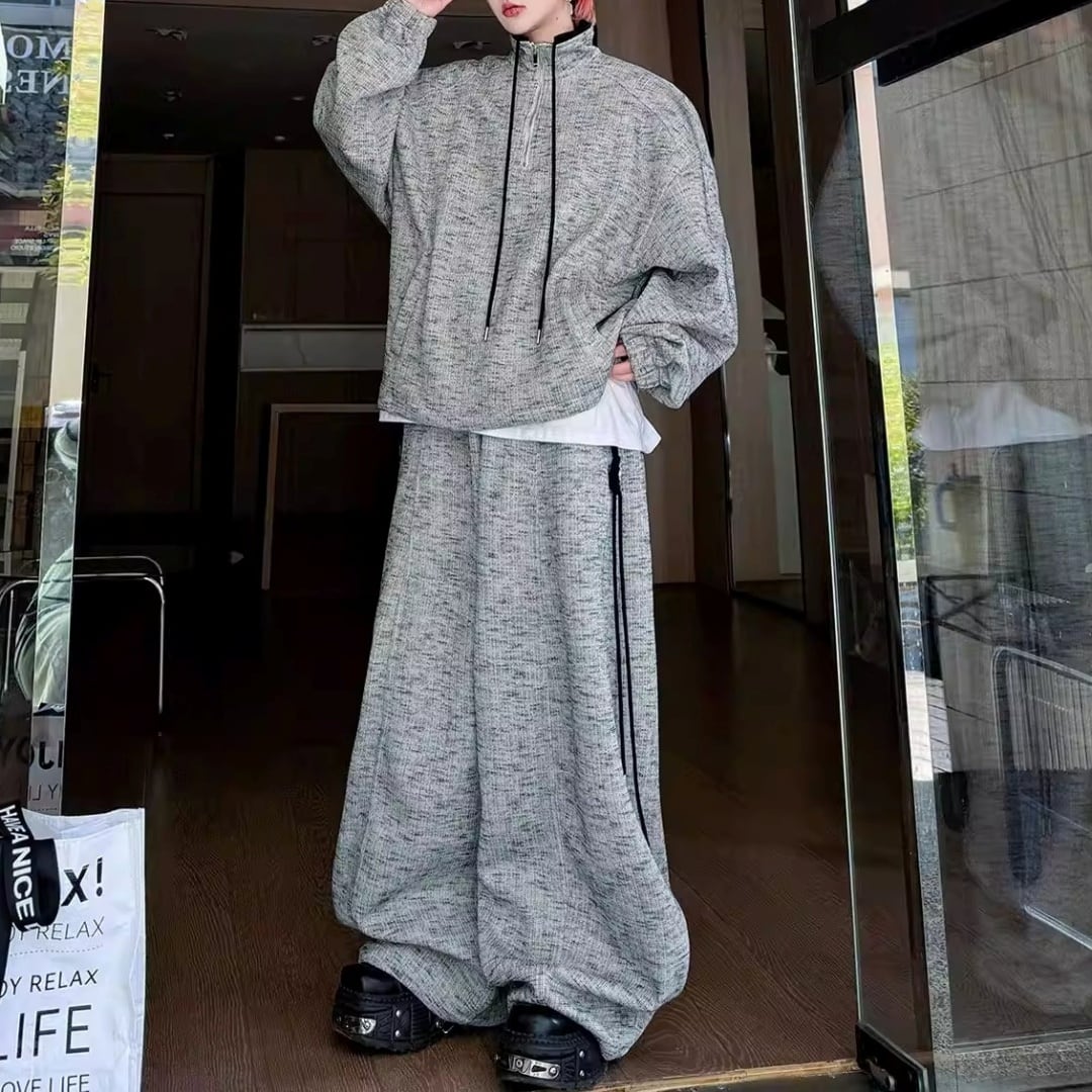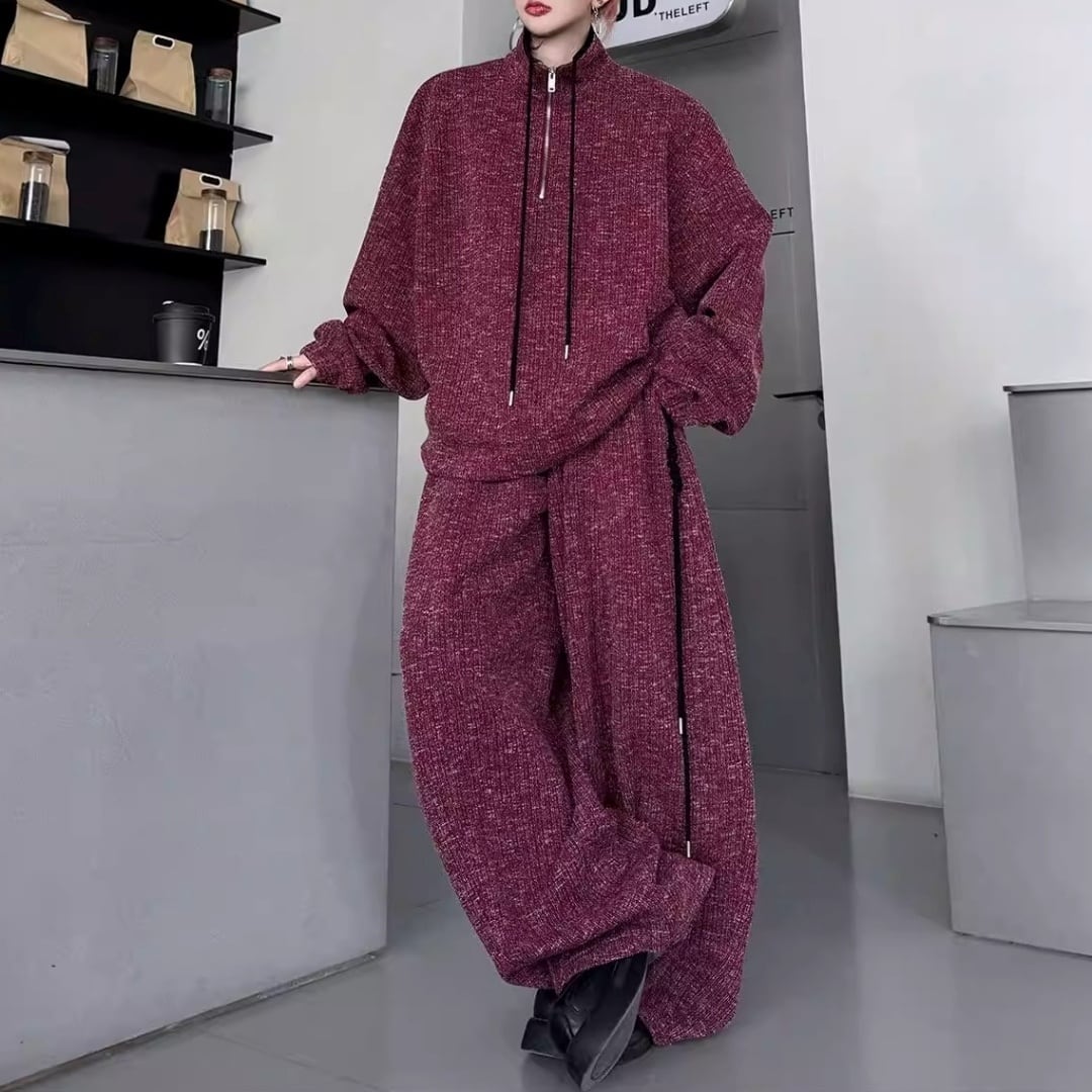 メランジツイード風 オーバーサイズハーフジップセットアップ 2カラー D12201