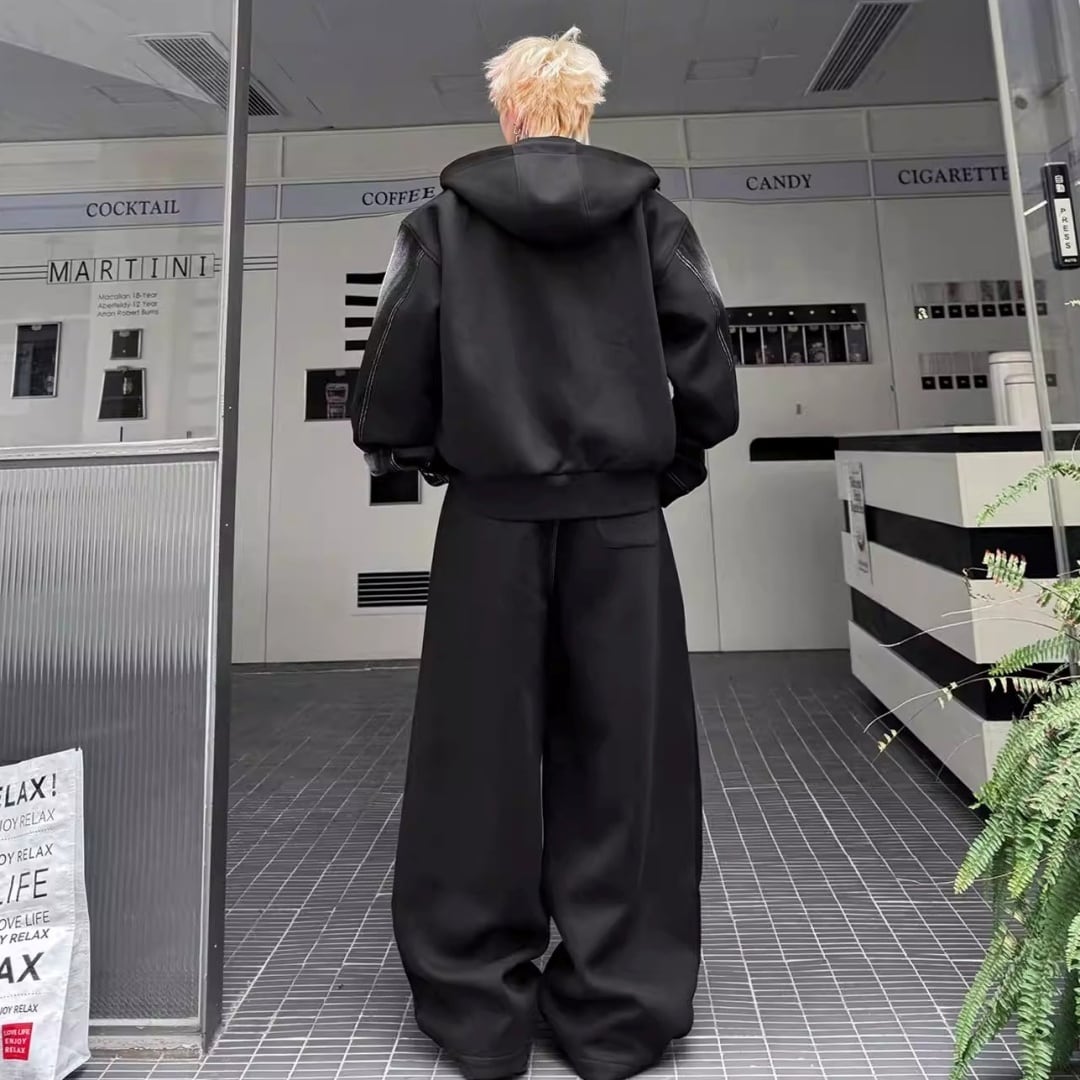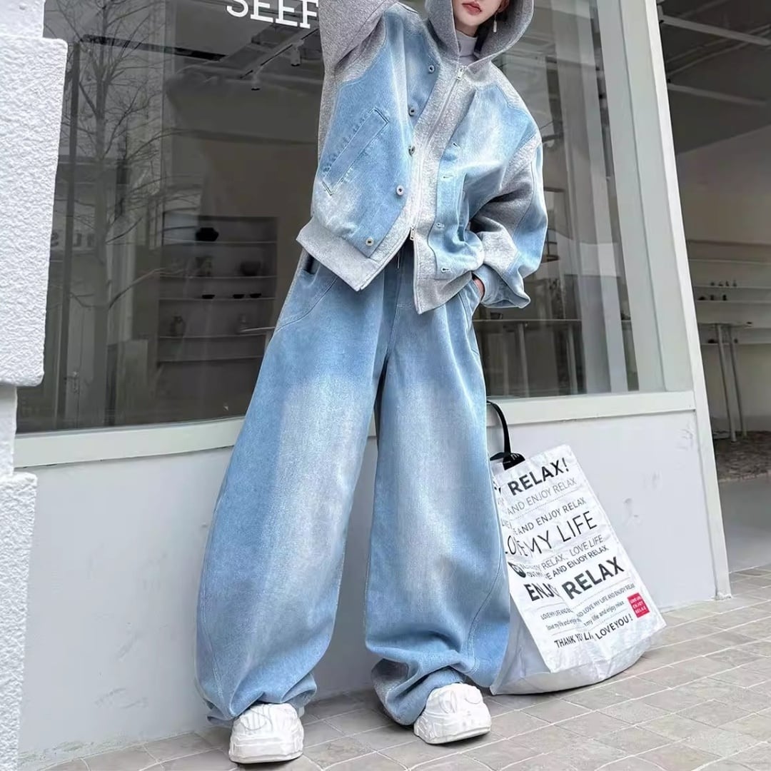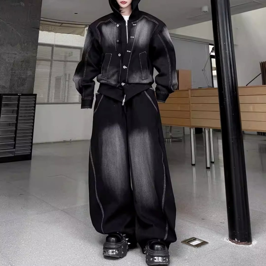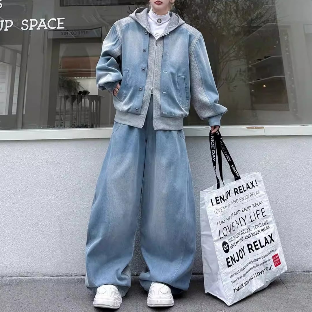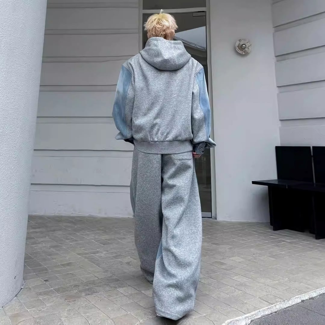 フェード加工 切替デニムフーディー&ワイドパンツセットアップ 2カラー D12213