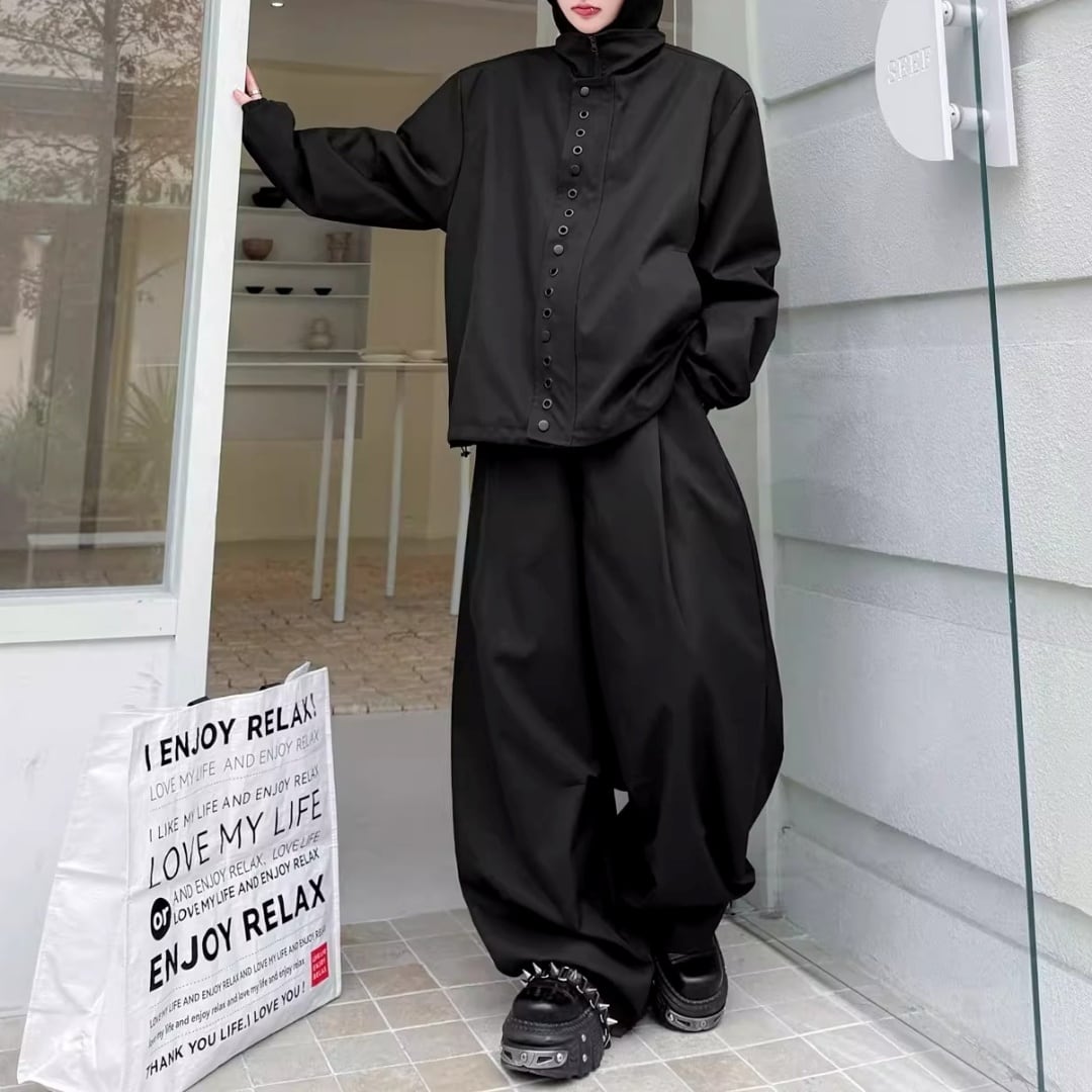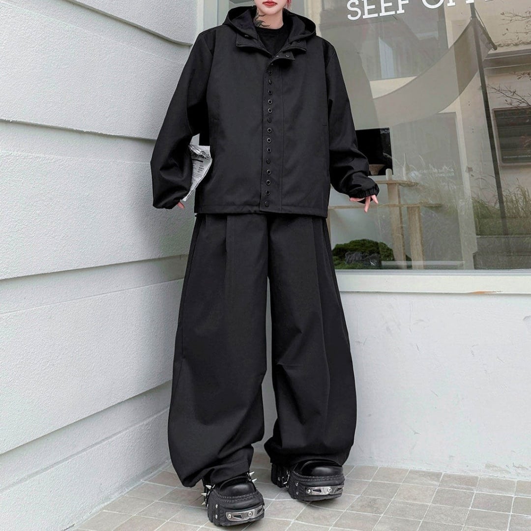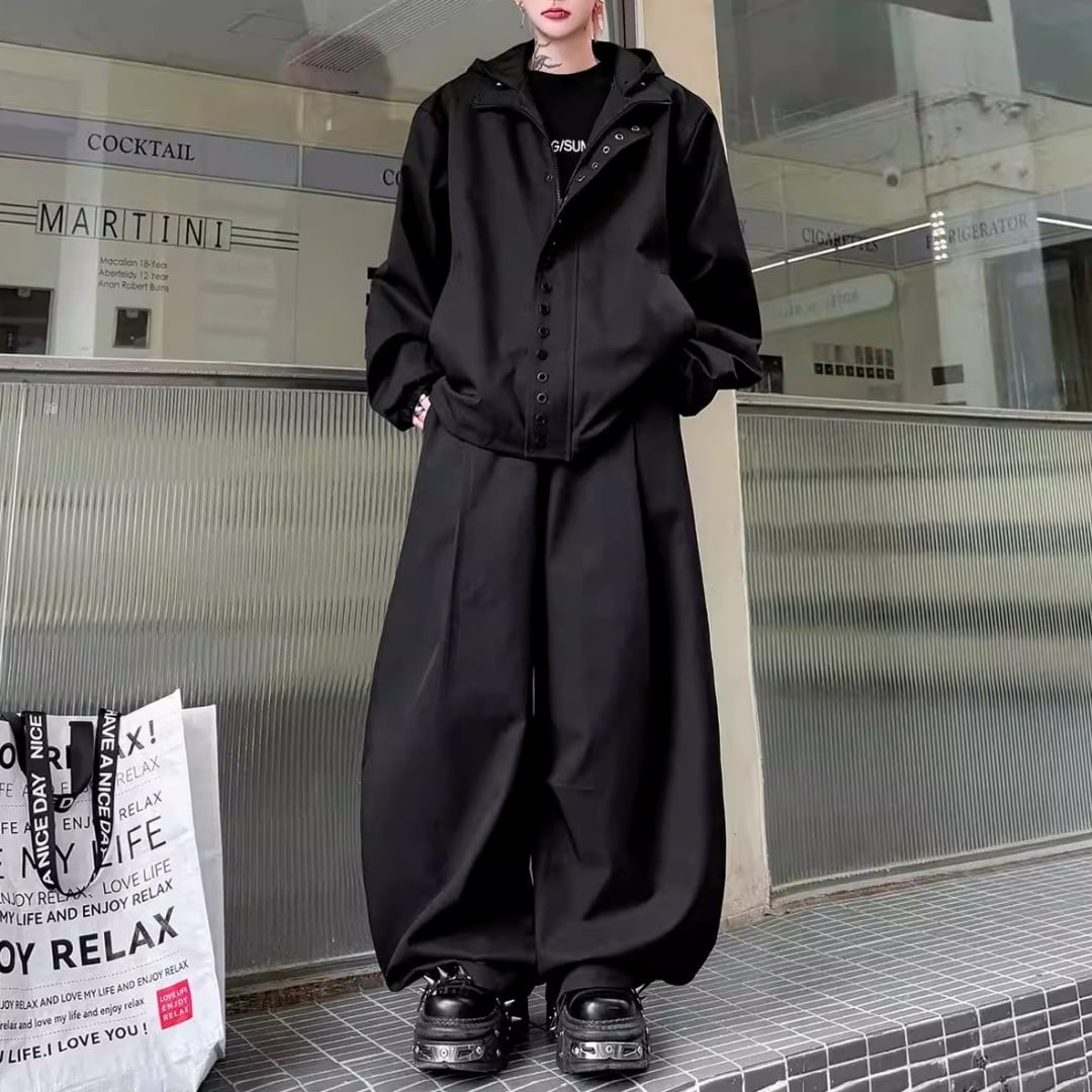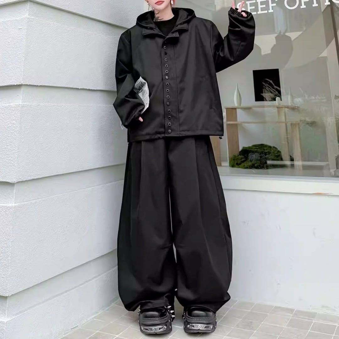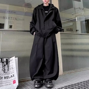 テックデザイン フーディジャケット&ワイドパンツセットアップ 2カラー D12214