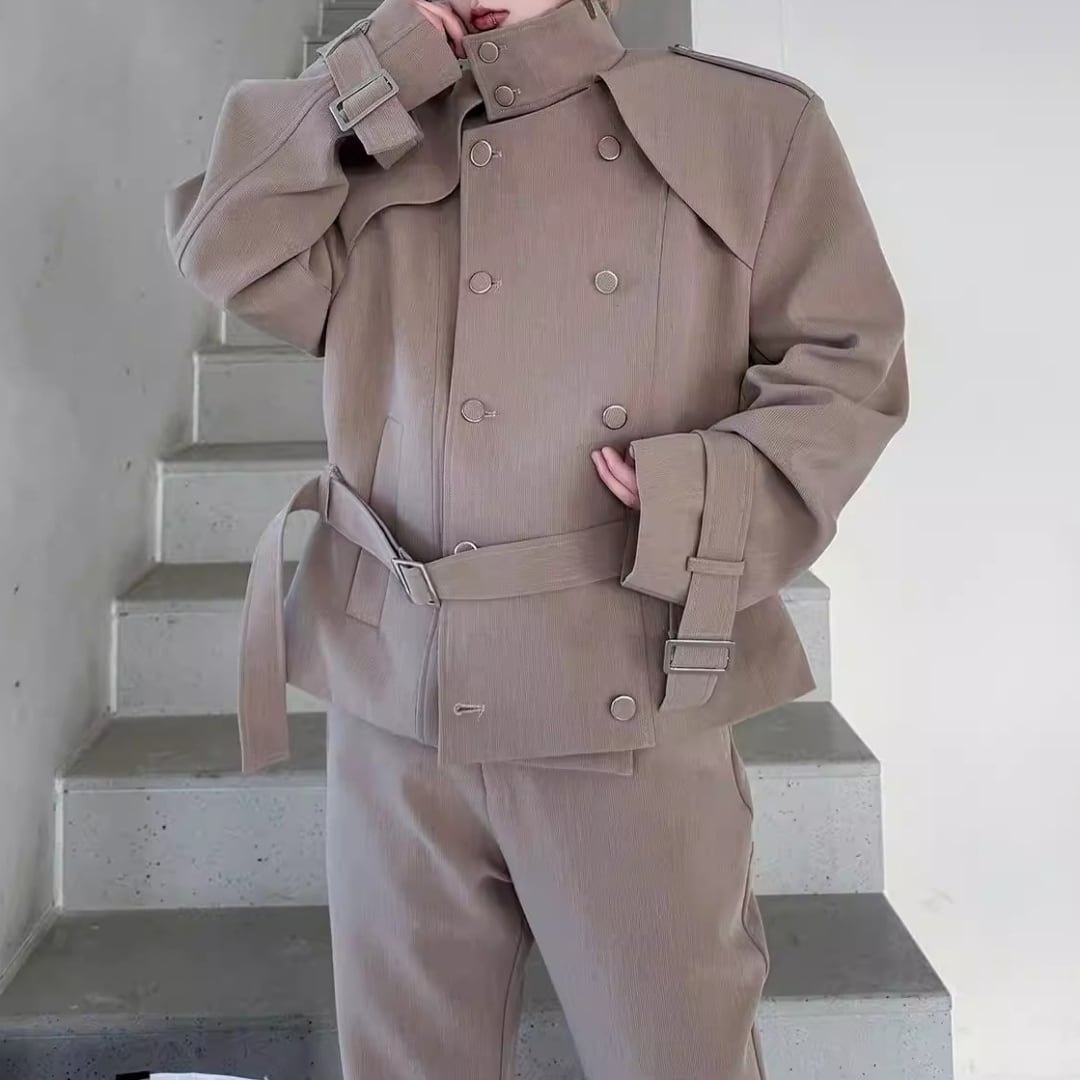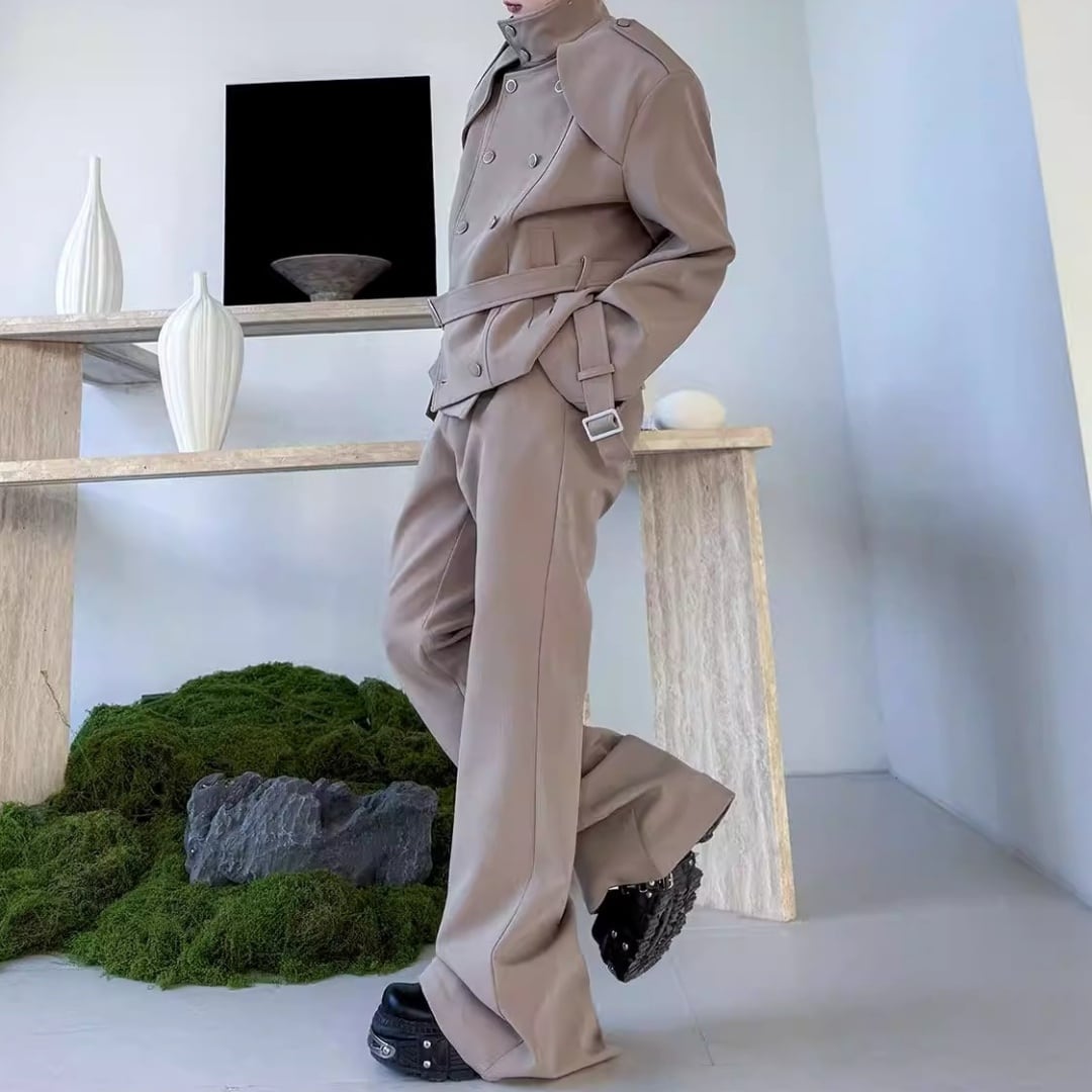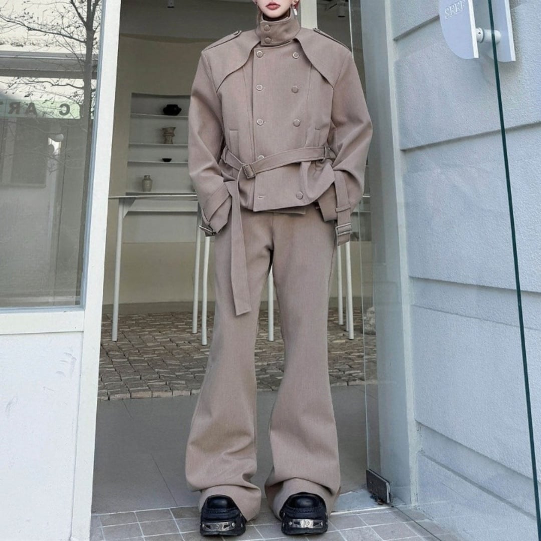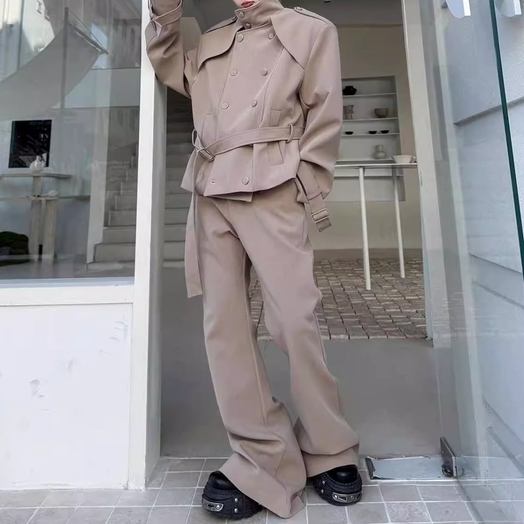 エッジモード ダブルブレストベルテッドセットアップ 3カラー D12220