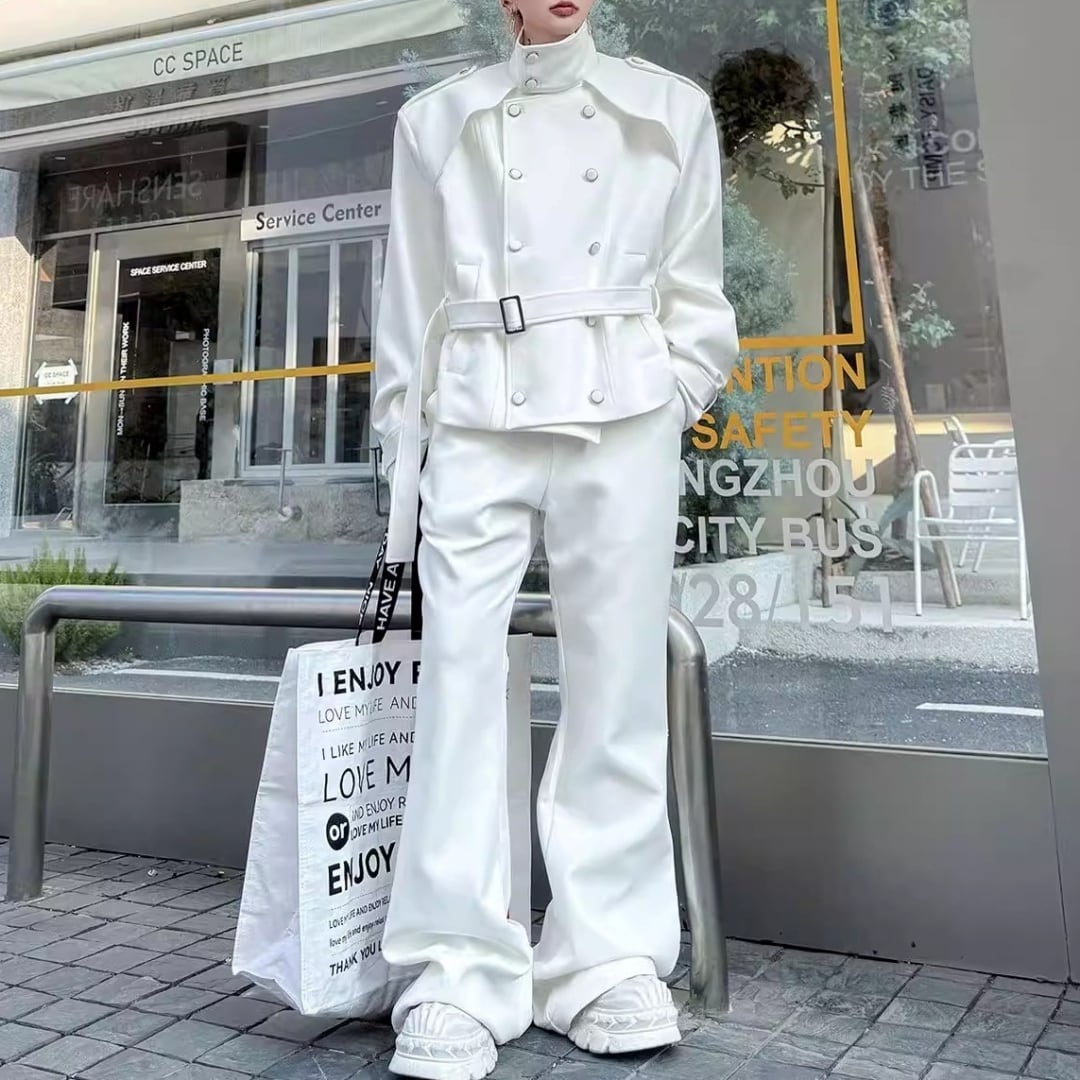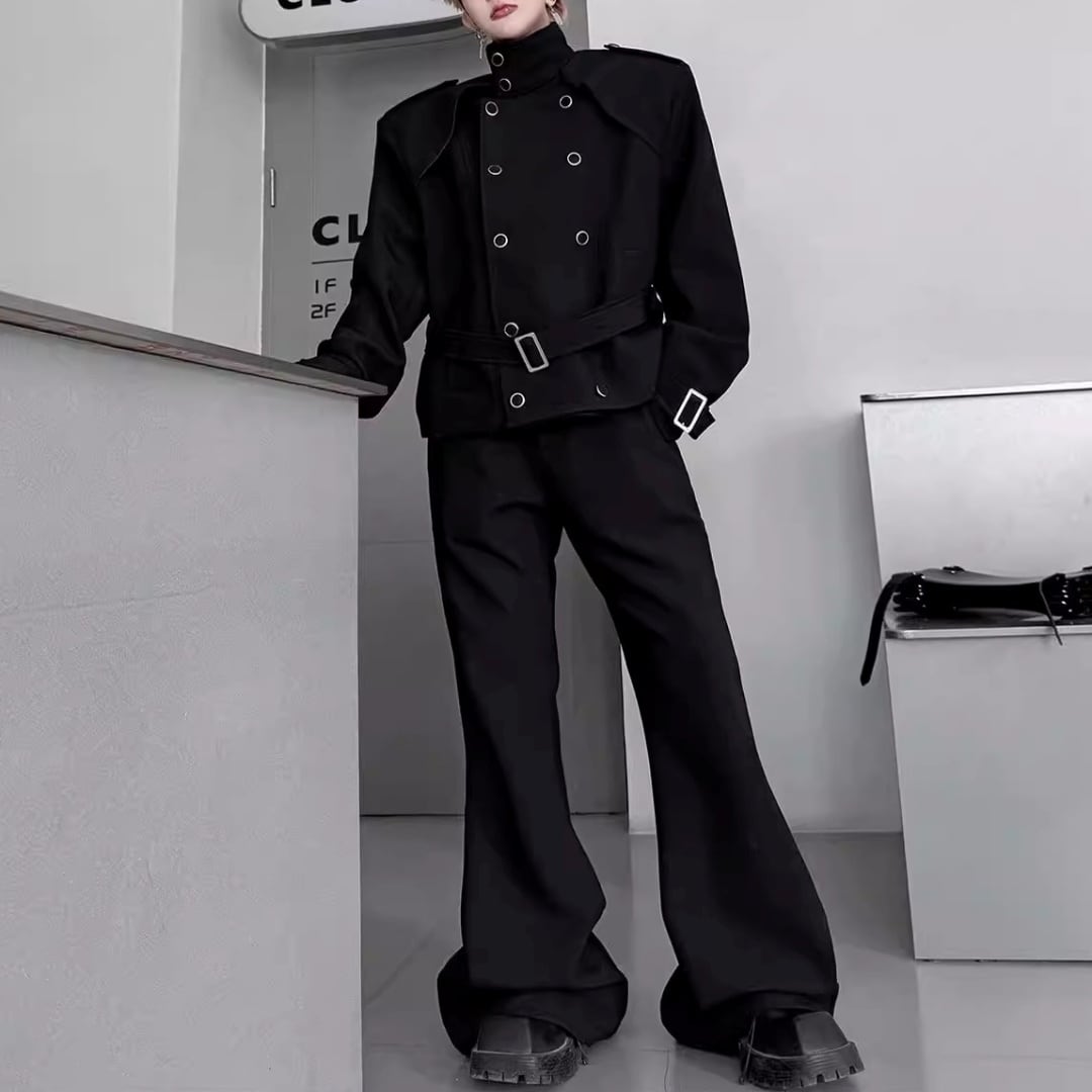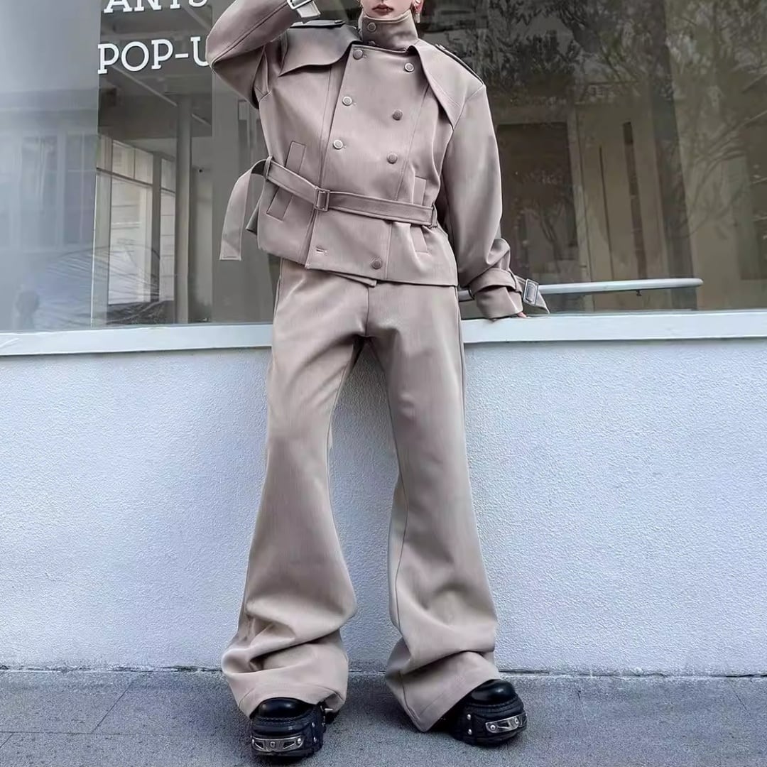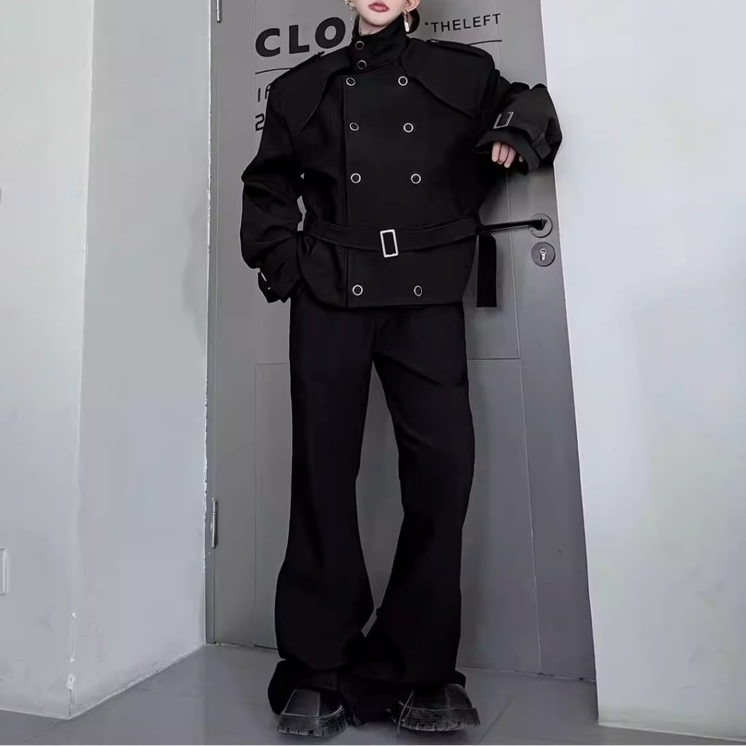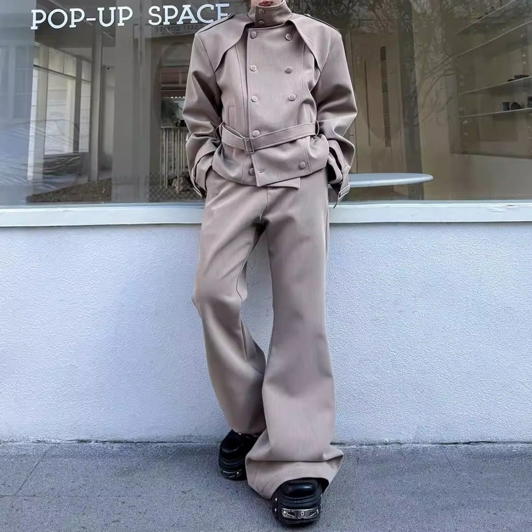 エッジモード ダブルブレストベルテッドセットアップ 3カラー D12220