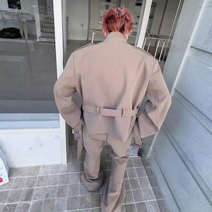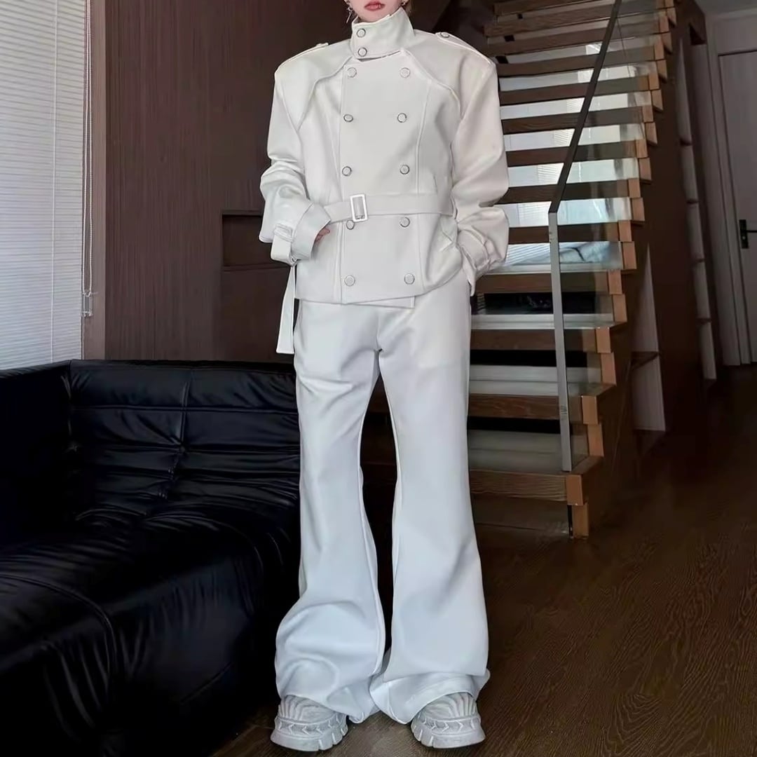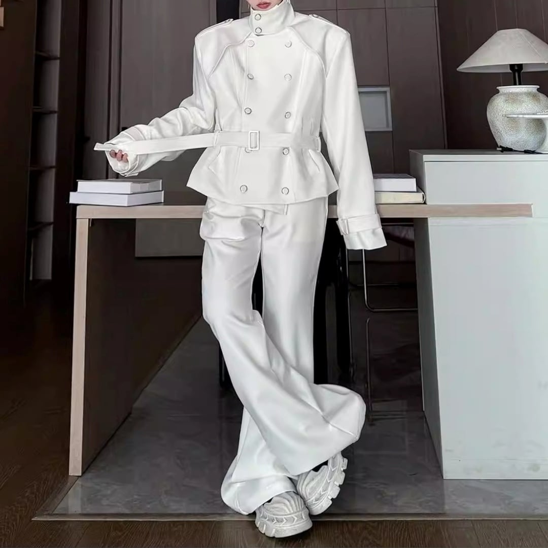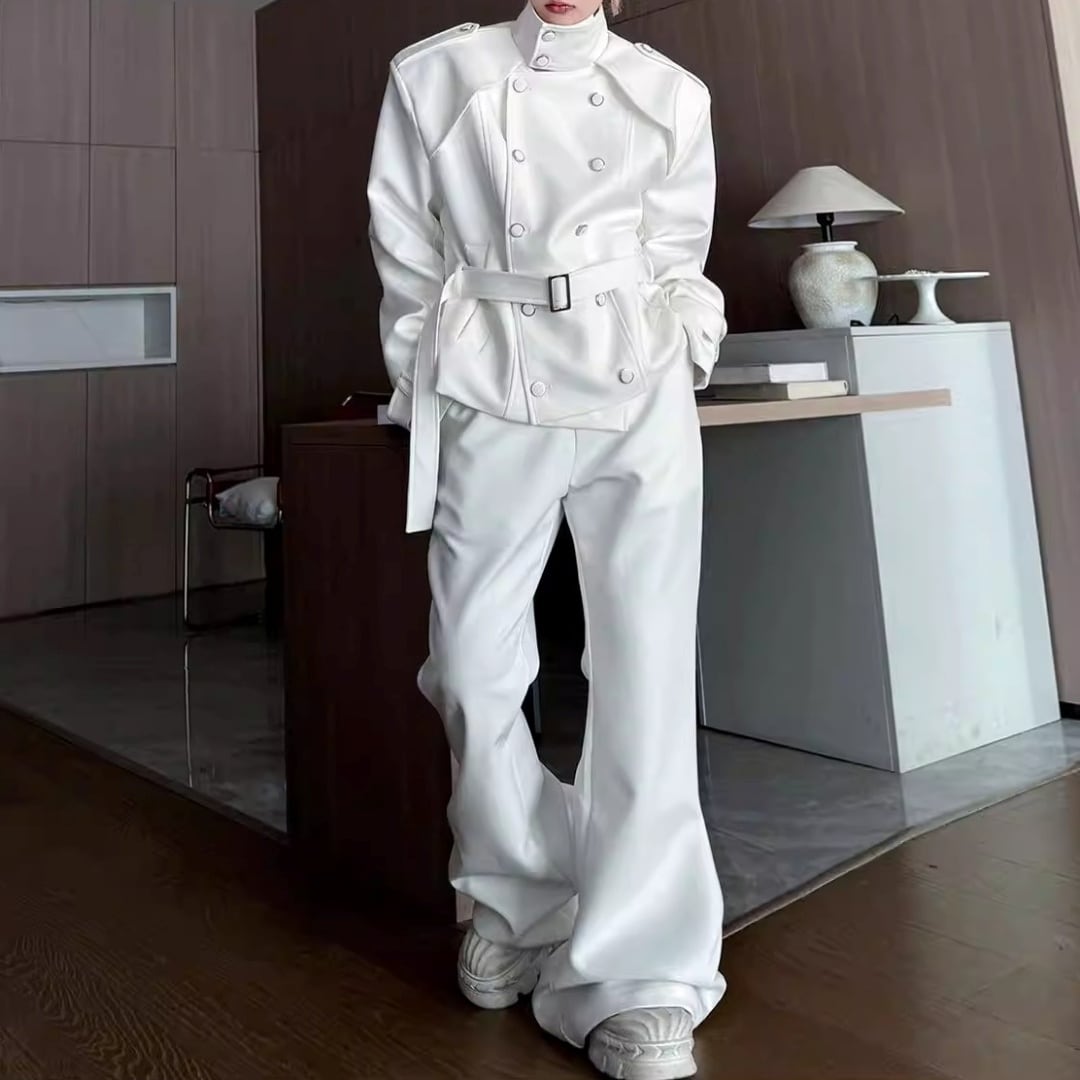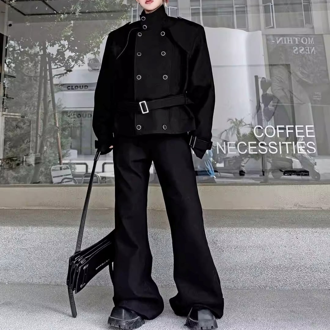 エッジモード ダブルブレストベルテッドセットアップ 3カラー D12220