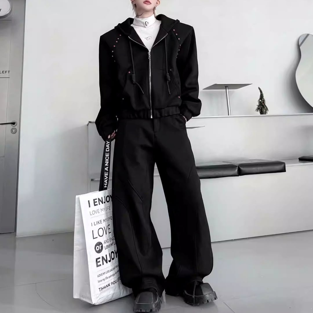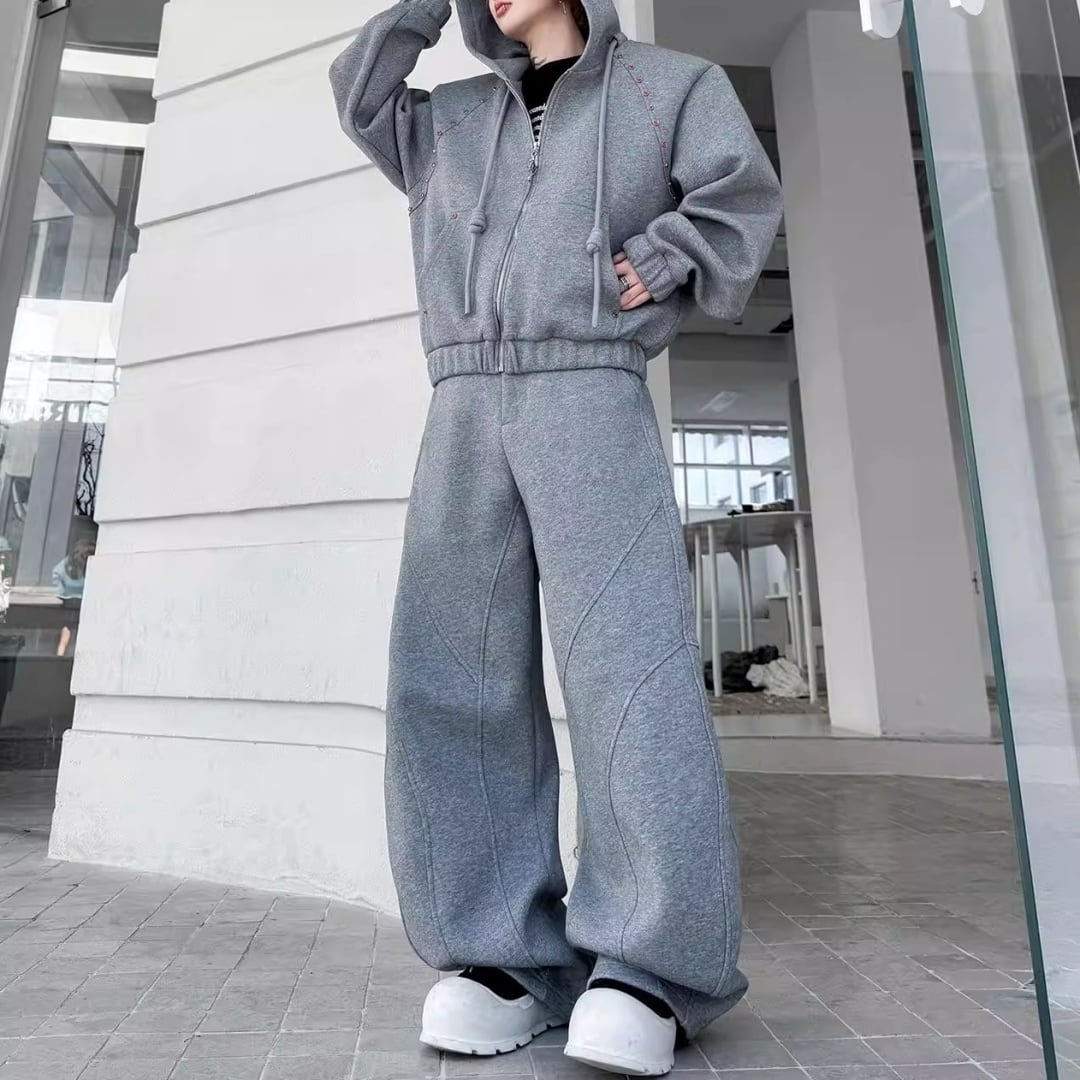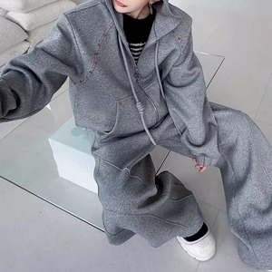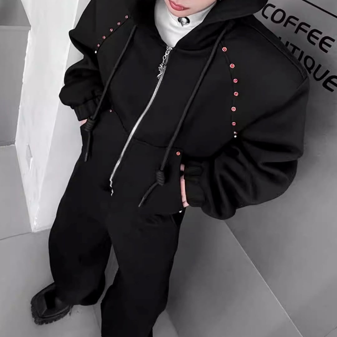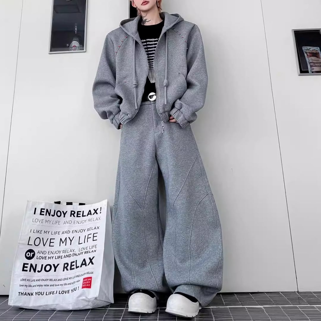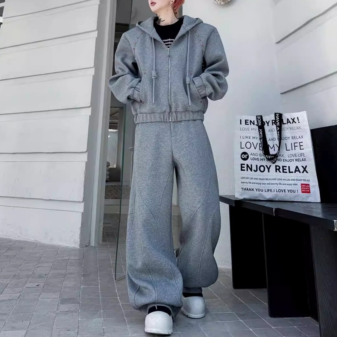 ビジュー装飾 ワイドシルエットフーディーセットアップ 3カラー D12221