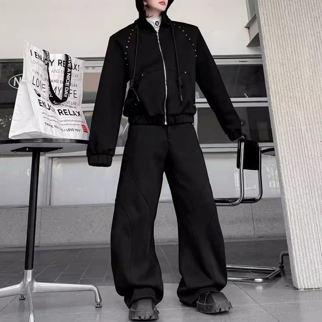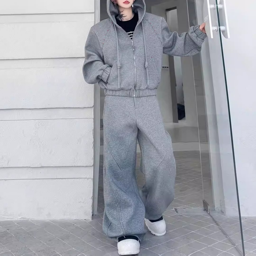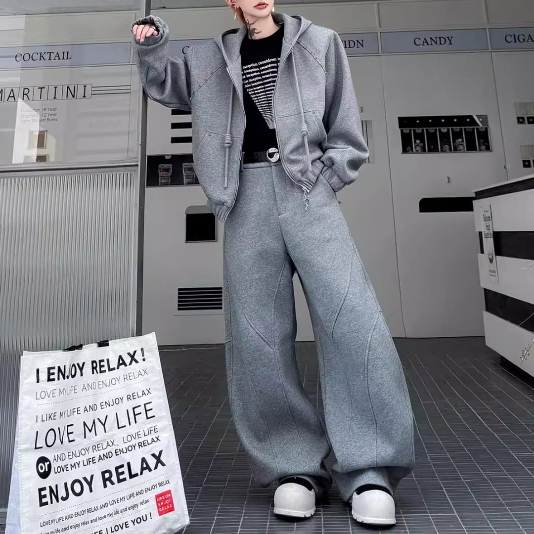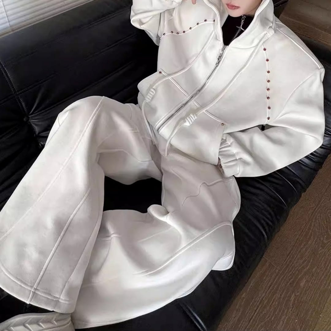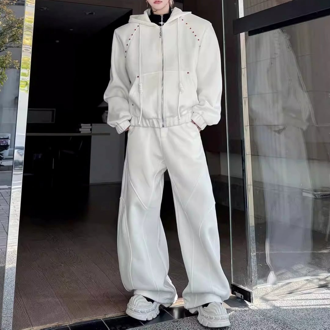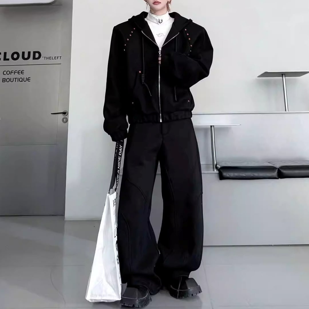 ビジュー装飾 ワイドシルエットフーディーセットアップ 3カラー D12221