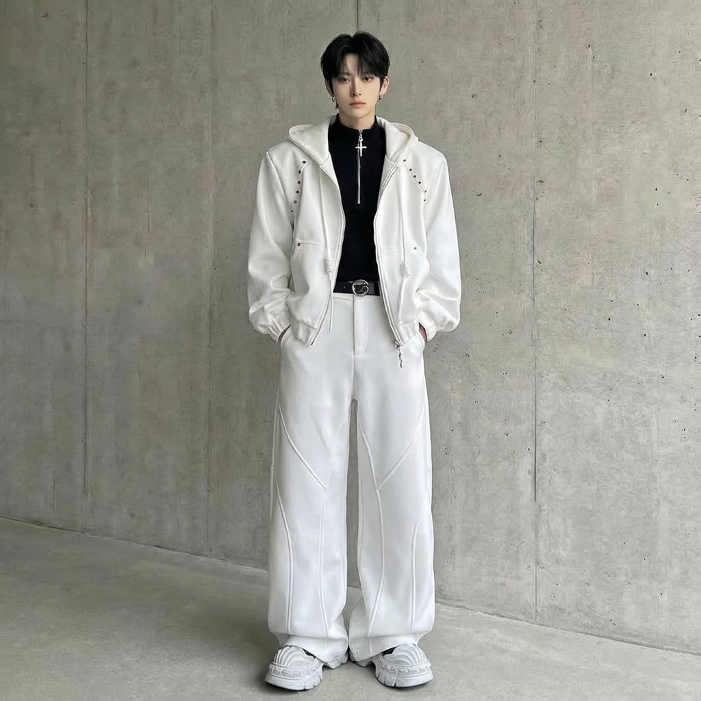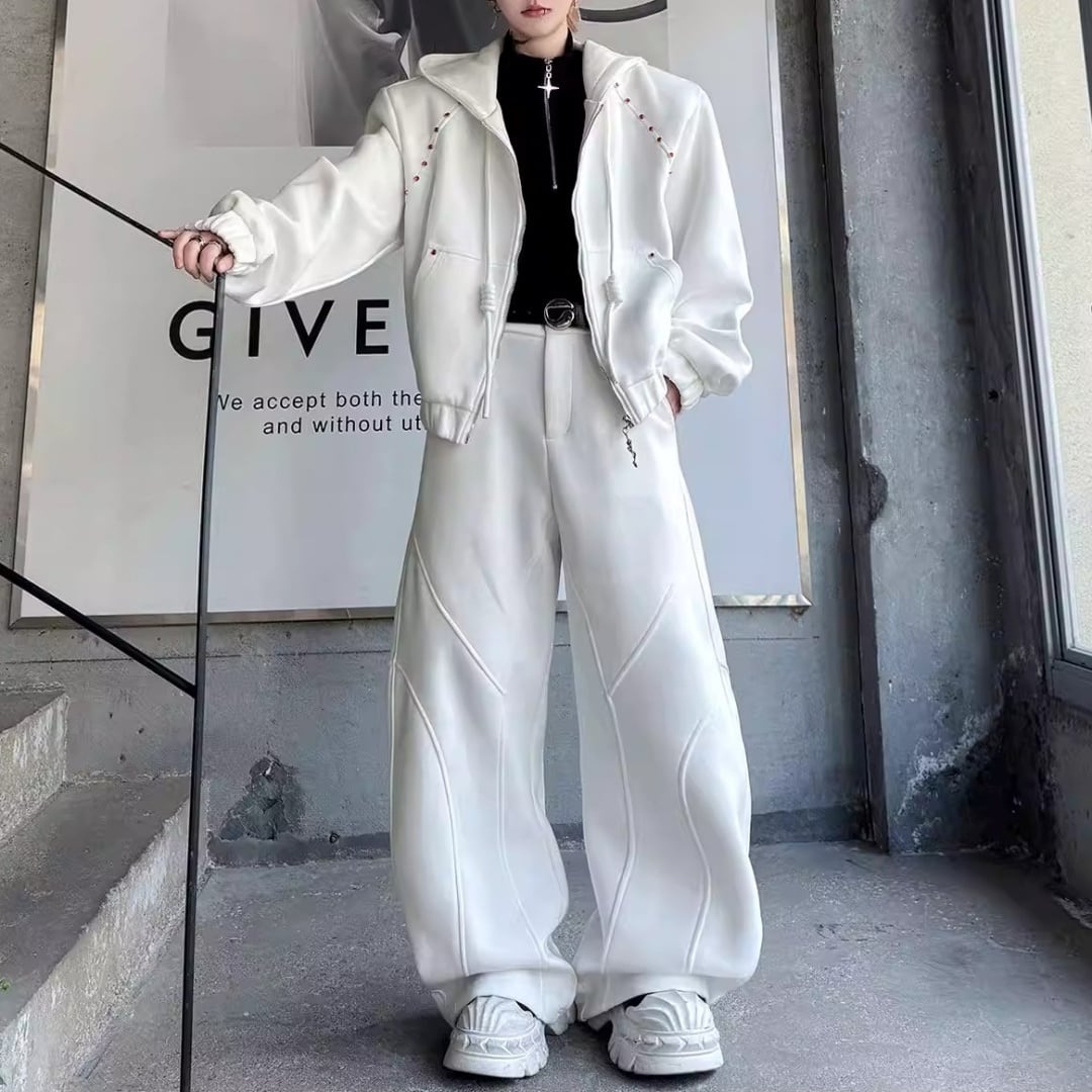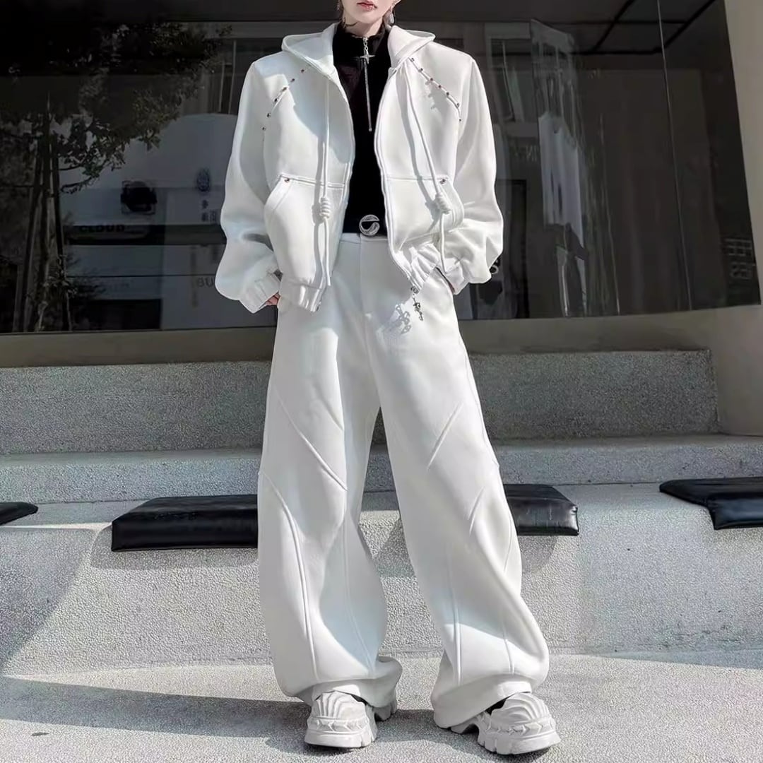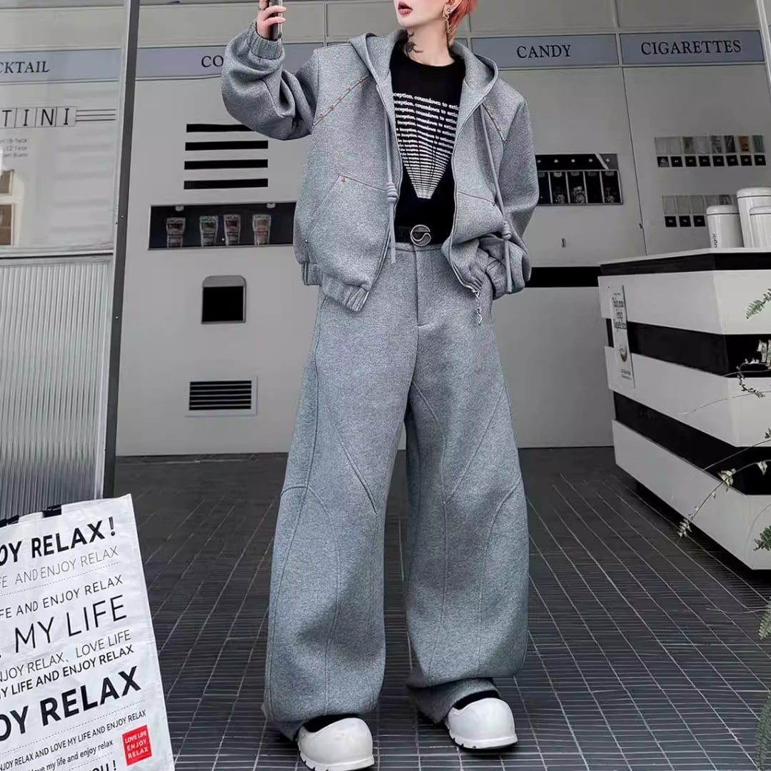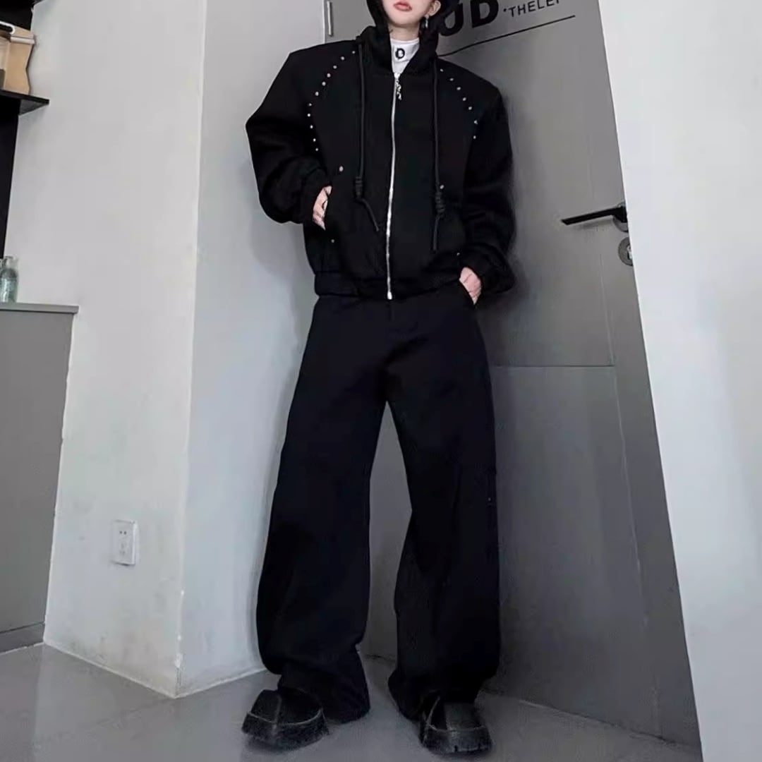 ビジュー装飾 ワイドシルエットフーディーセットアップ 3カラー D12221