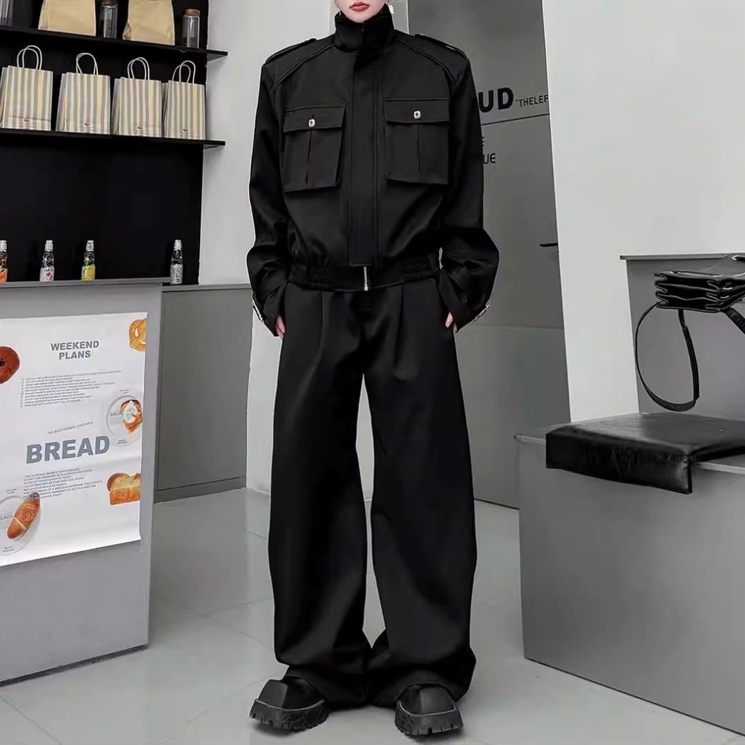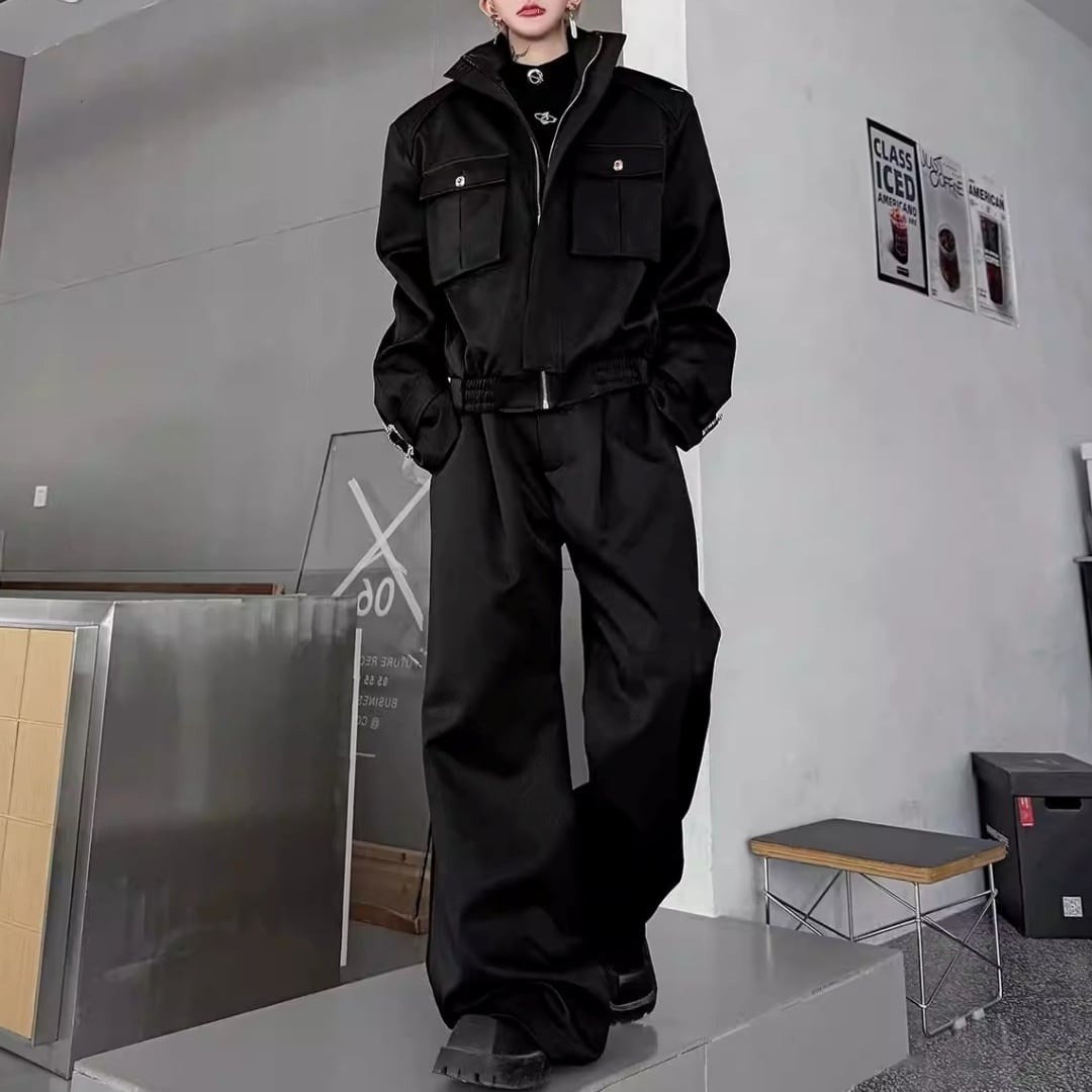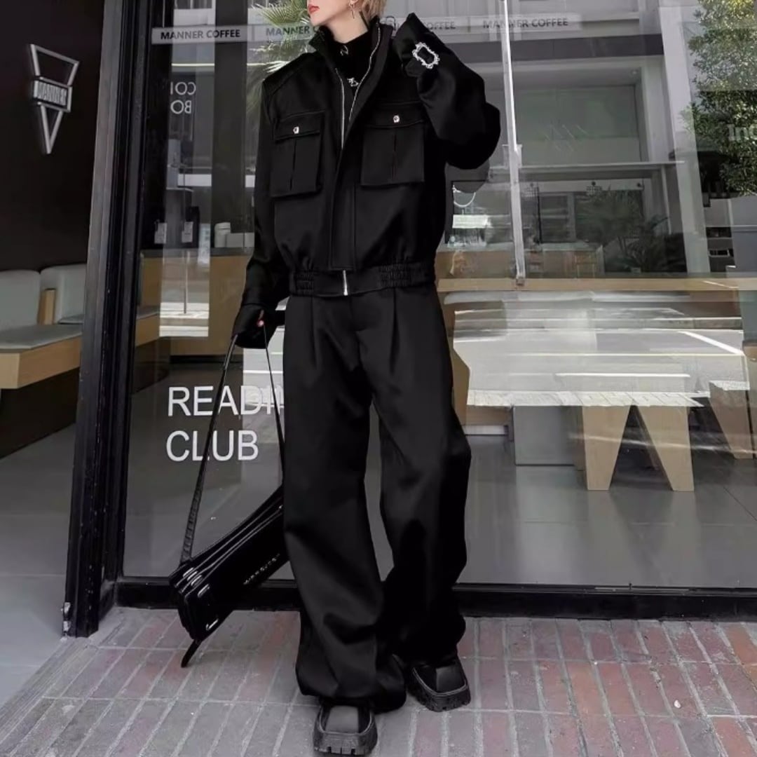 テックモード フラップポケットブルゾン&ワイドパンツセットアップ 2カラー D12224