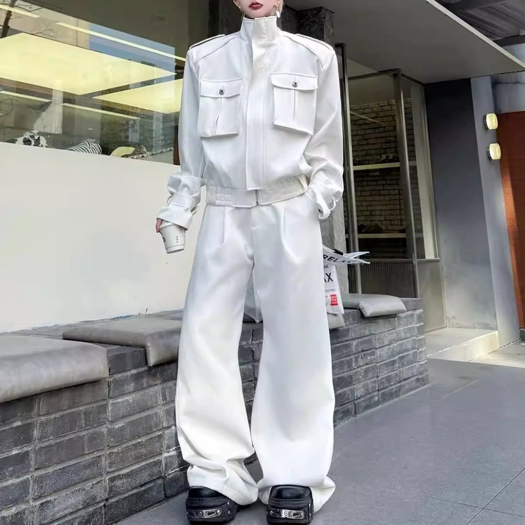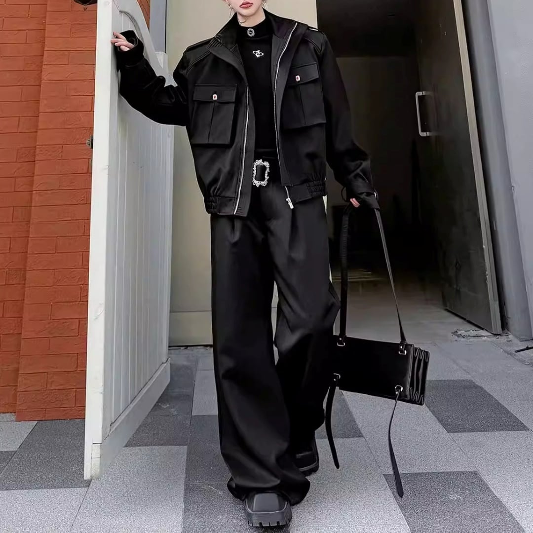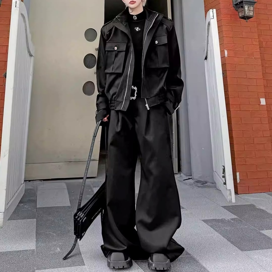テックモード フラップポケットブルゾン&ワイドパンツセットアップ 2カラー D12224
