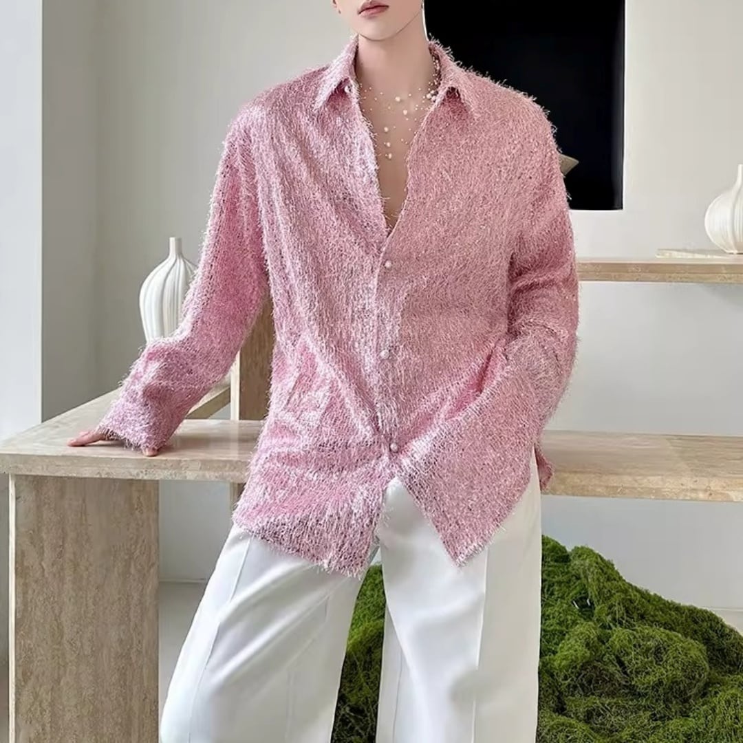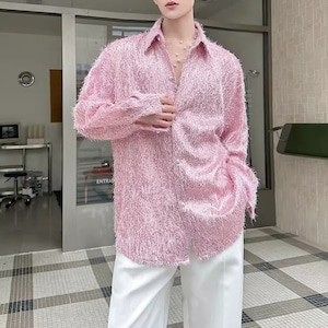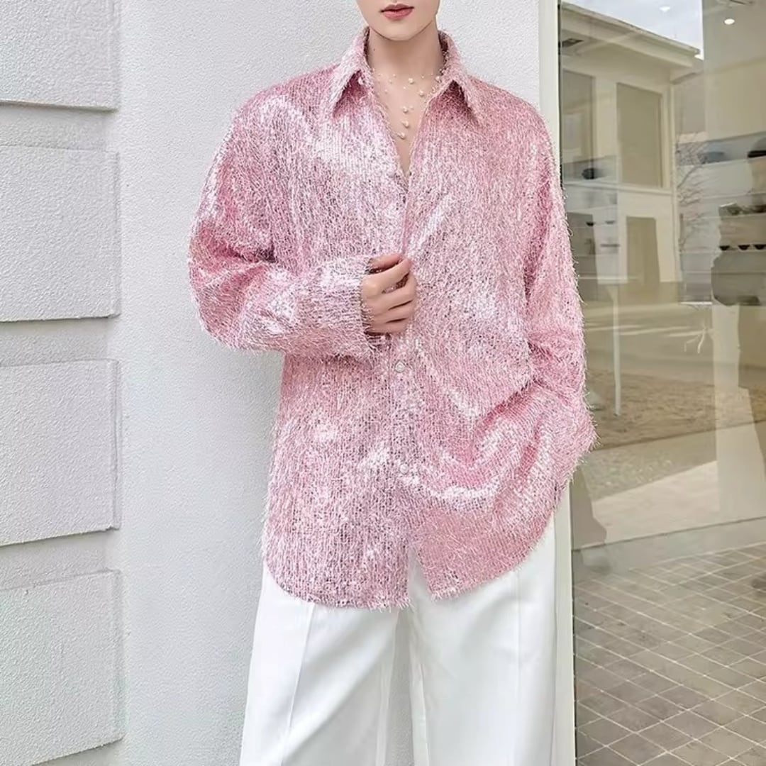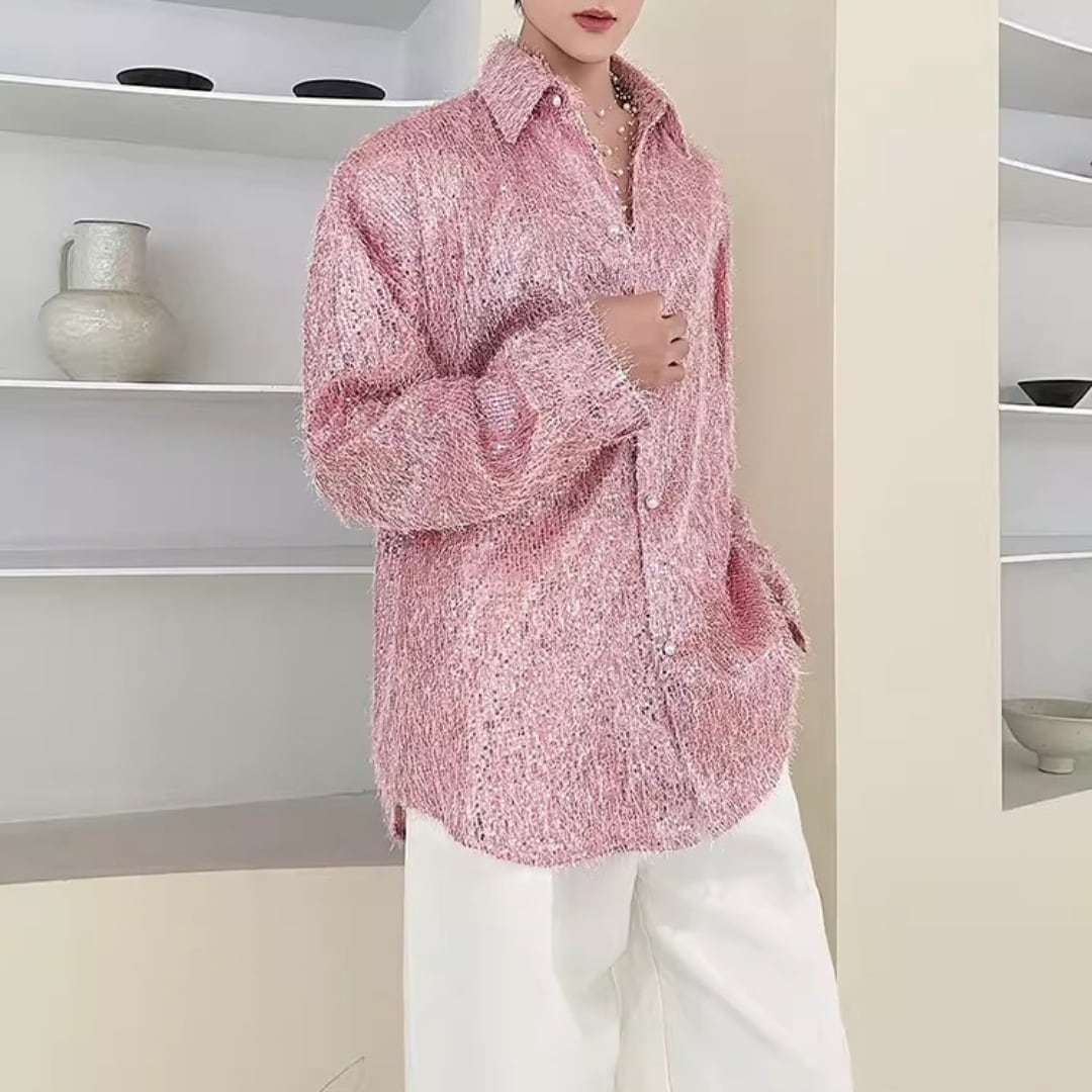 フリンジデザイン オーバーサイズスパンコールシャツ D12240
