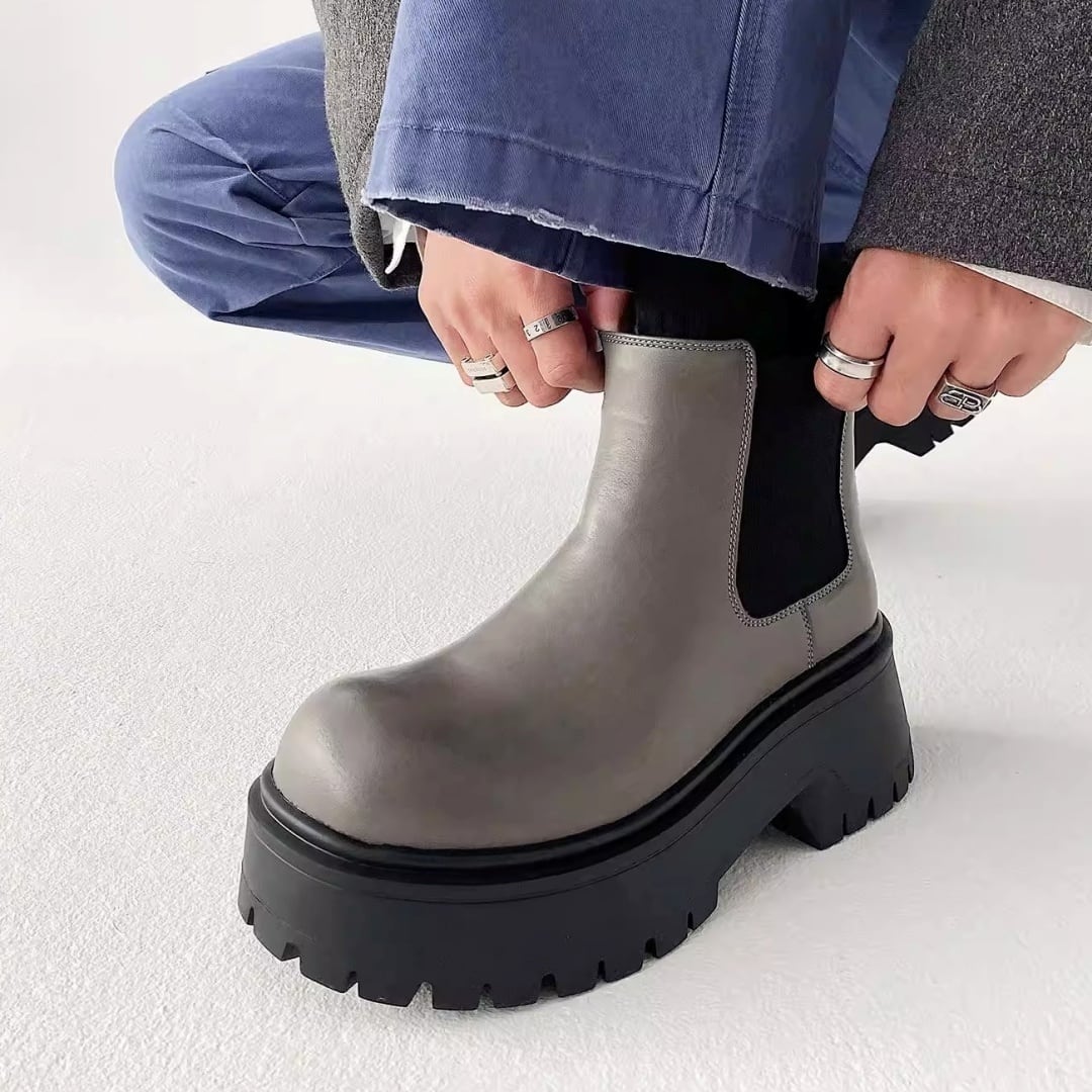 厚底プラットフォーム サイドゴアチェルシーブーツ 2カラー D12244