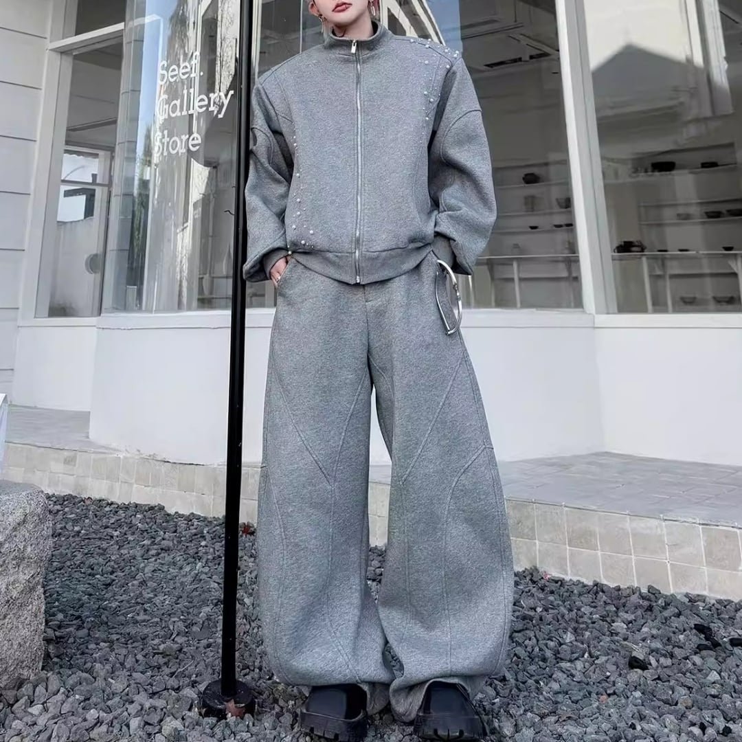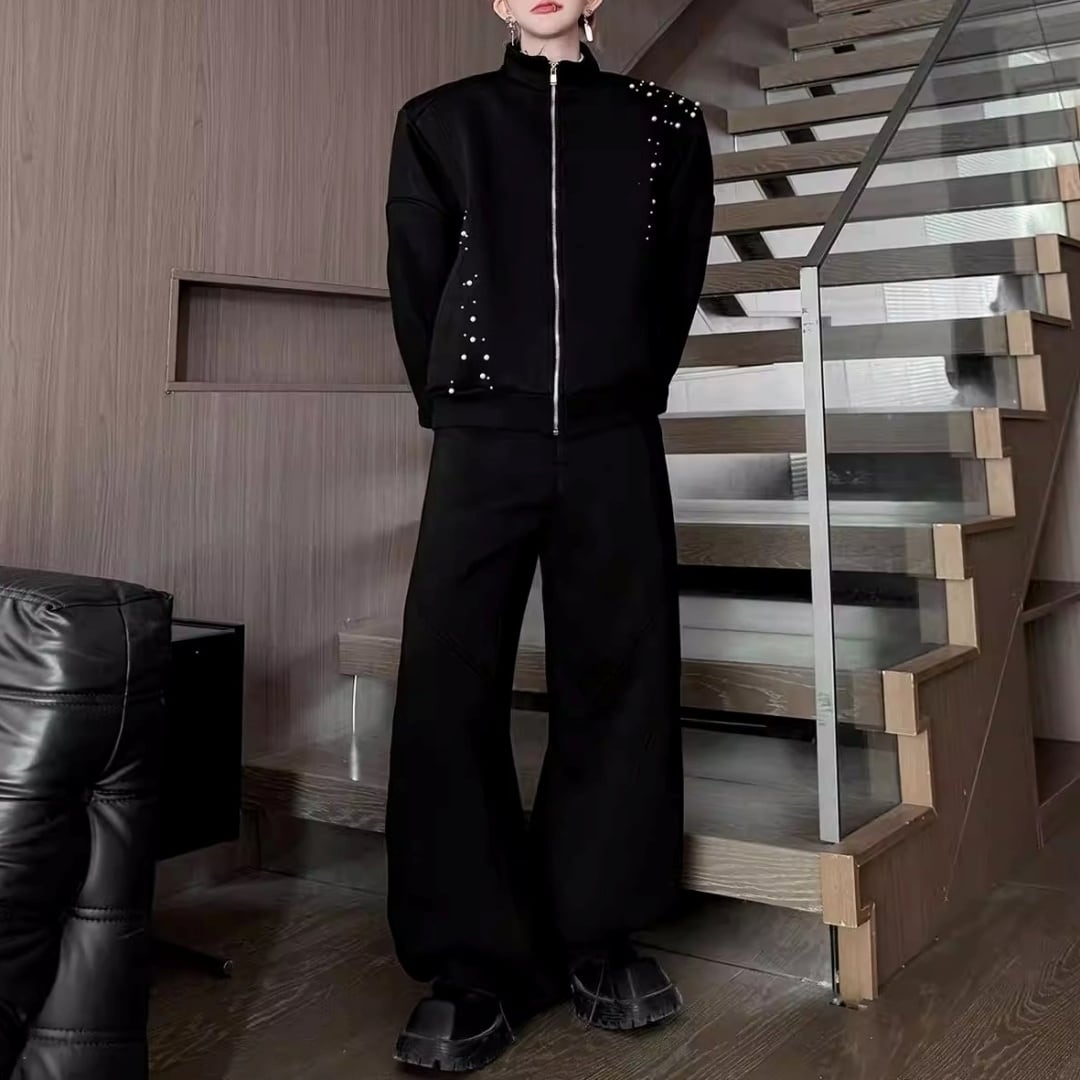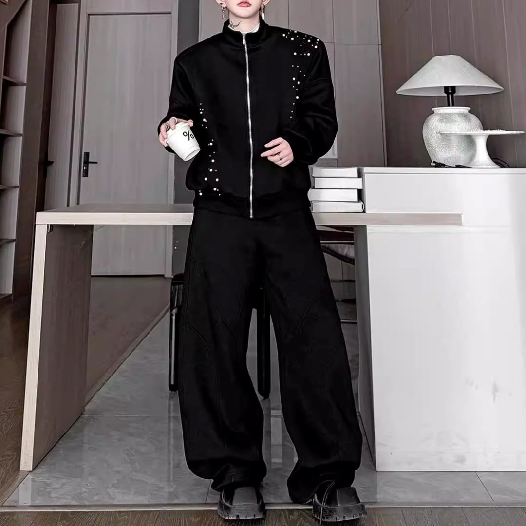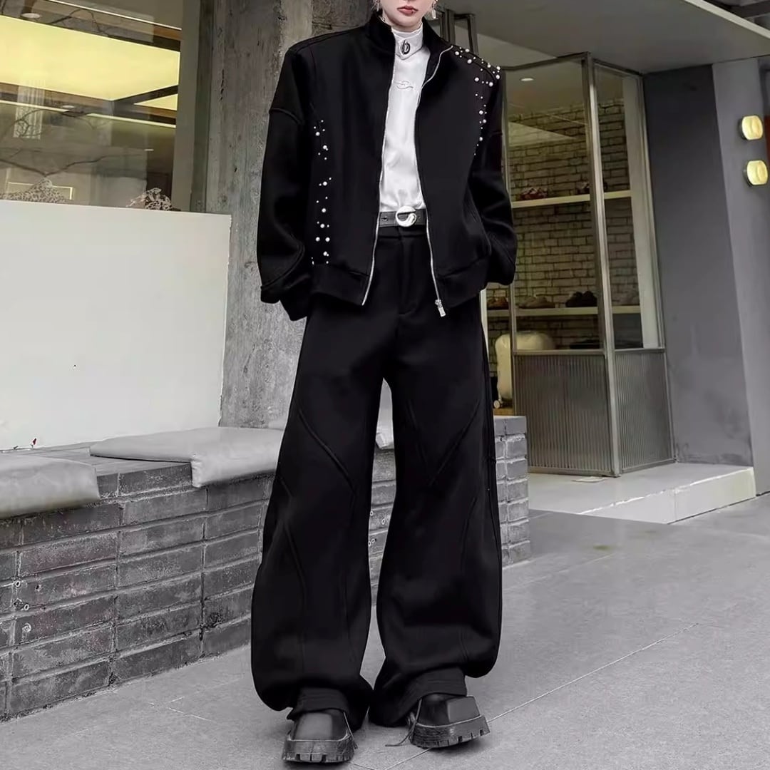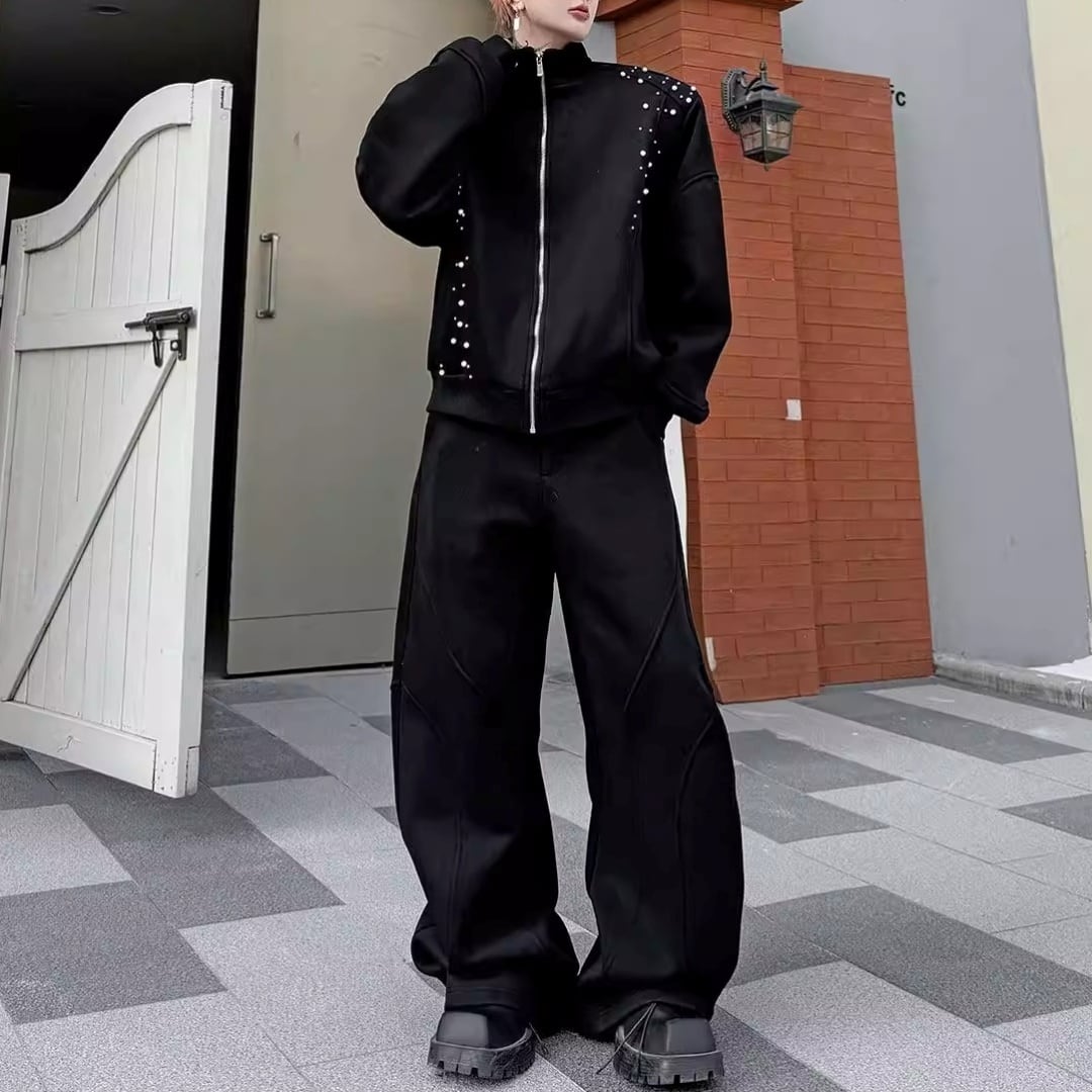 パールビーズ装飾 切替ラインジップデザインセットアップ 3カラー D12249