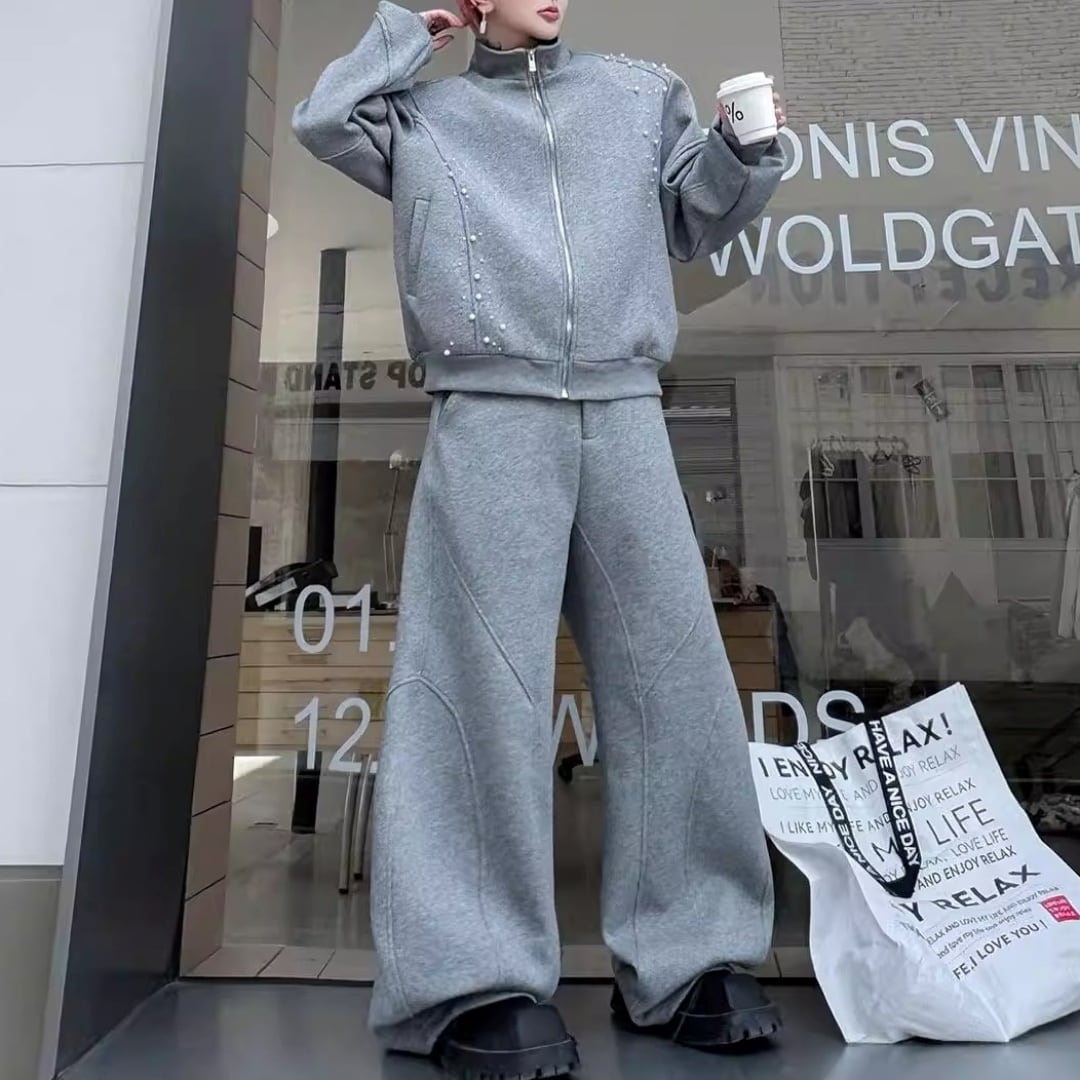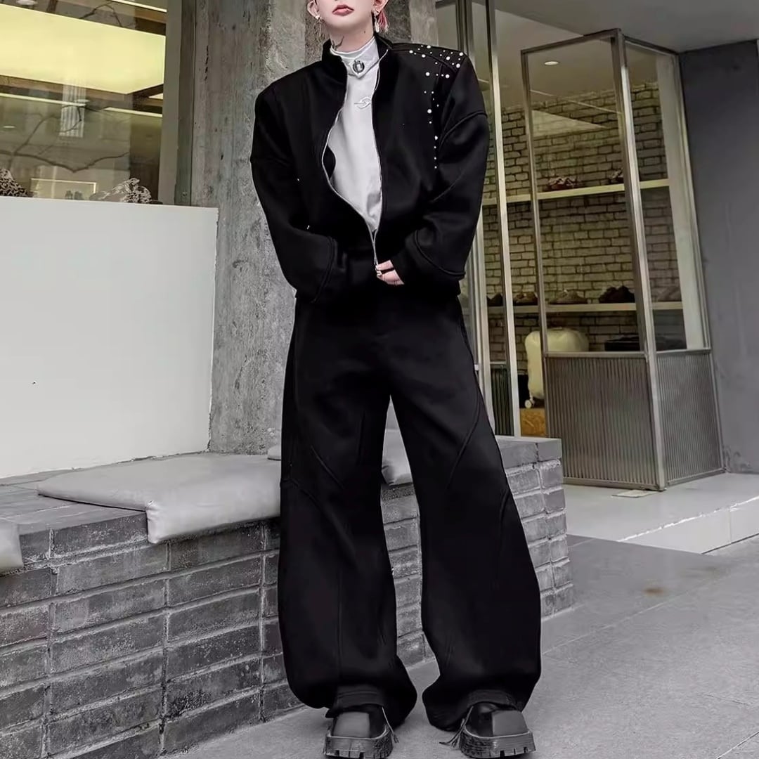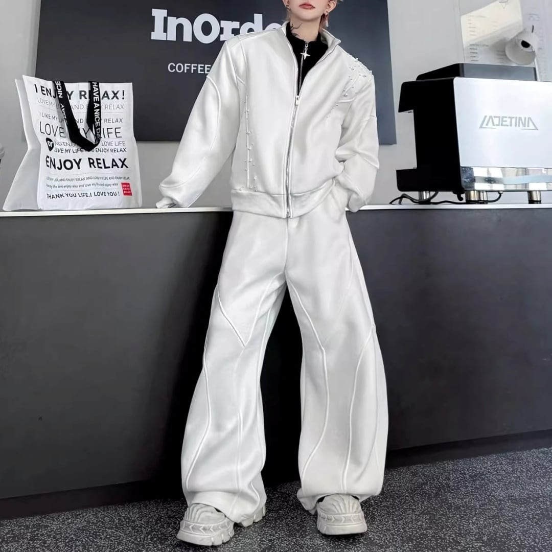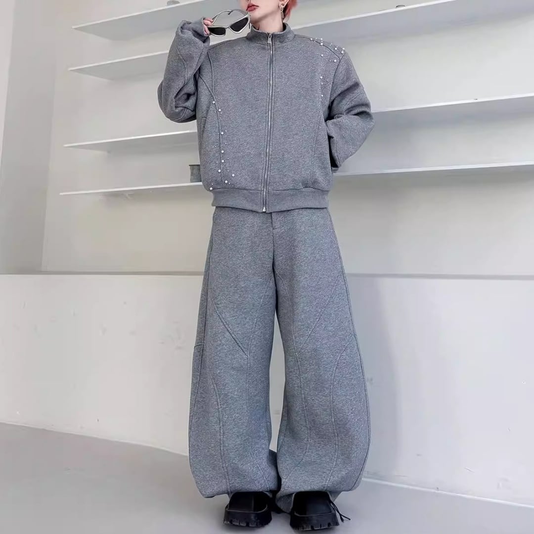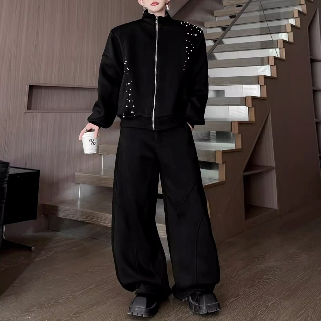 パールビーズ装飾 切替ラインジップデザインセットアップ 3カラー D12249