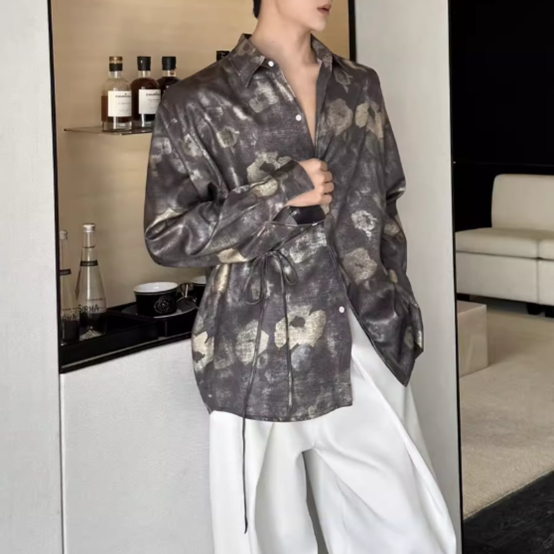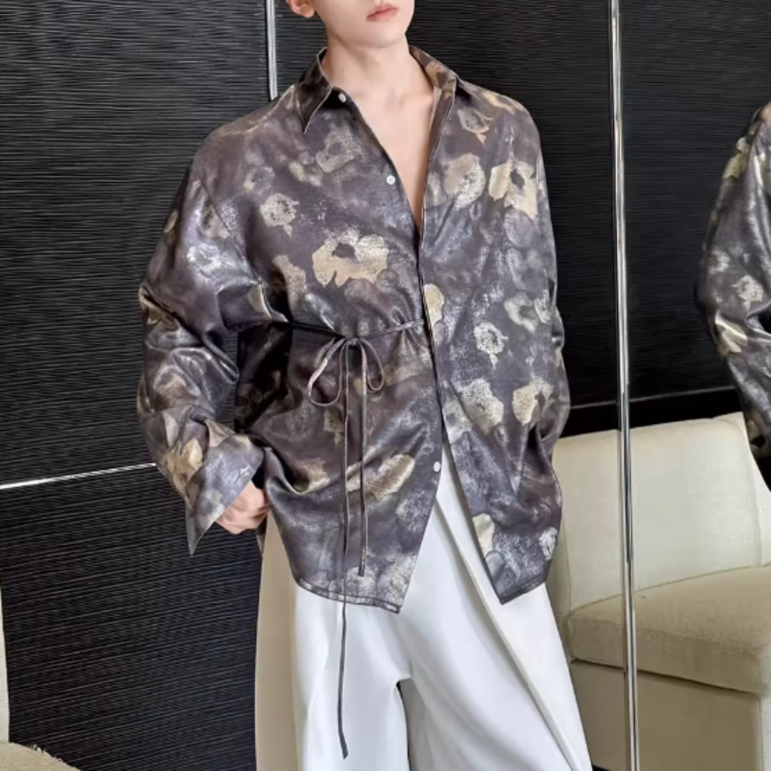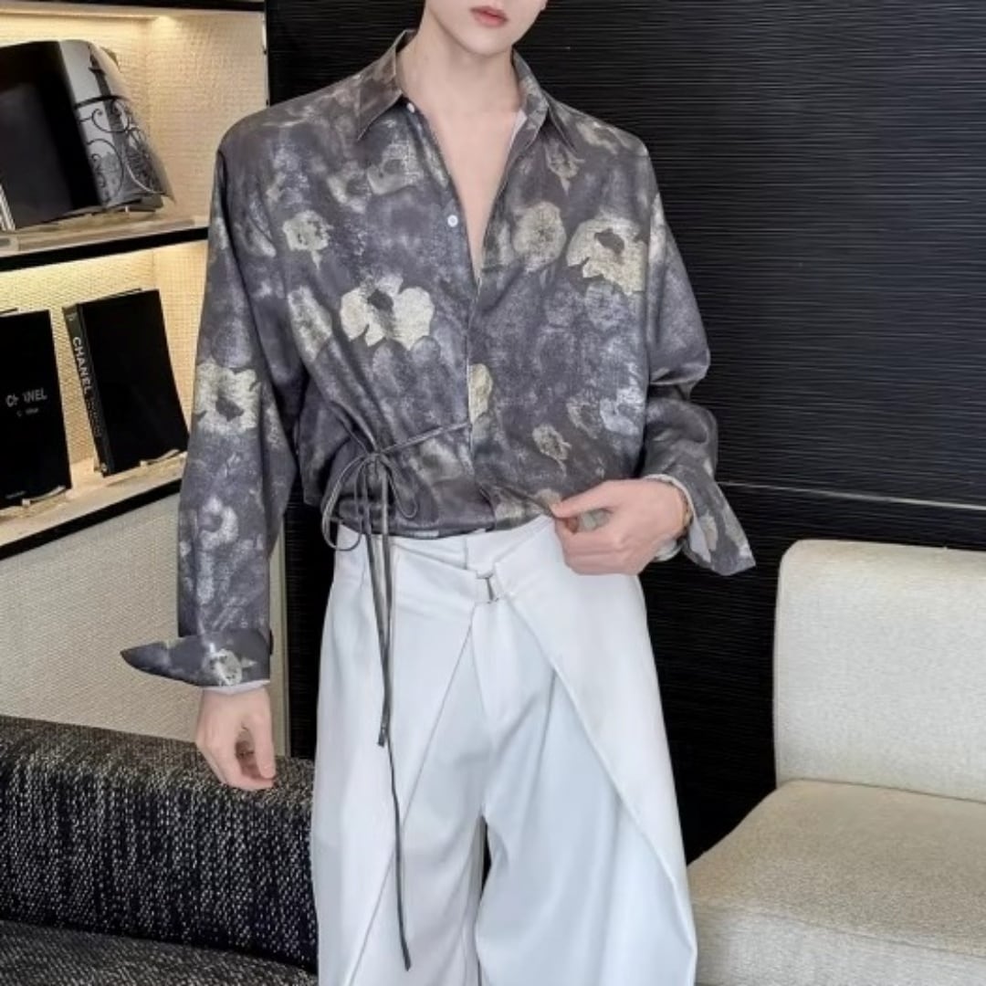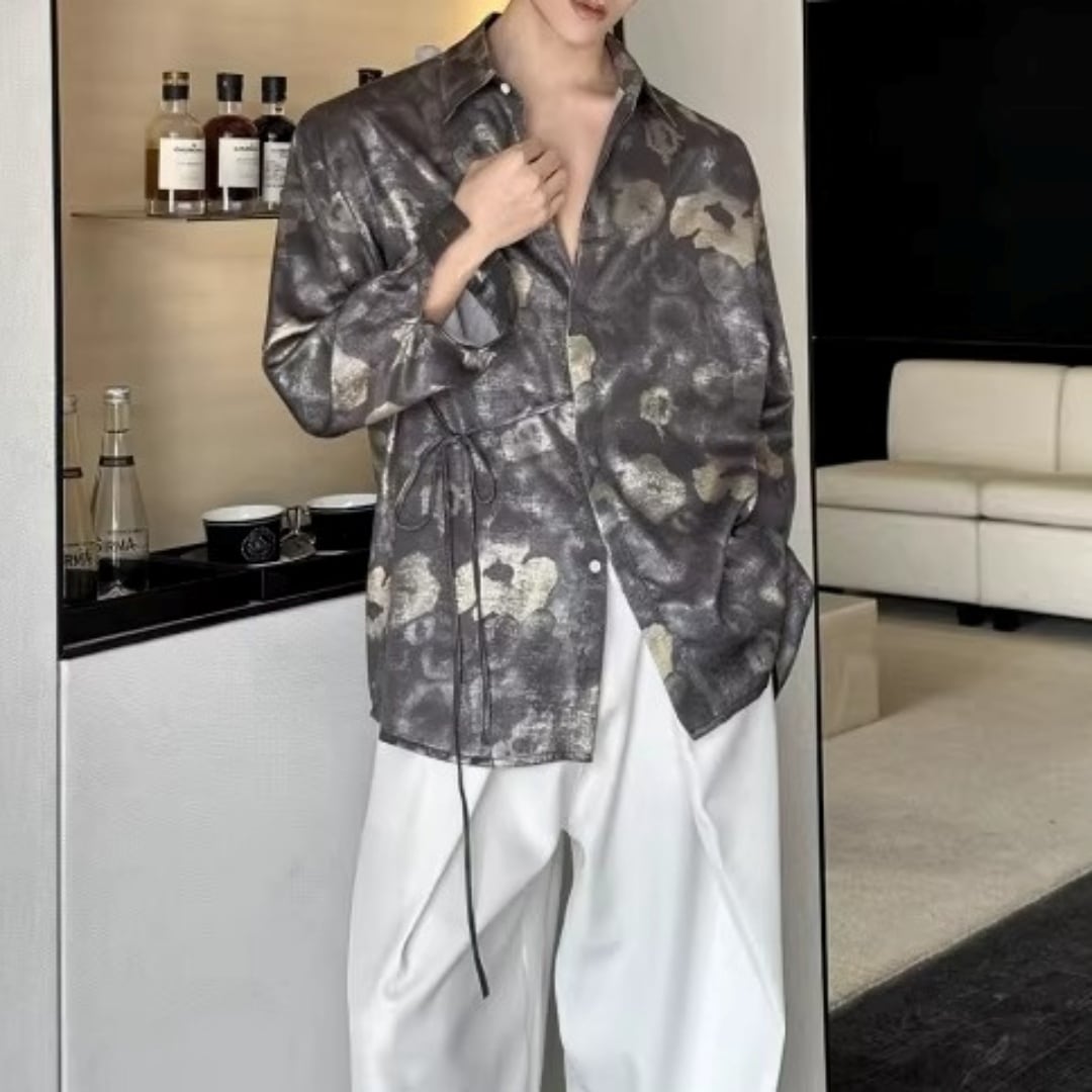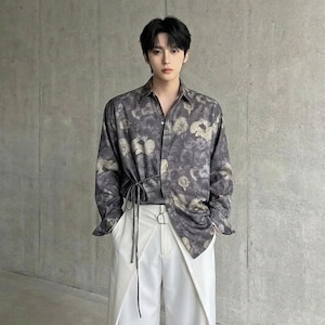 アンティーク調フラワー ウエストリボンルーズシャツ D12253