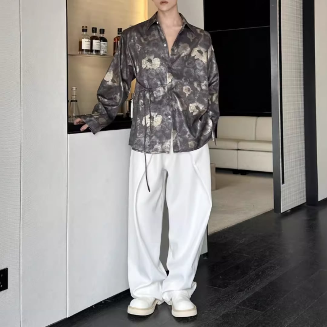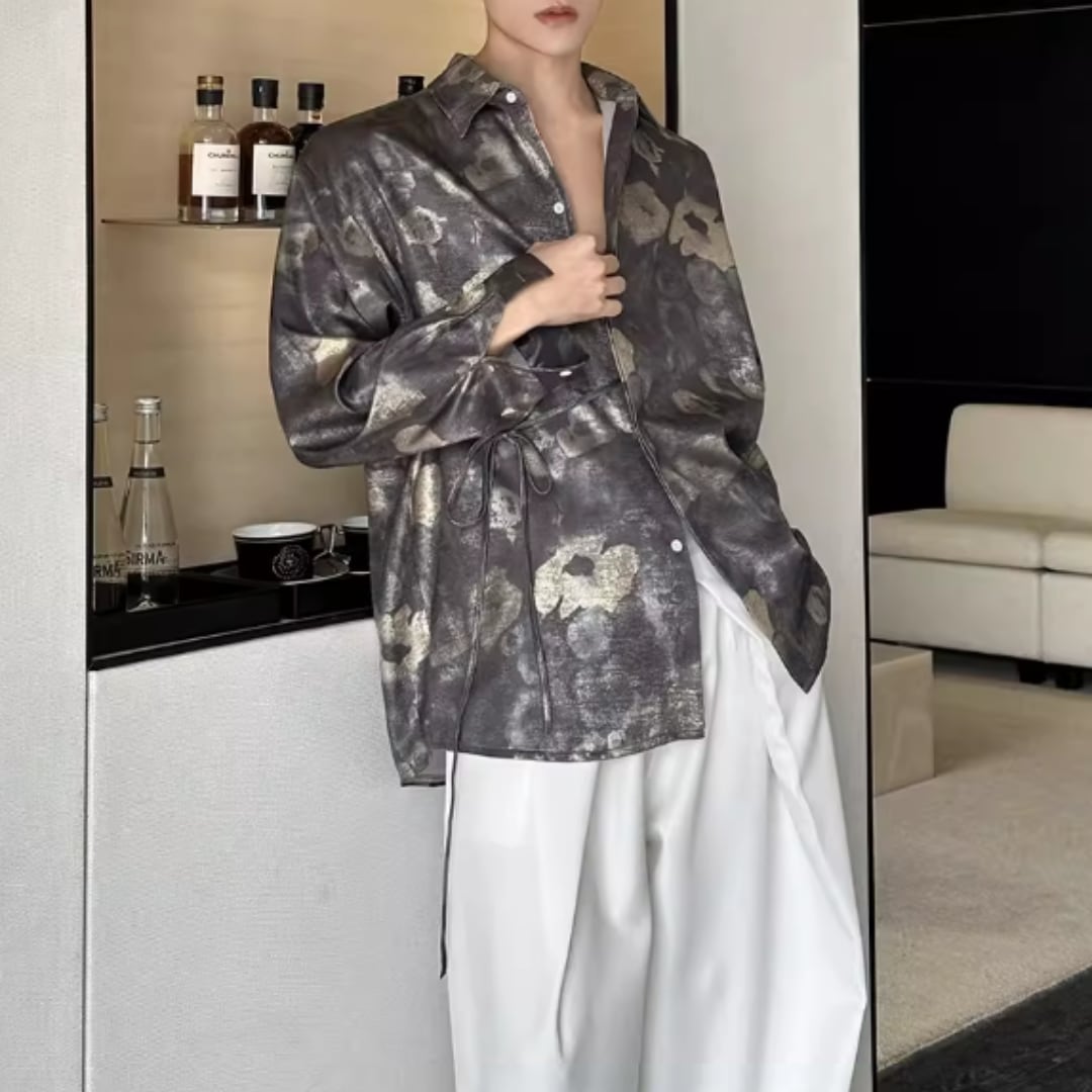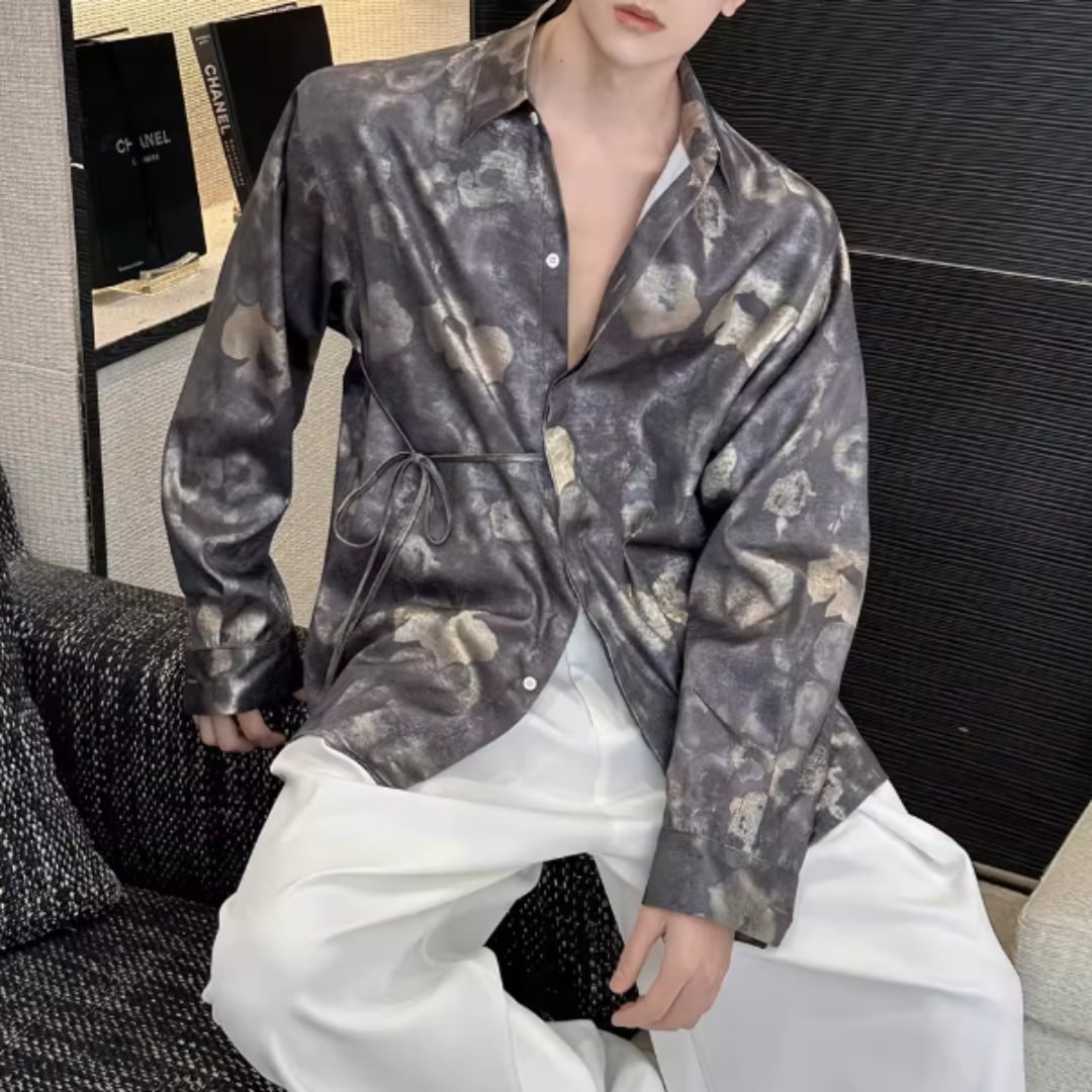 アンティーク調フラワー ウエストリボンルーズシャツ D12253