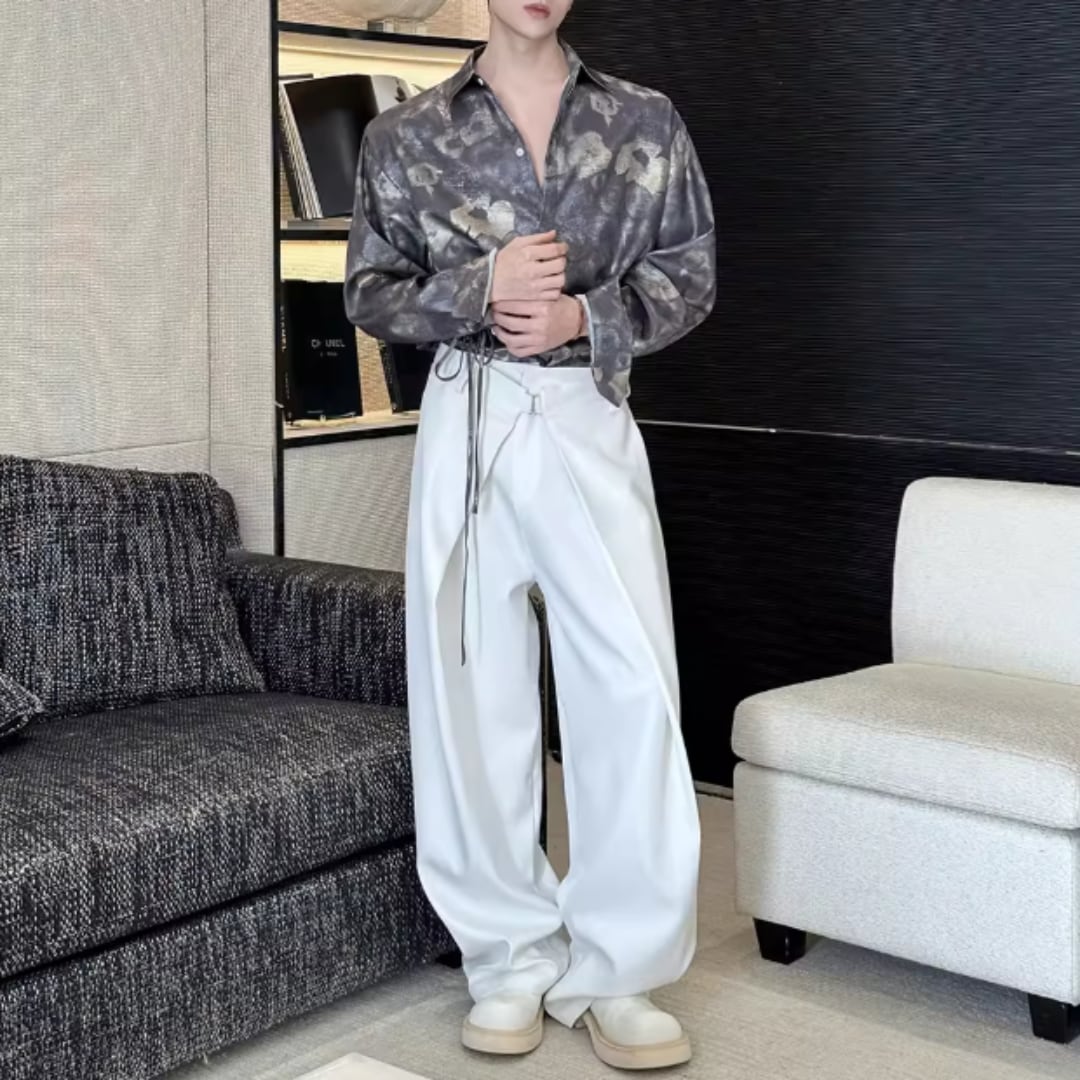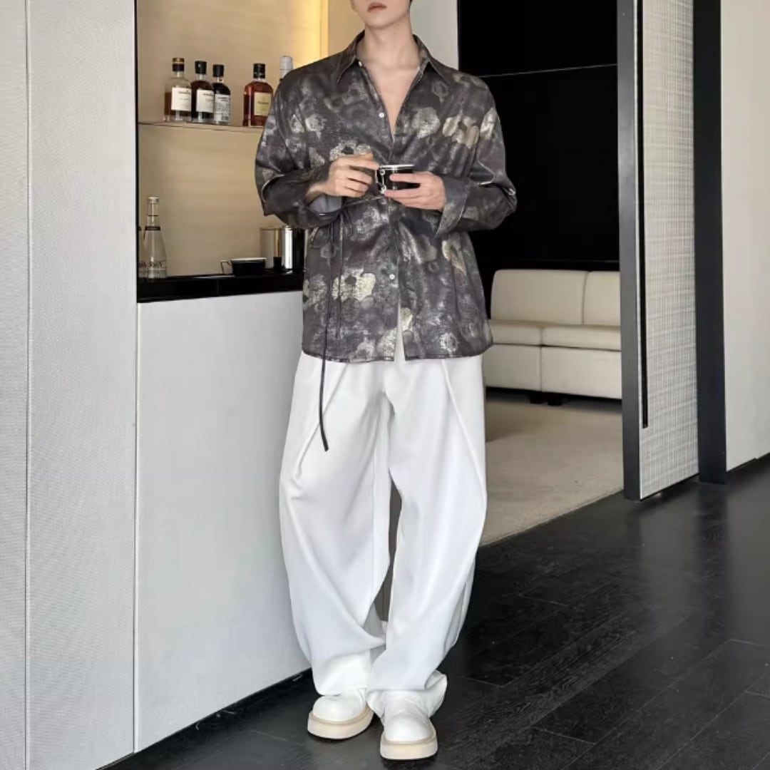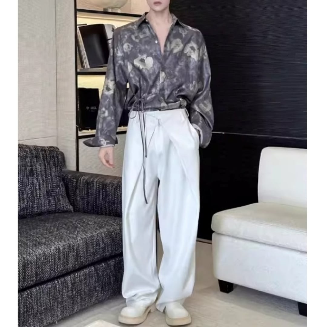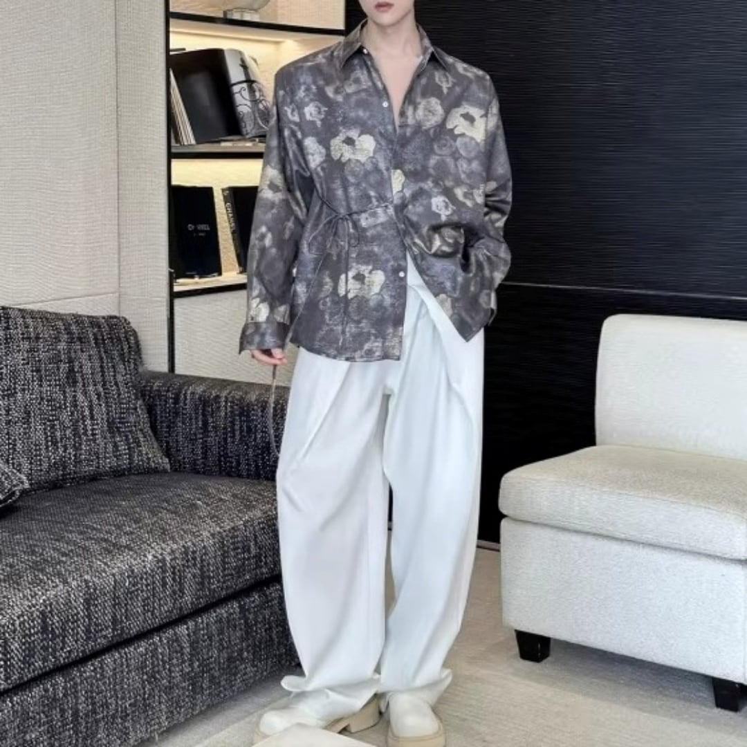 アンティーク調フラワー ウエストリボンルーズシャツ D12253