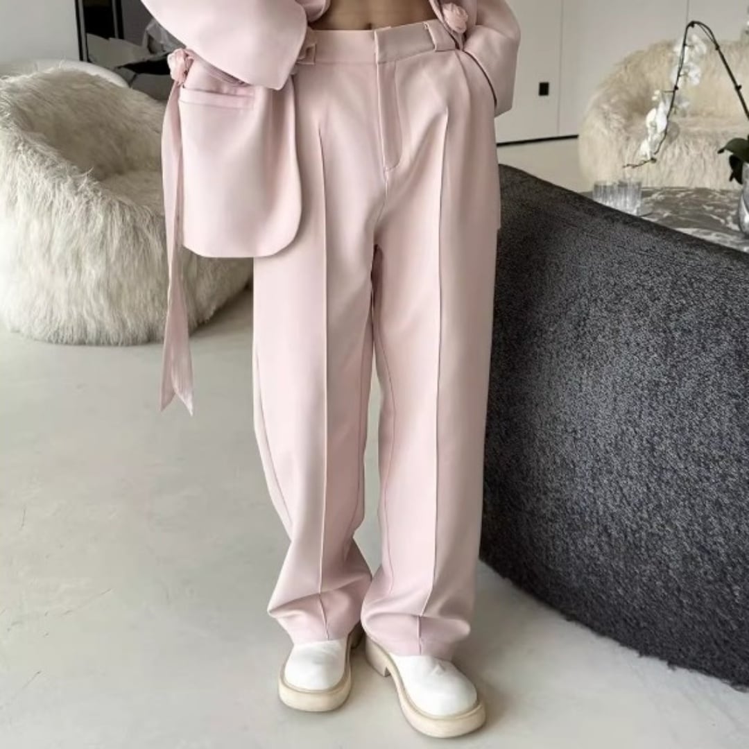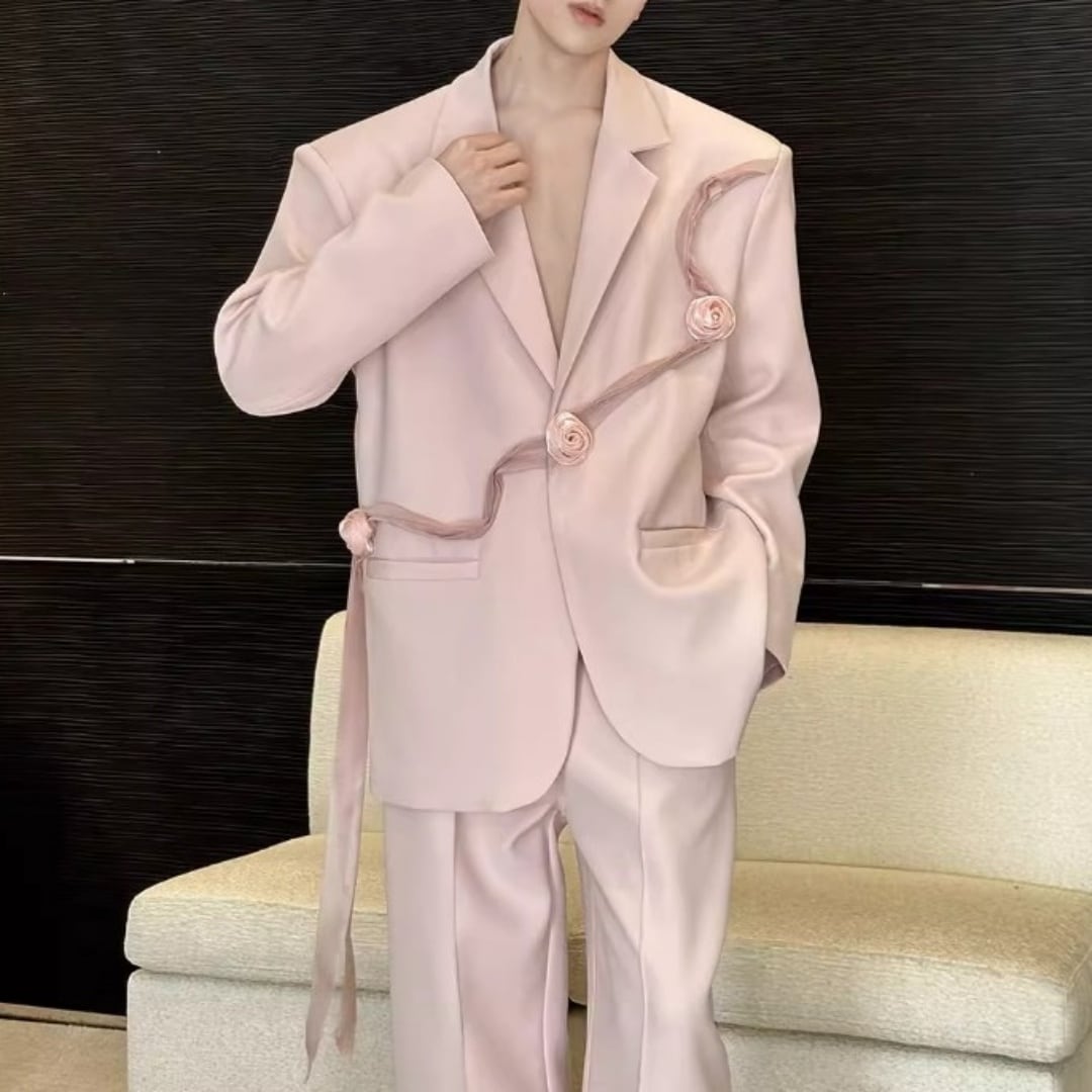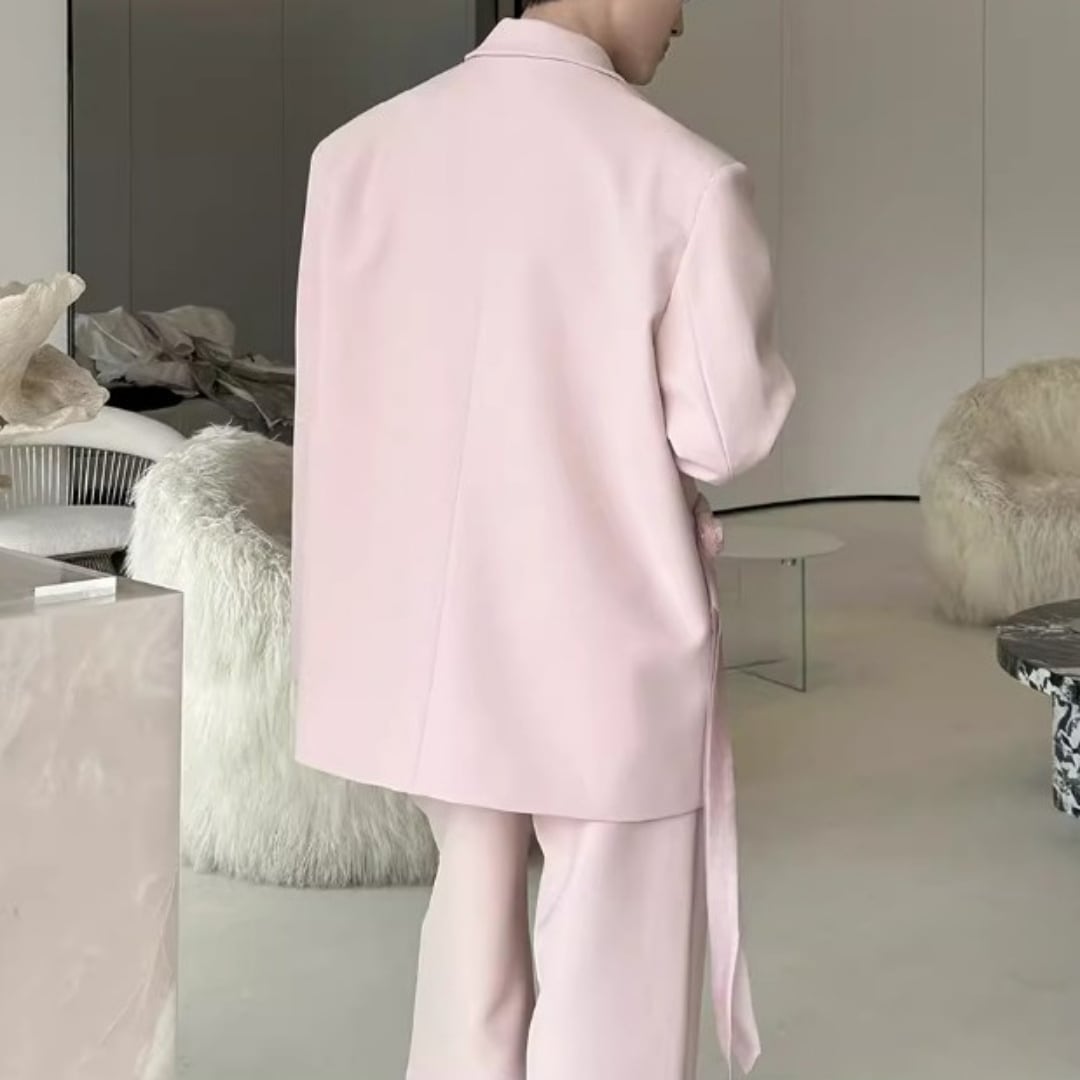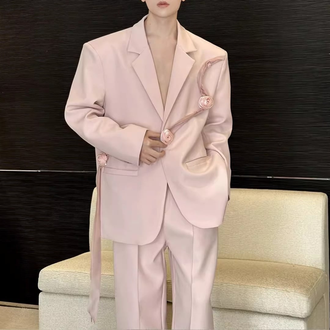 リボンコサージュアクセント オーバーサイズスーツセットアップ 2カラー D12258