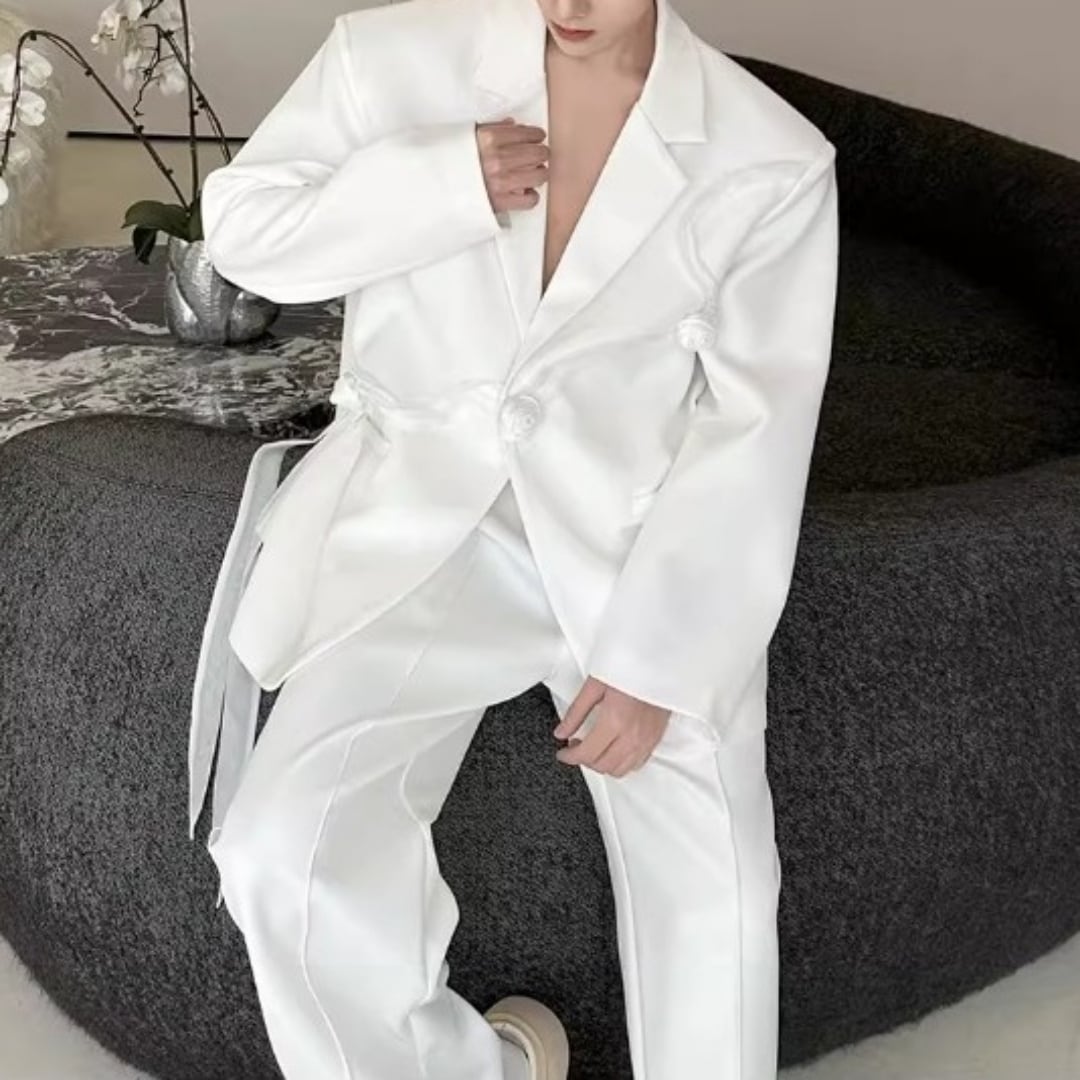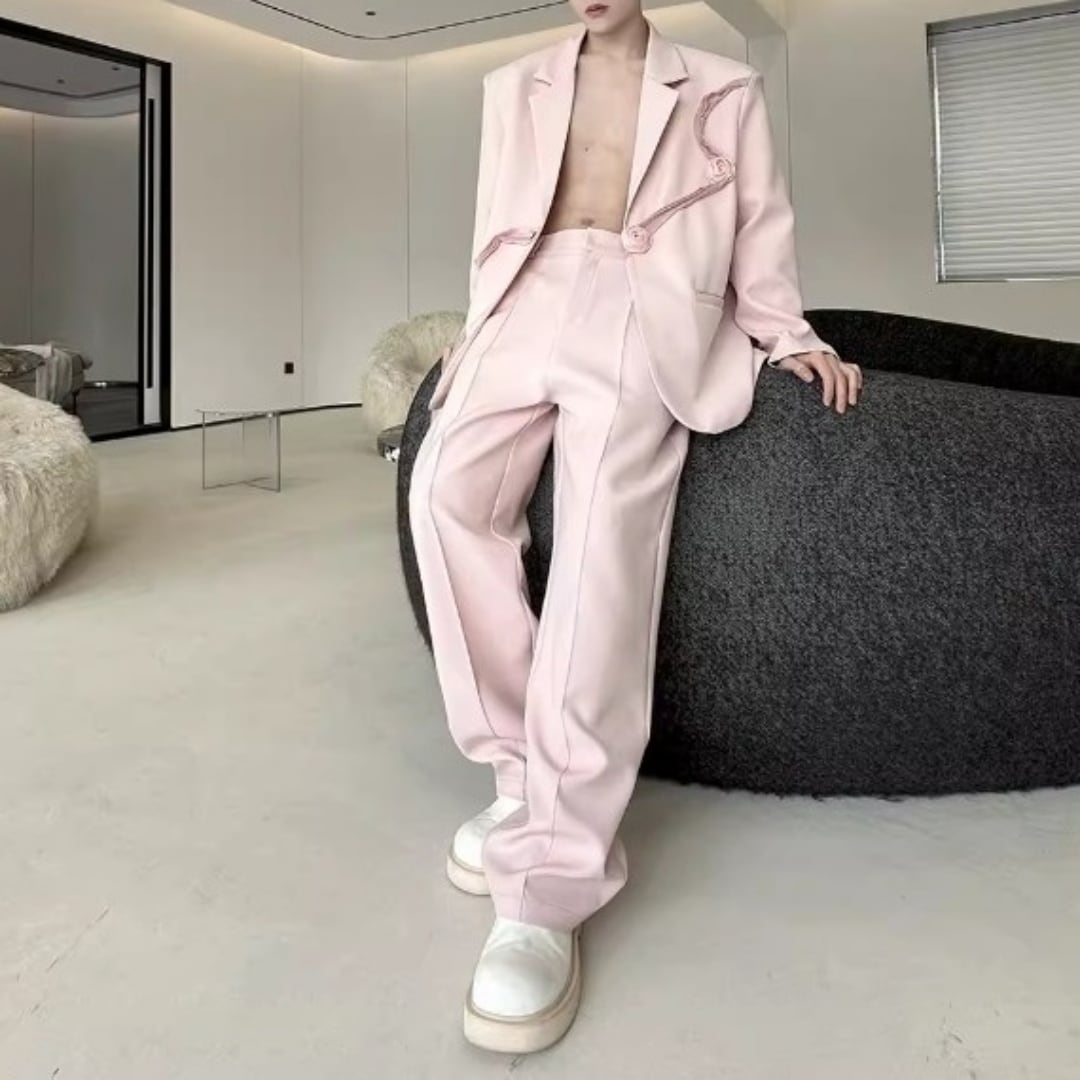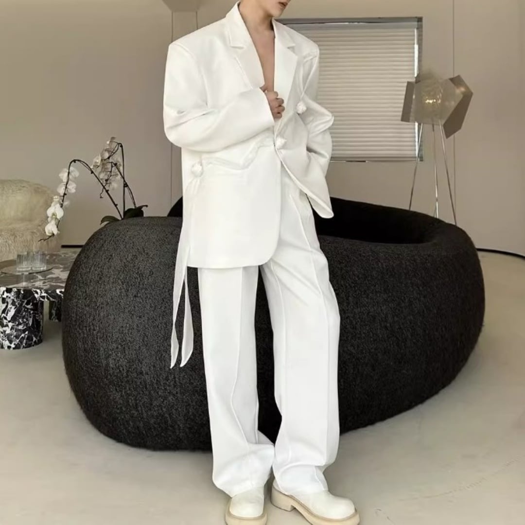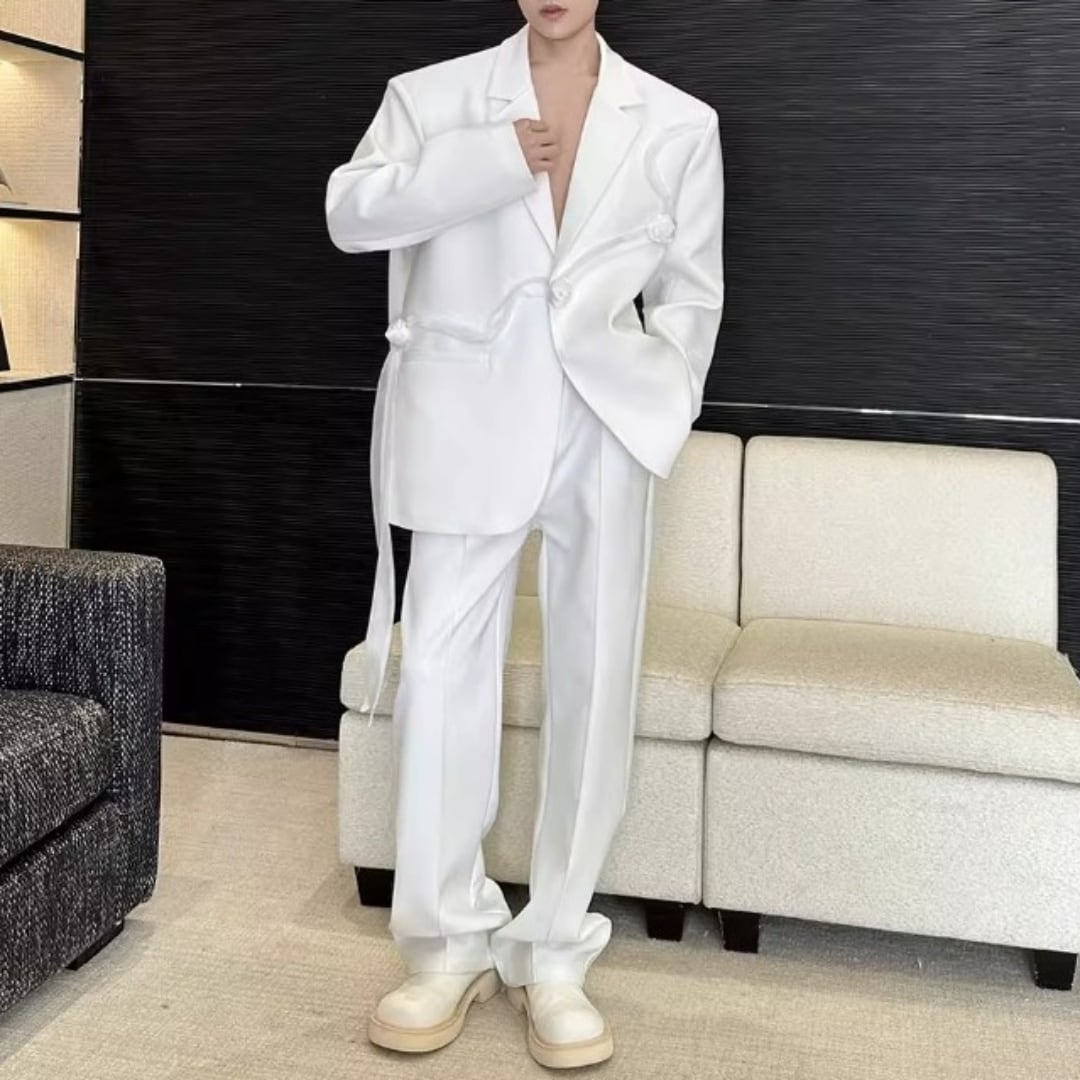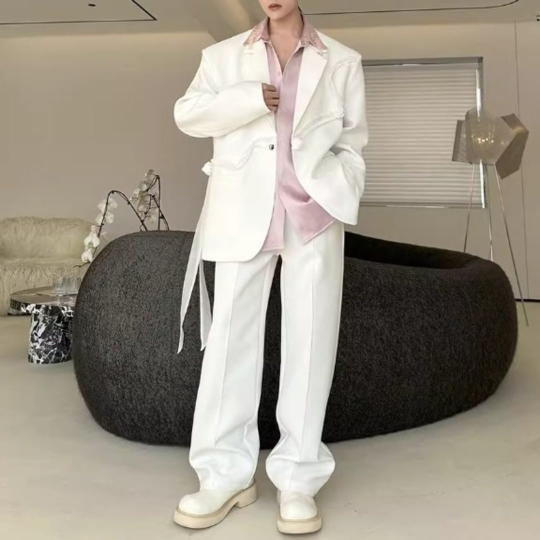リボンコサージュアクセント オーバーサイズスーツセットアップ 2カラー D12258