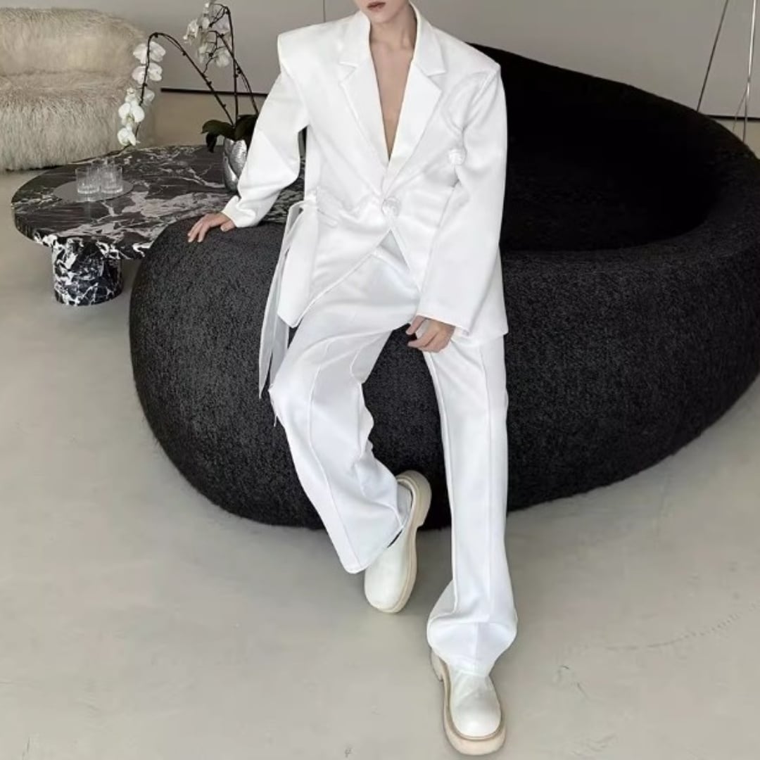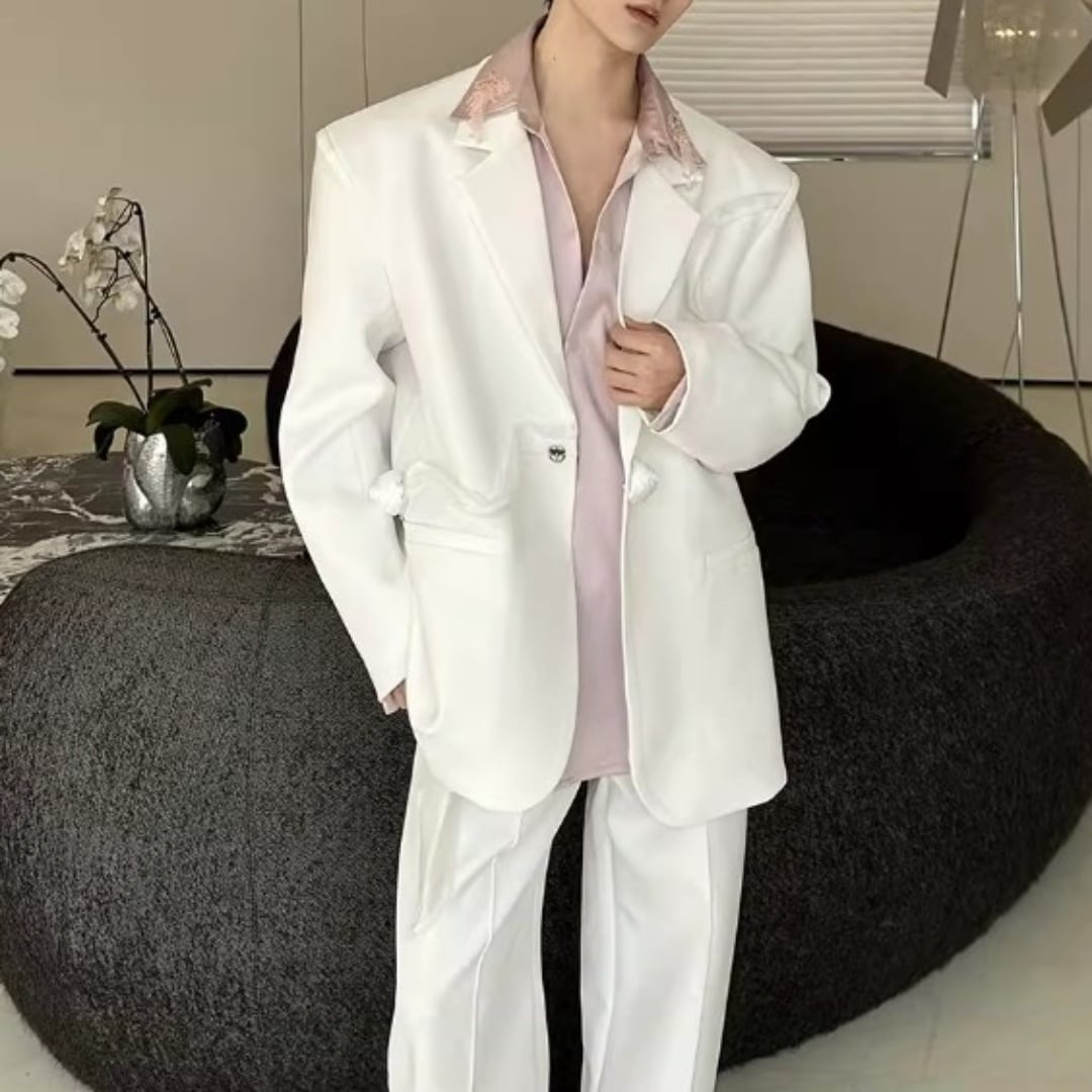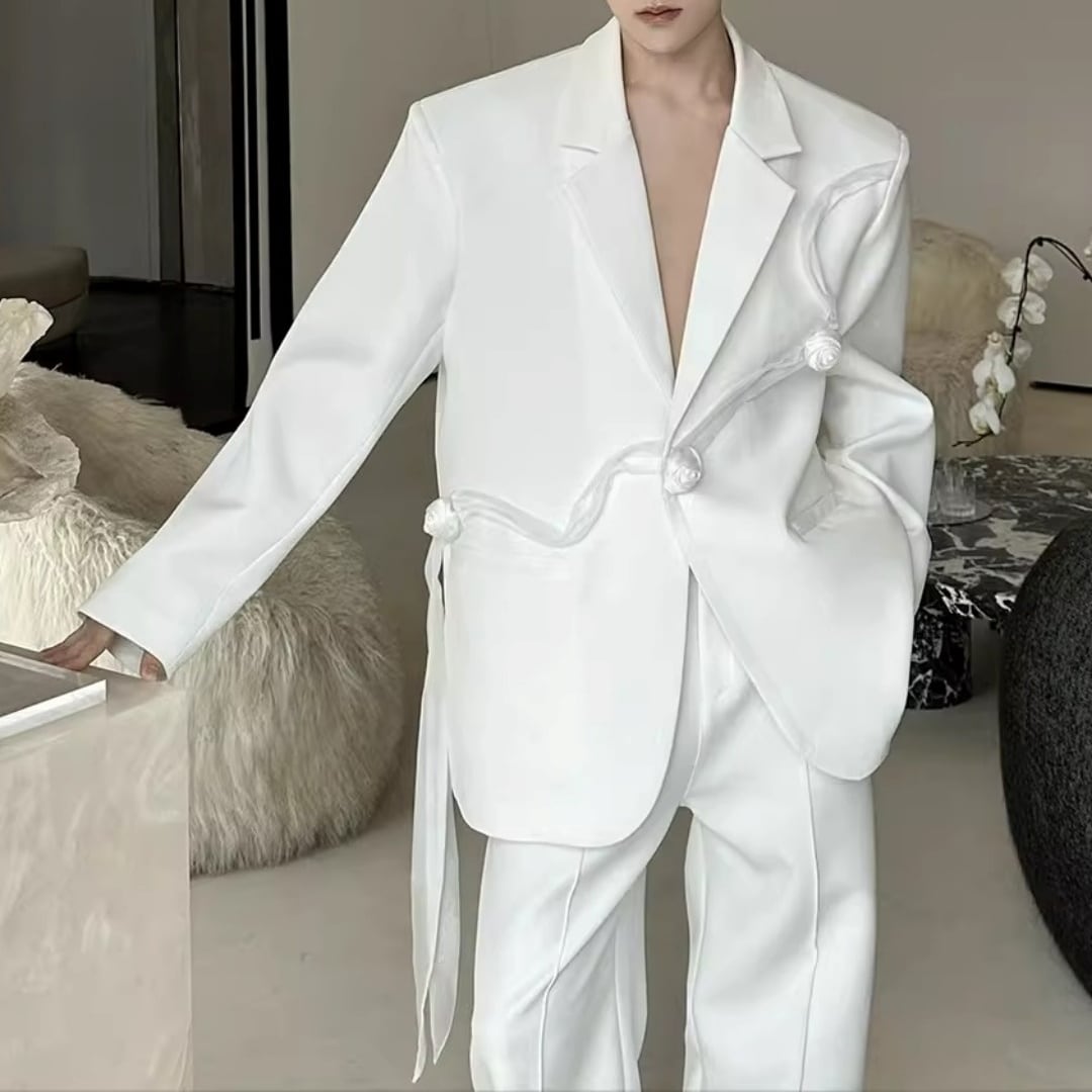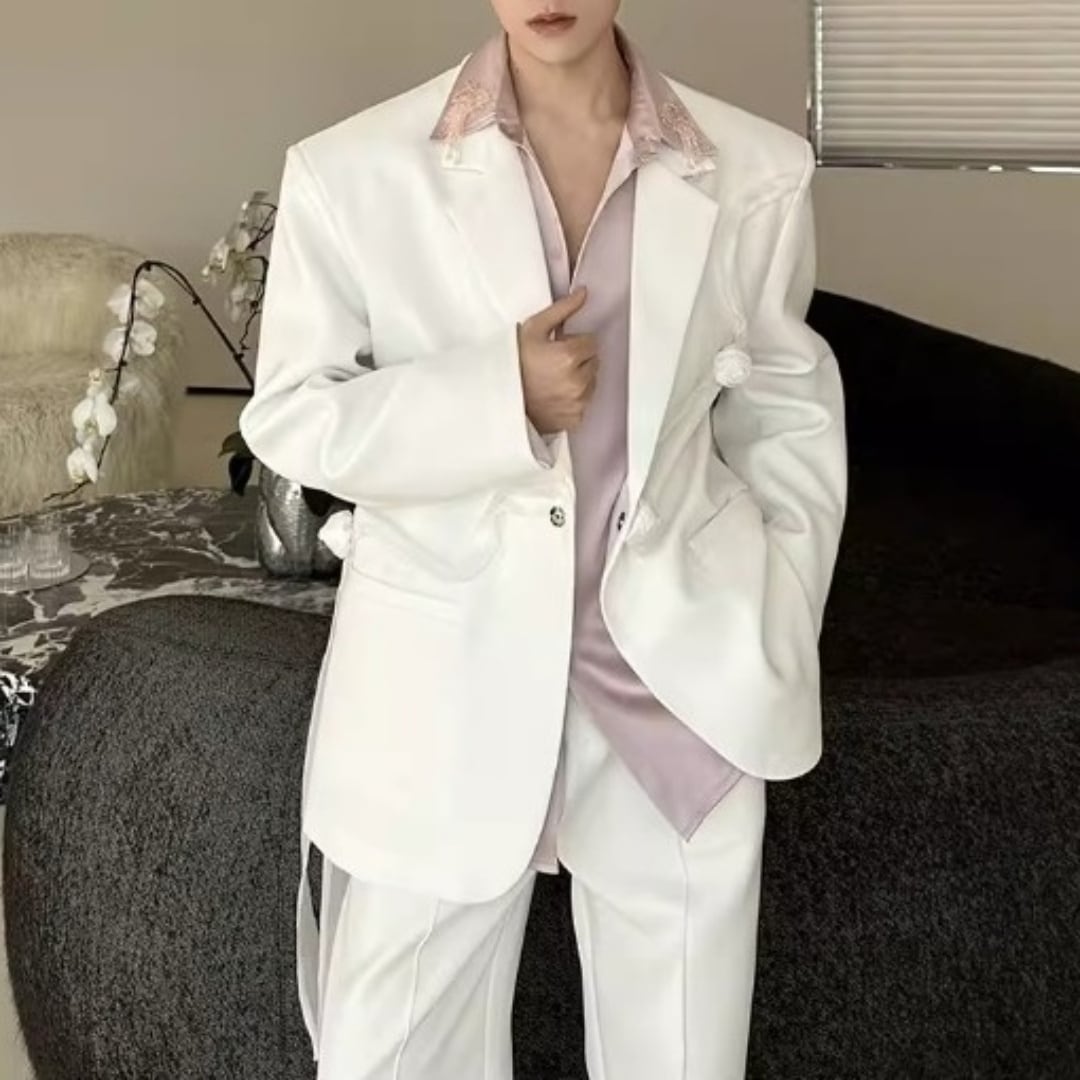 リボンコサージュアクセント オーバーサイズスーツセットアップ 2カラー D12258