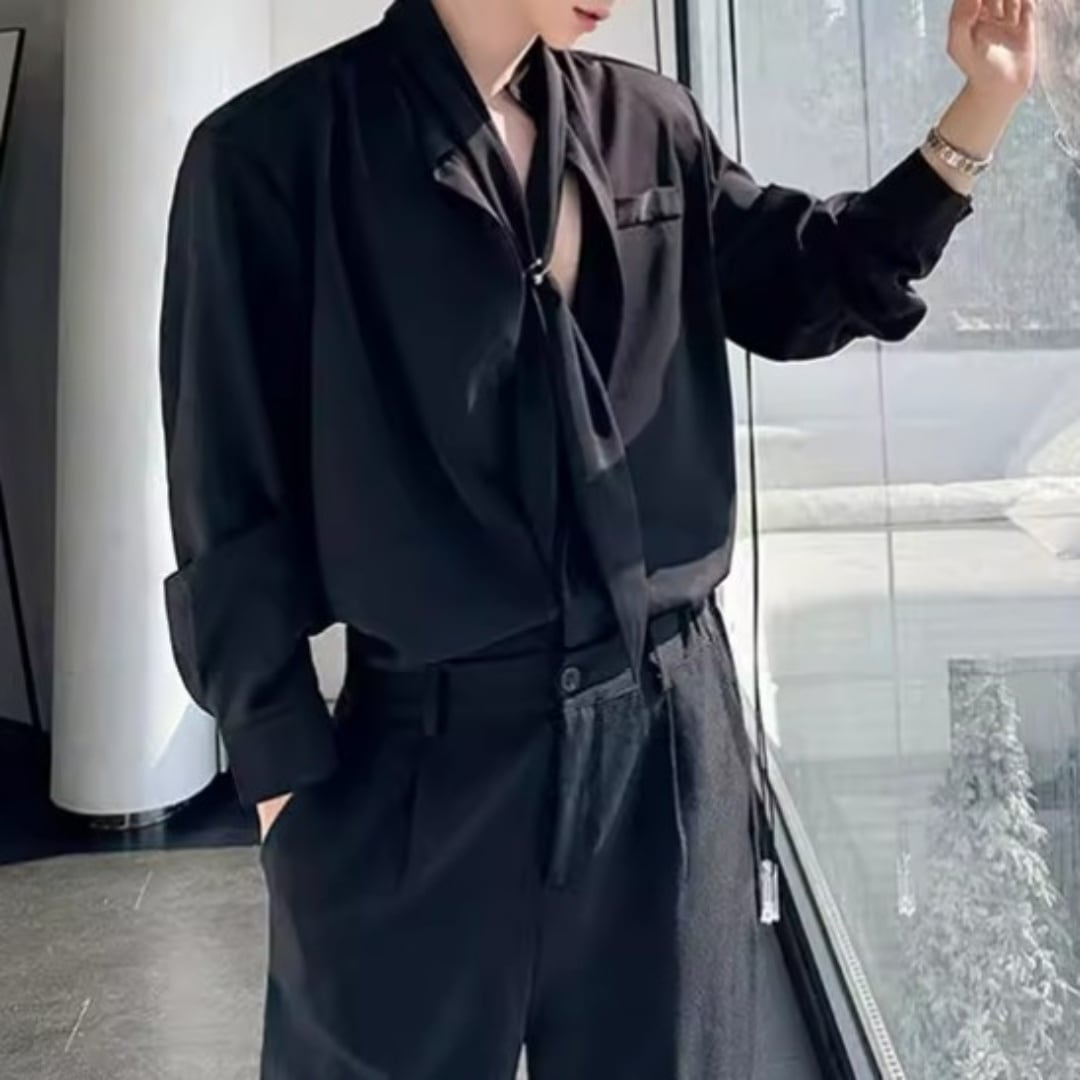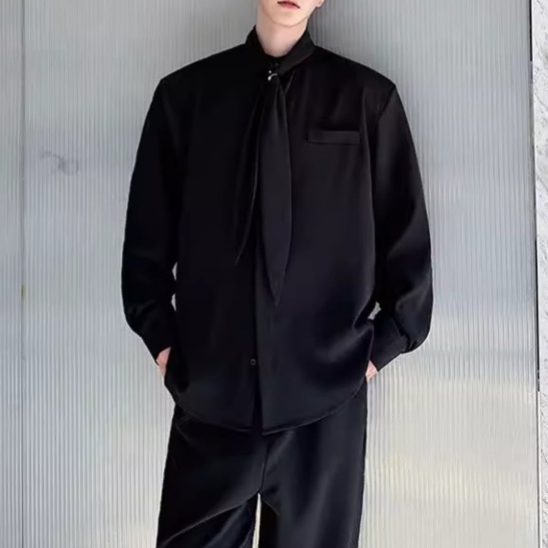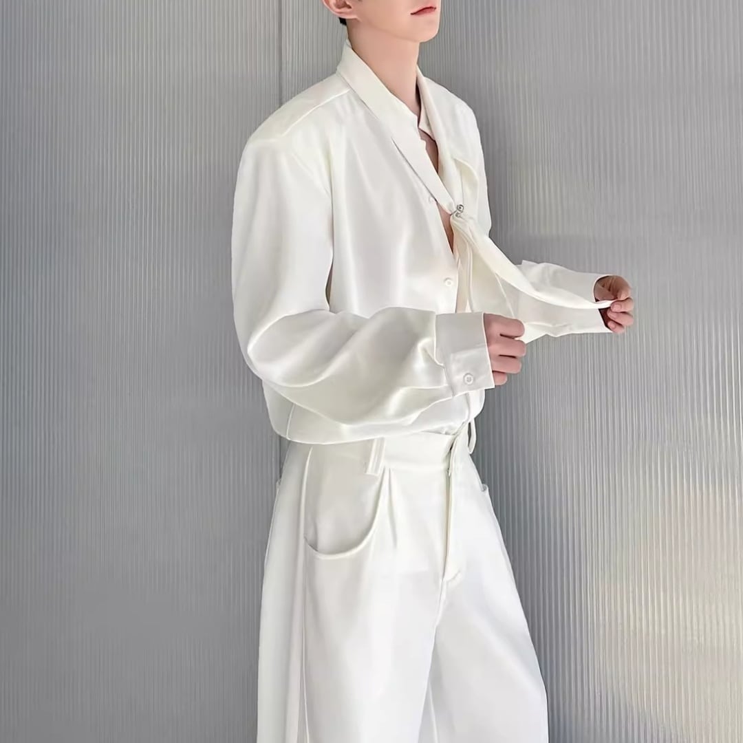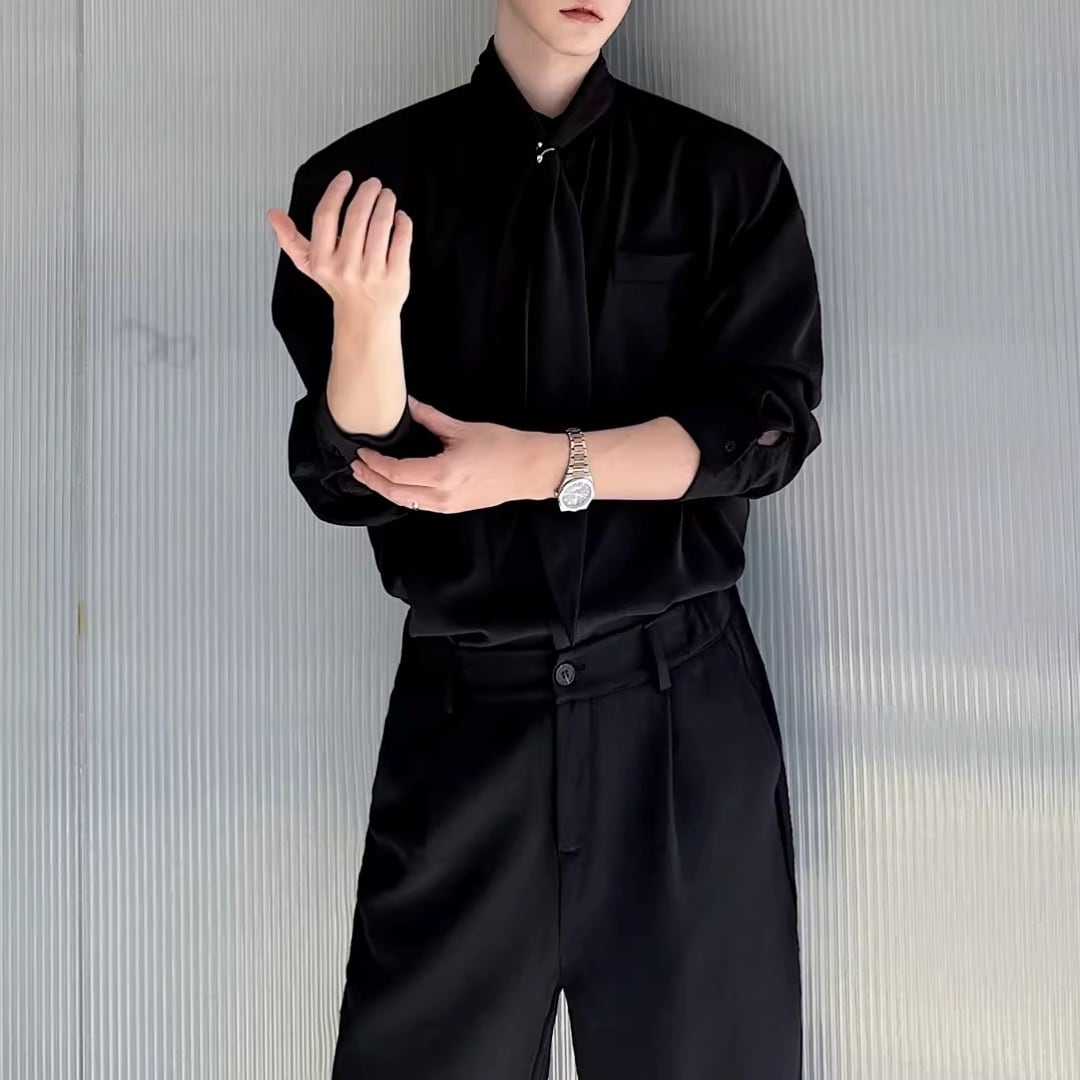 ボウタイデザイン ドレープモードシャツ 2カラー D12261
