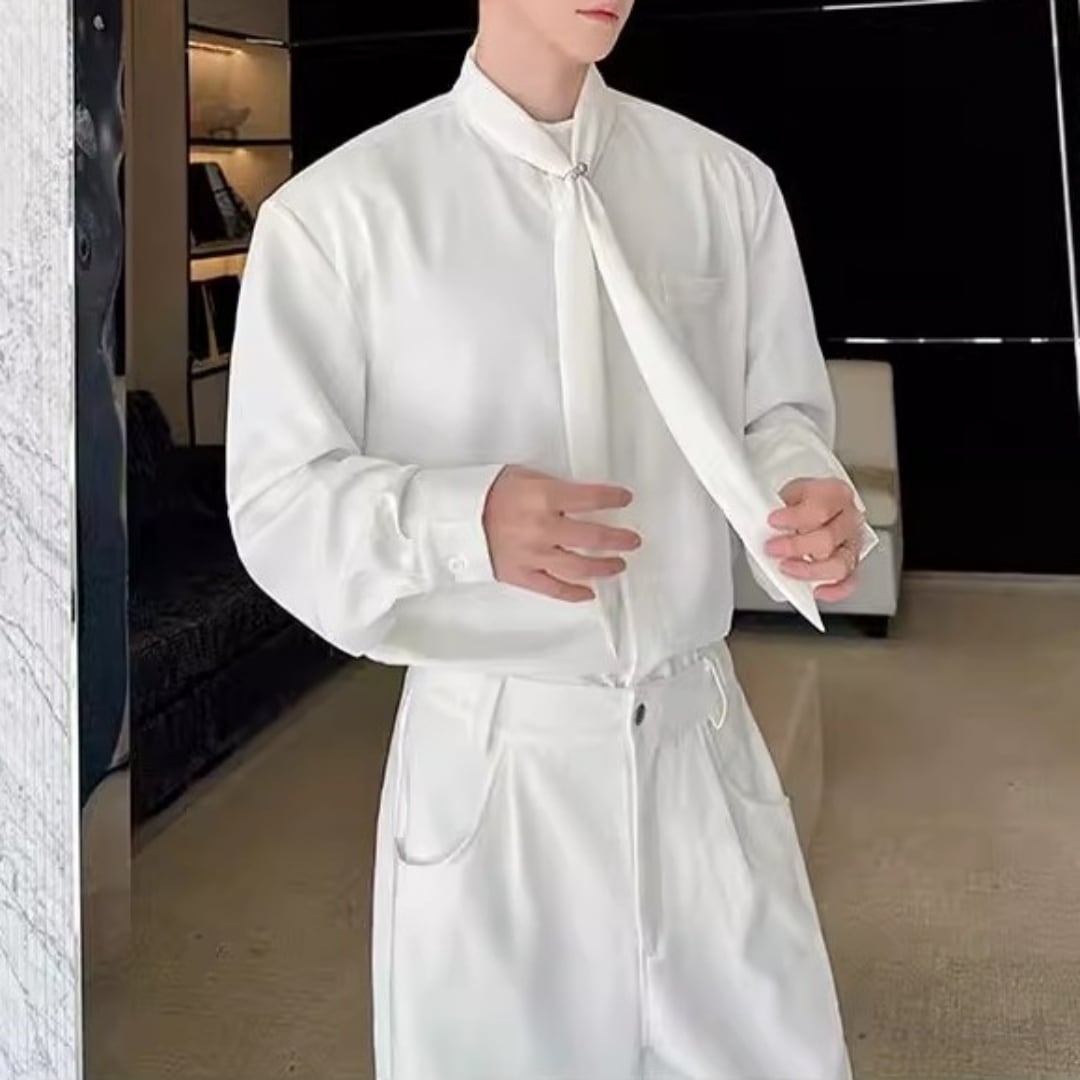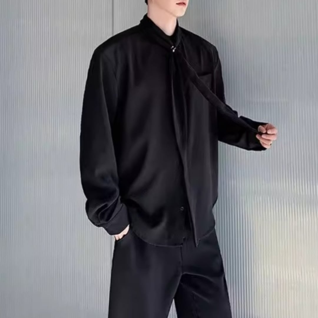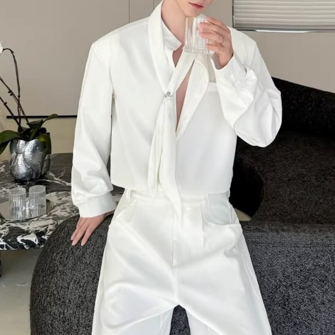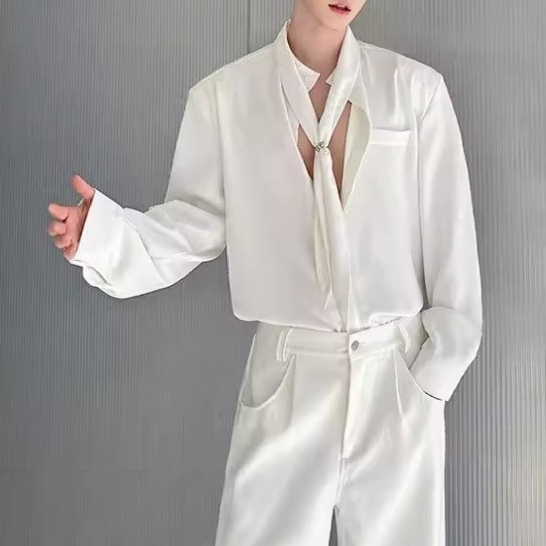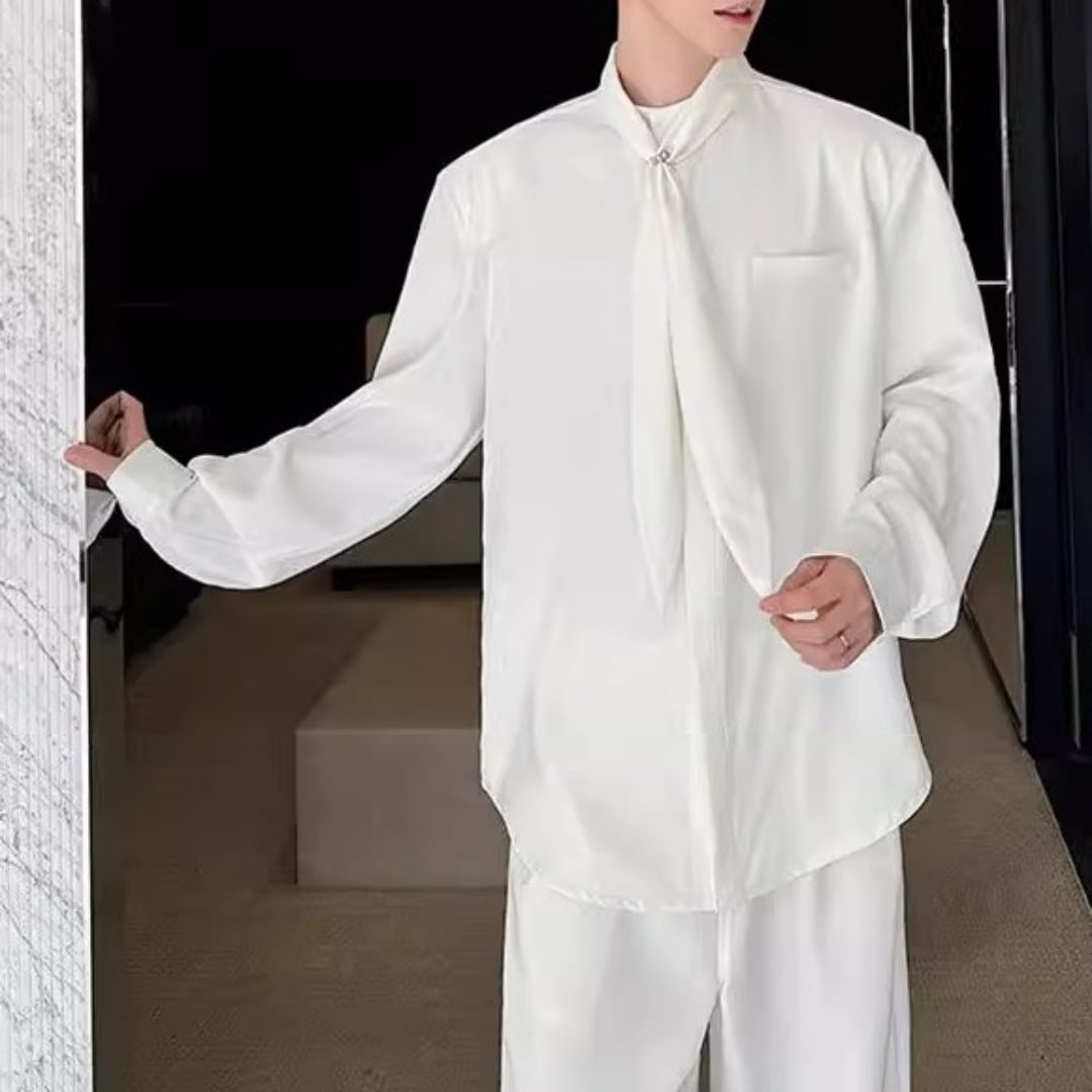 ボウタイデザイン ドレープモードシャツ 2カラー D12261