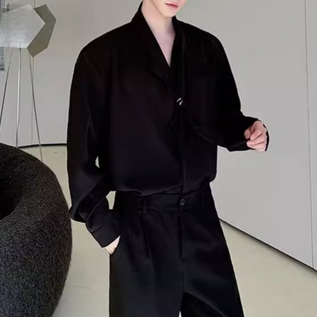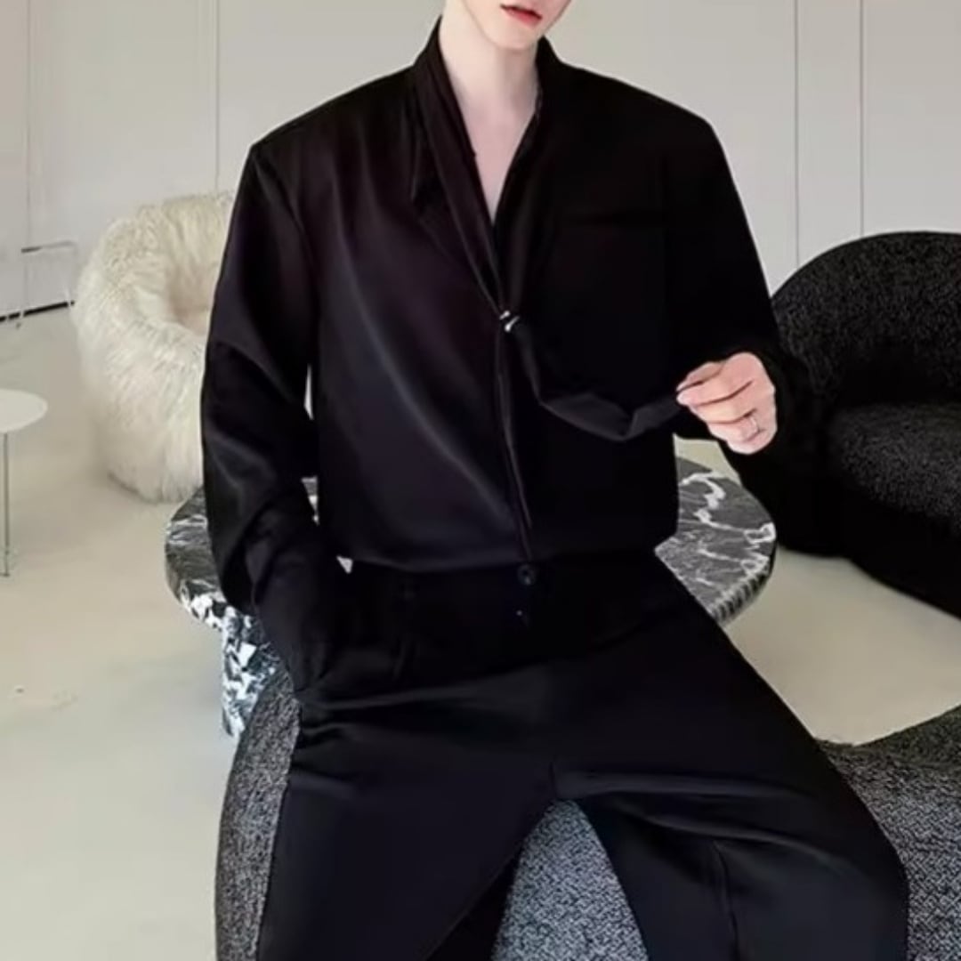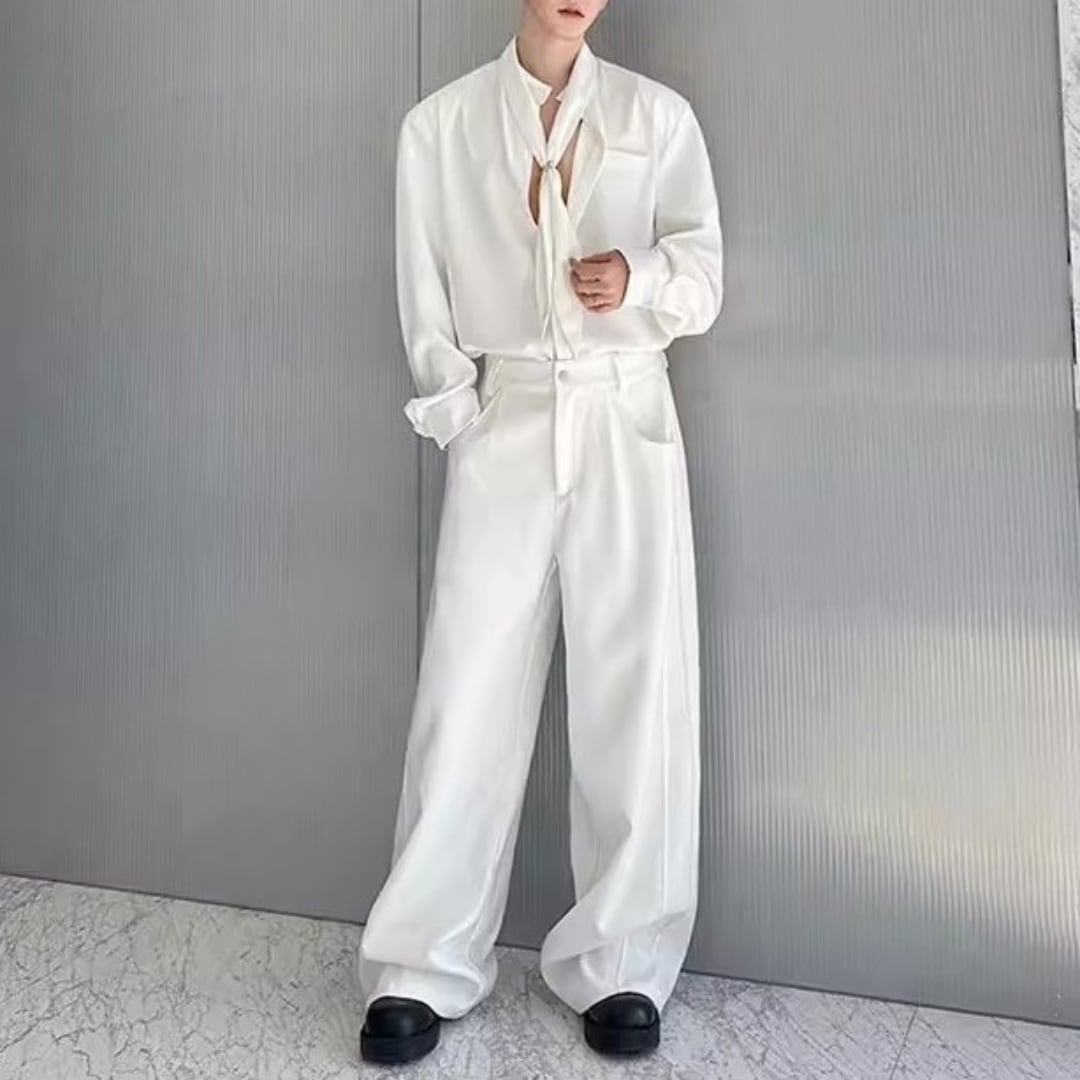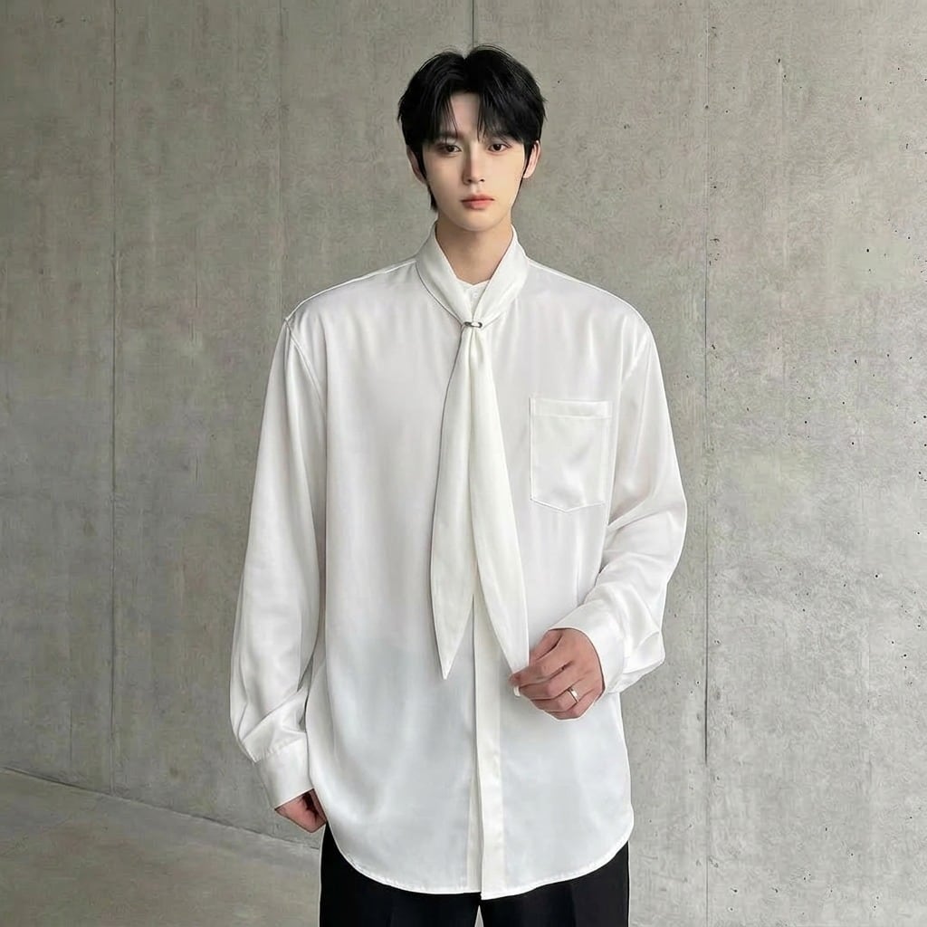 ボウタイデザイン ドレープモードシャツ 2カラー D12261