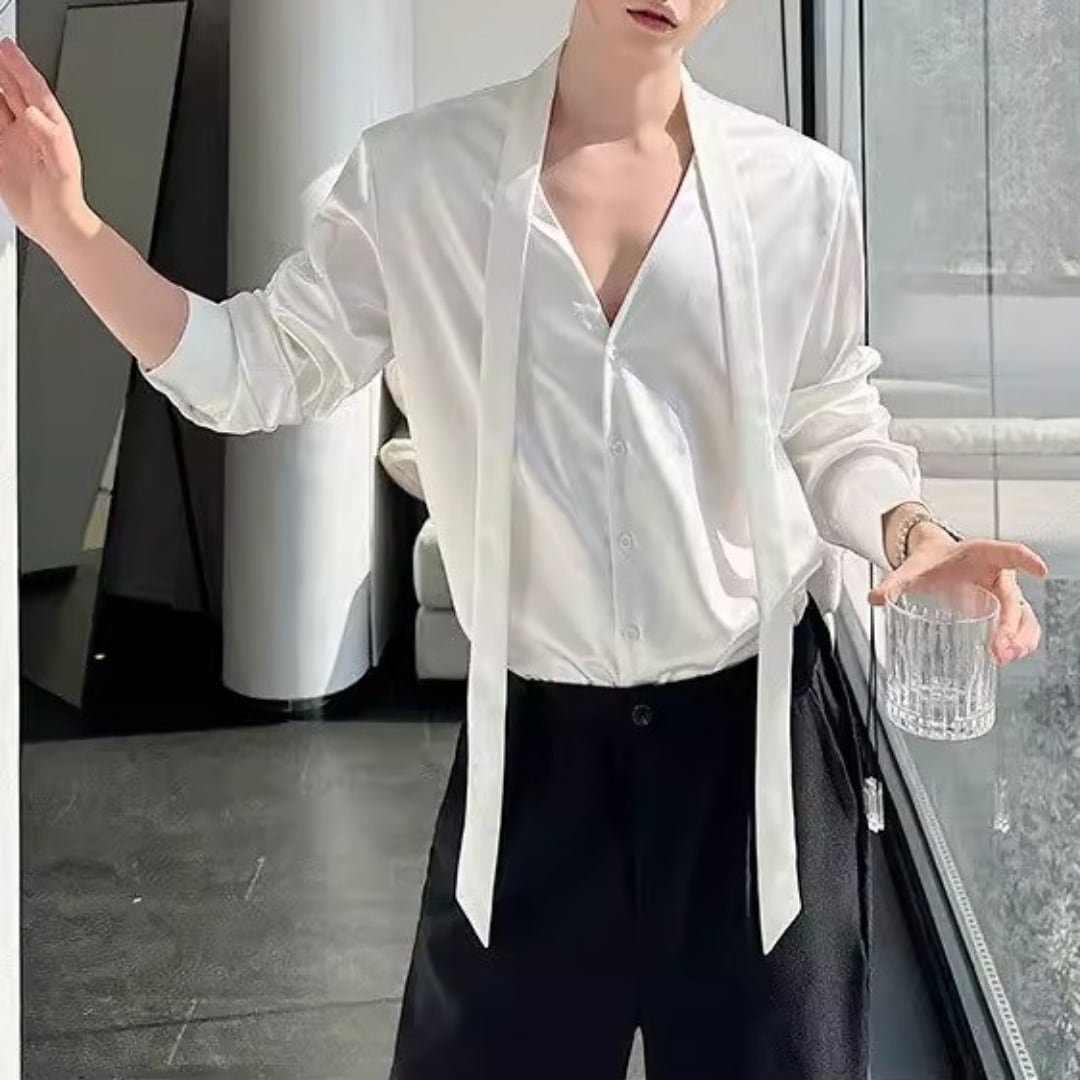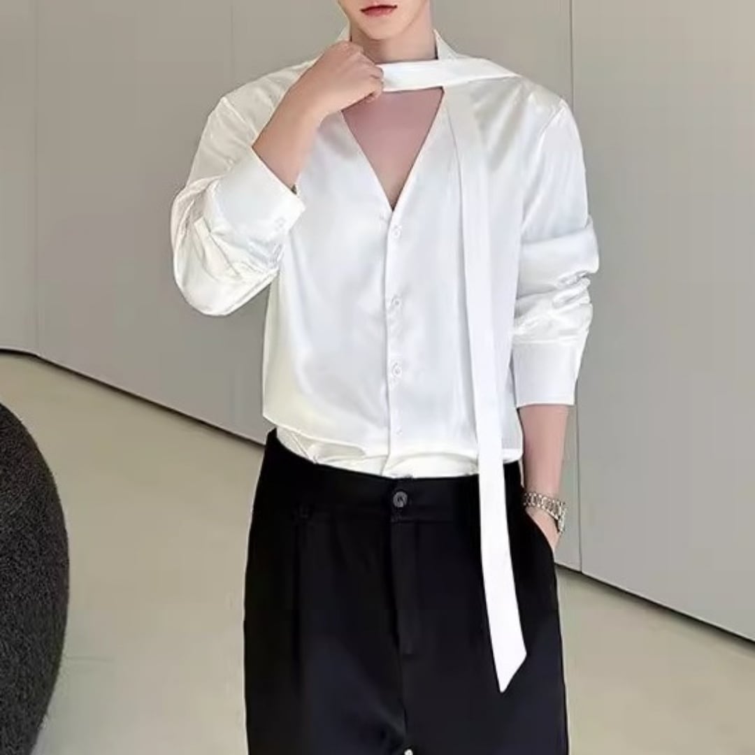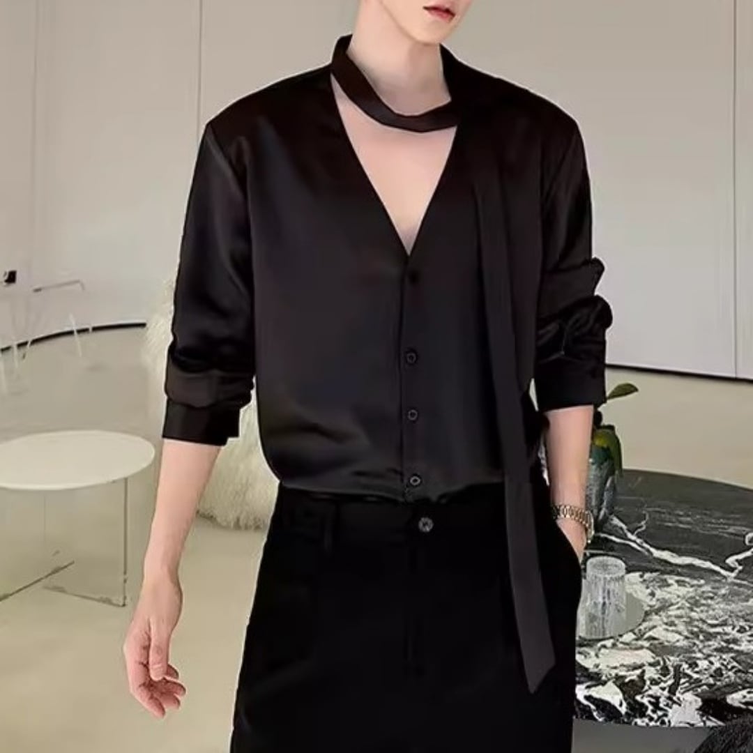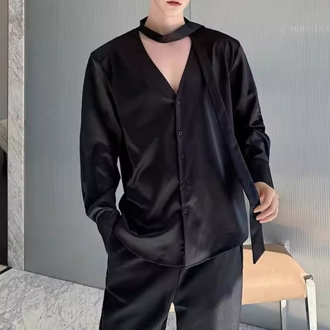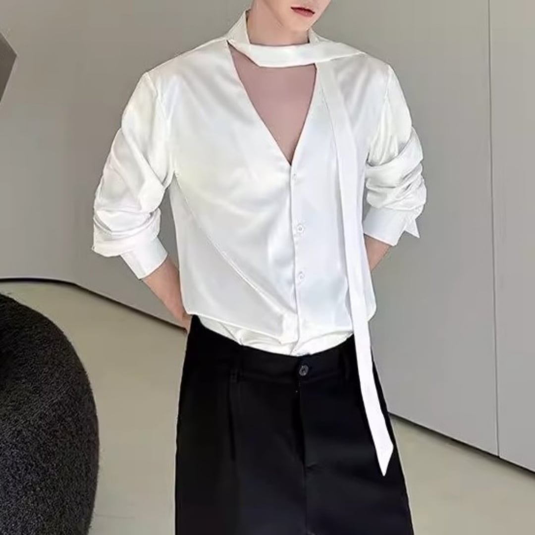 チョーカーデザイン Vネックモードシャツ 2カラー D12262