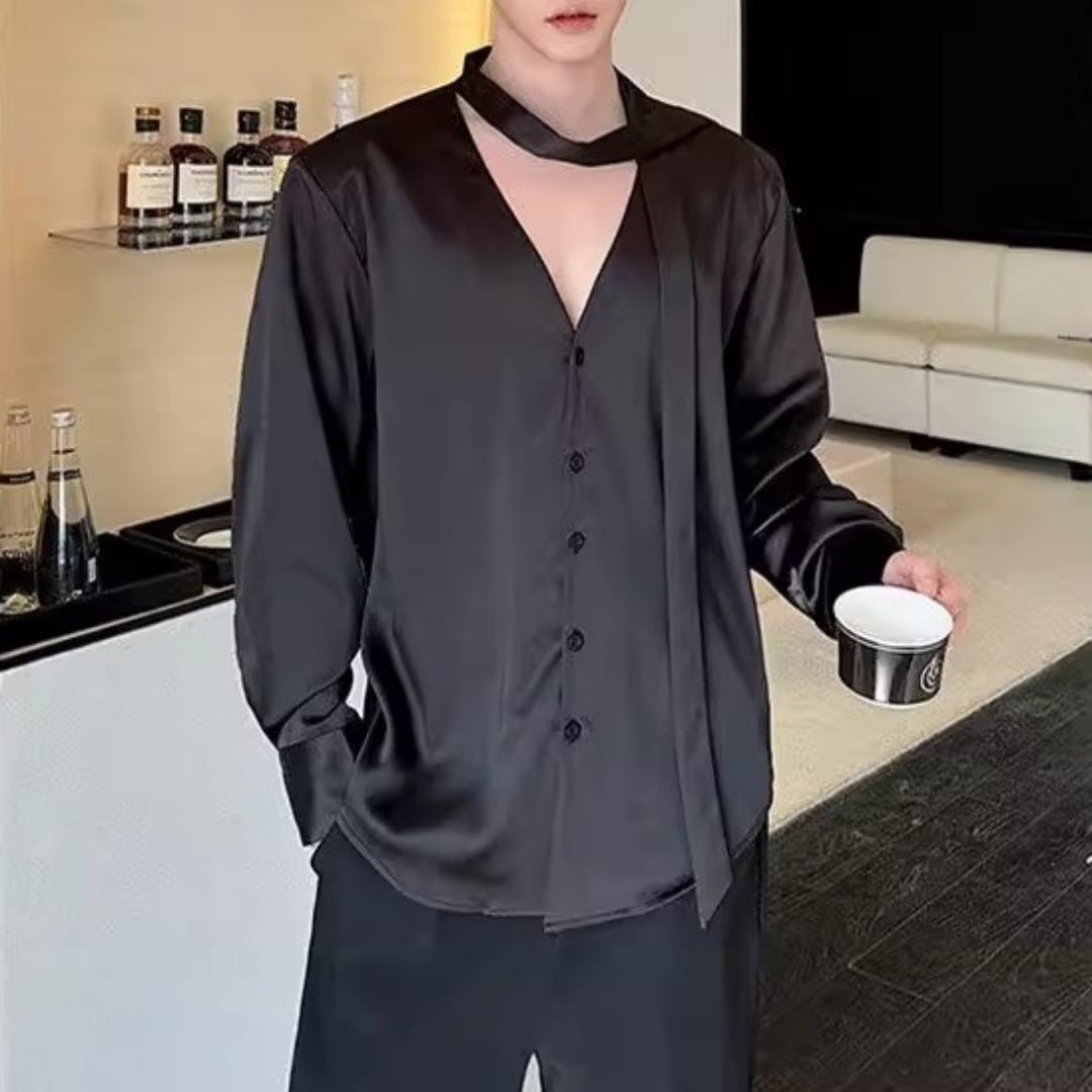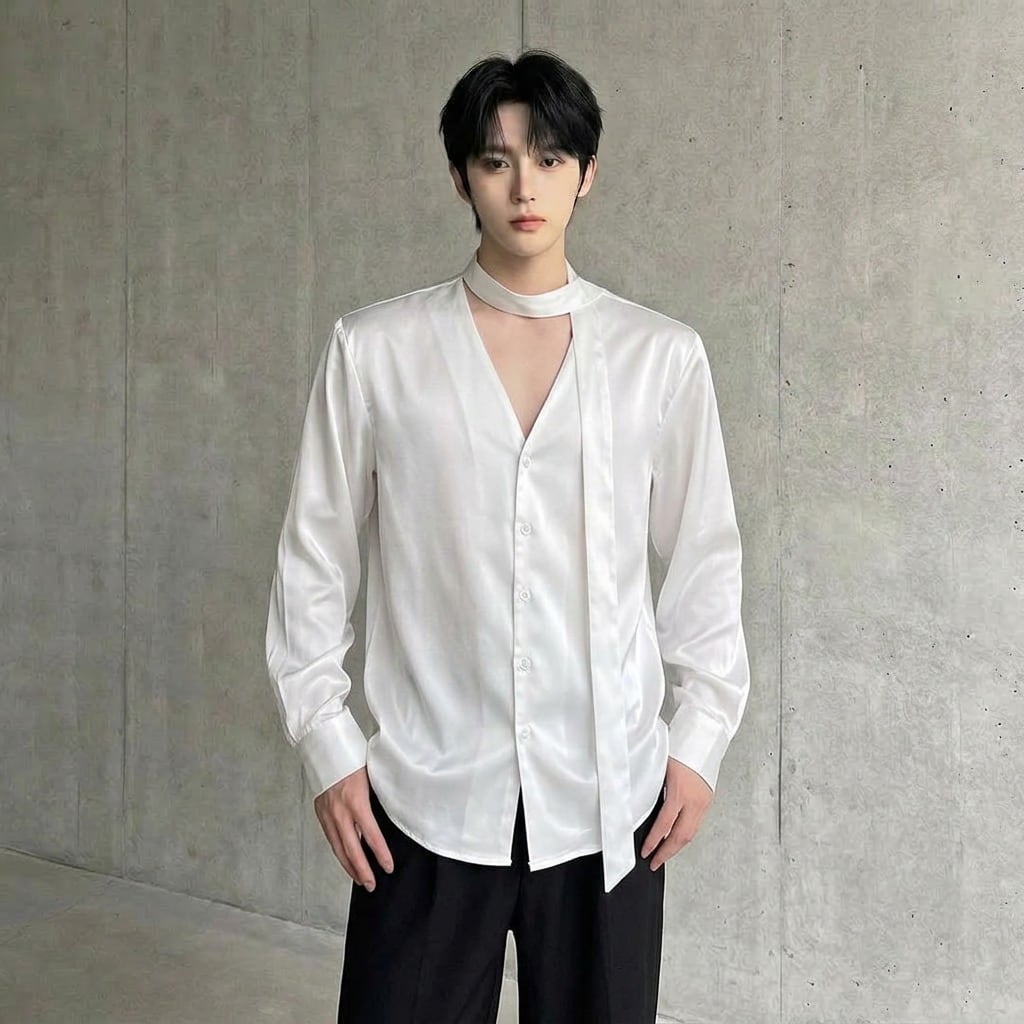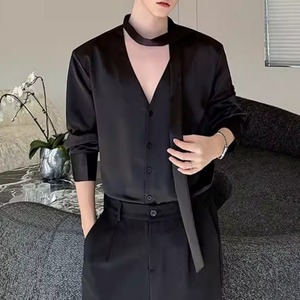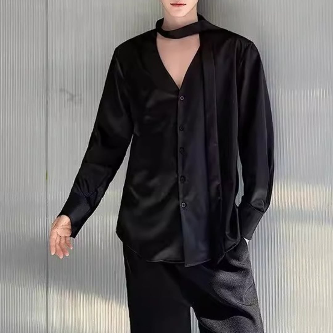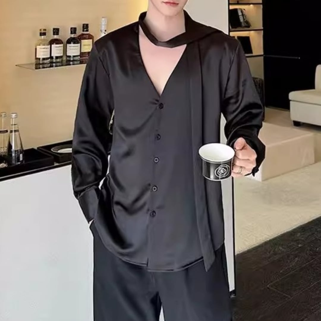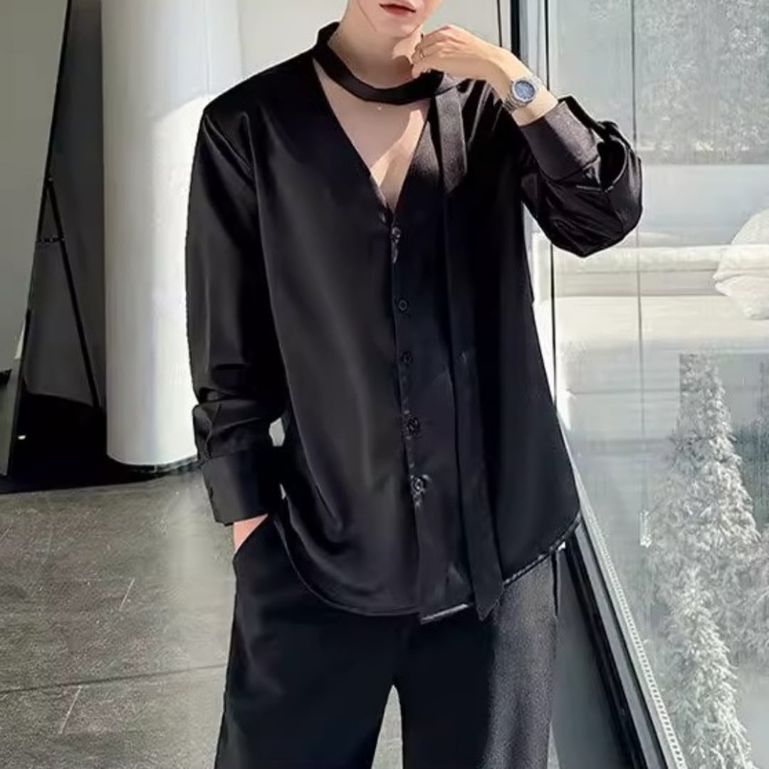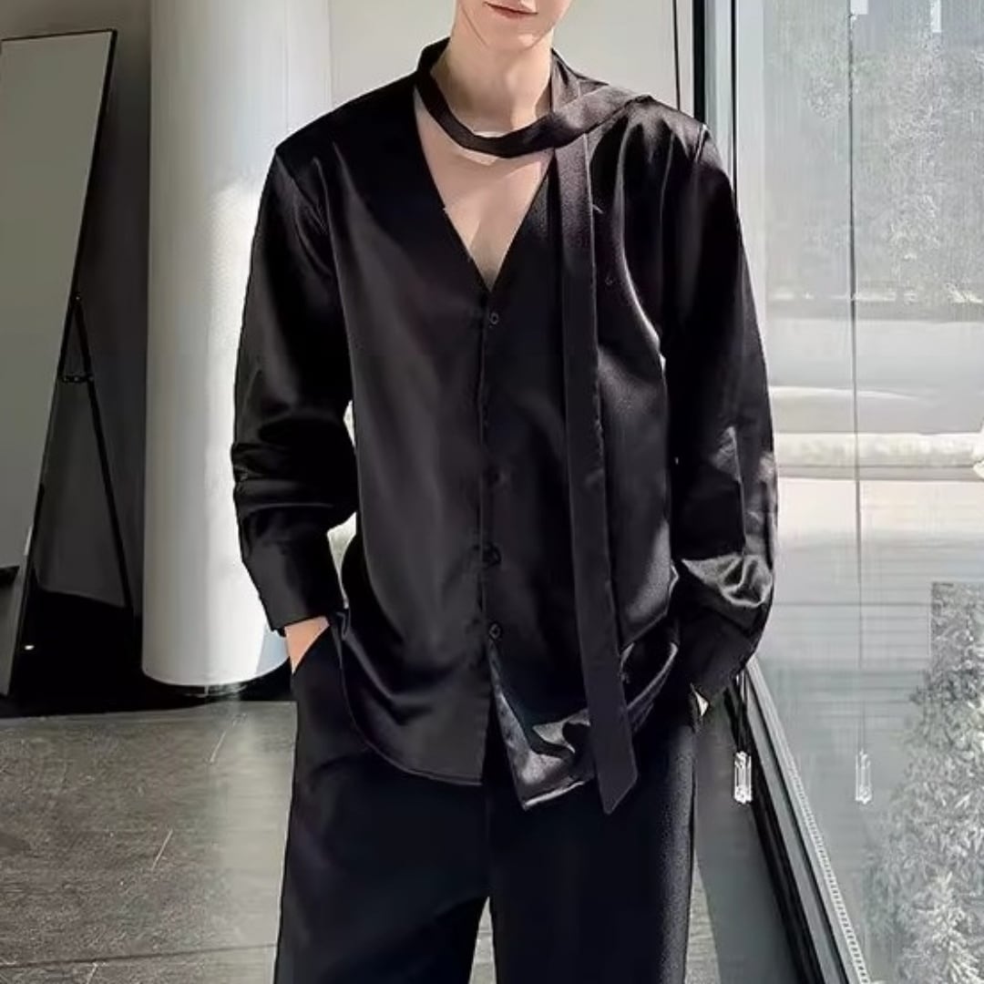チョーカーデザイン Vネックモードシャツ 2カラー D12262