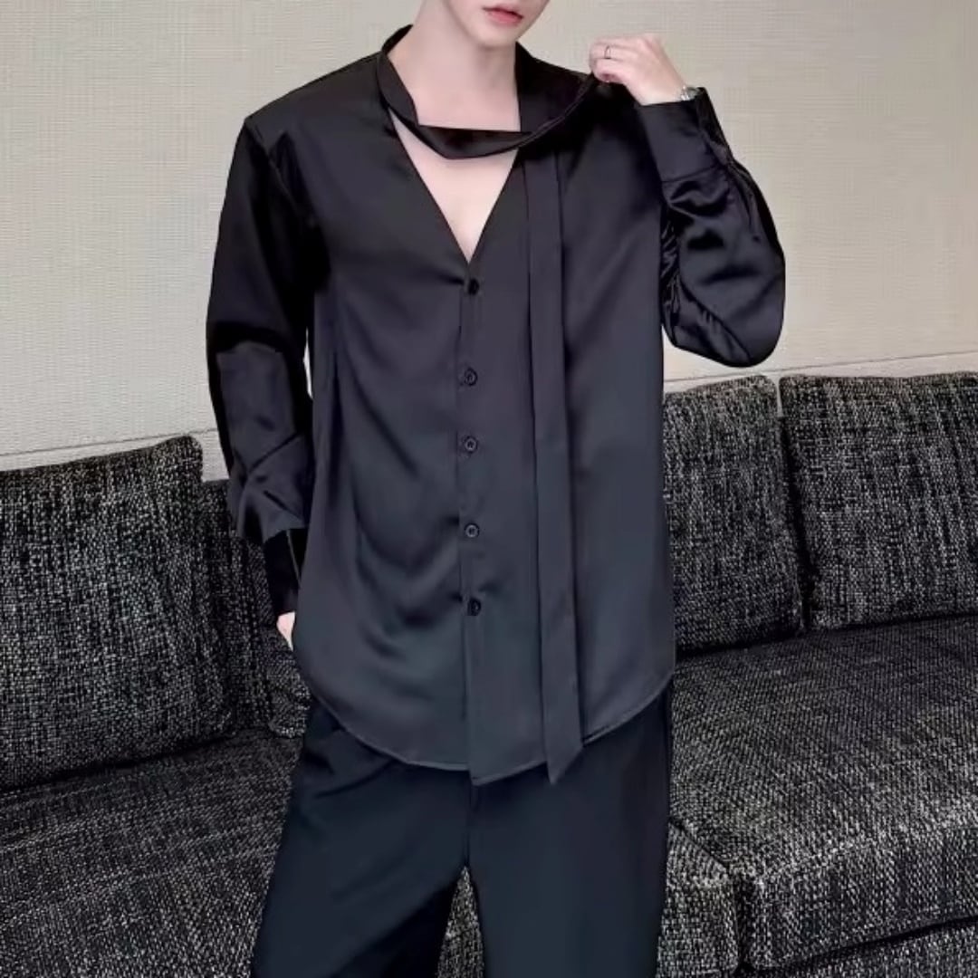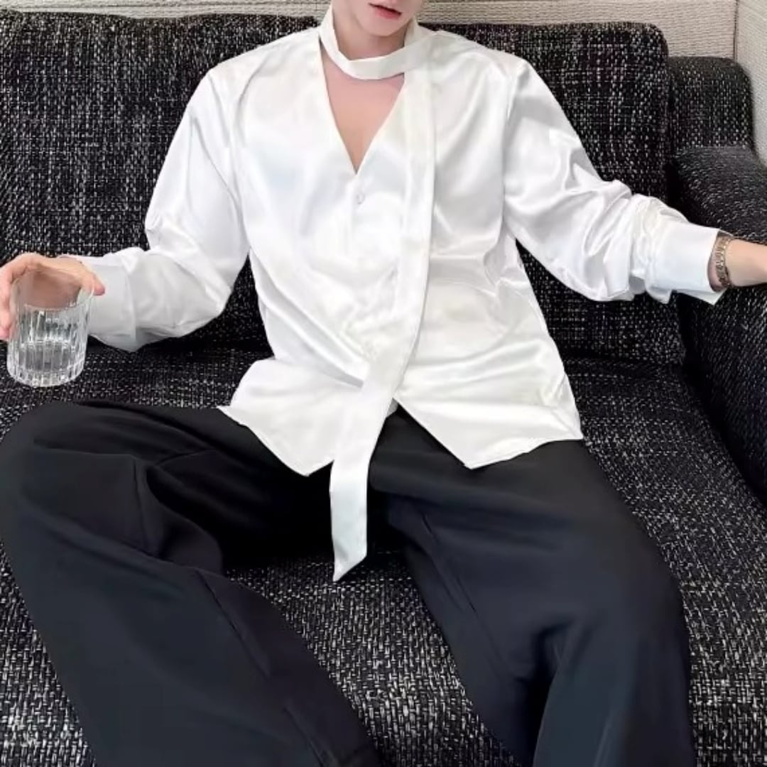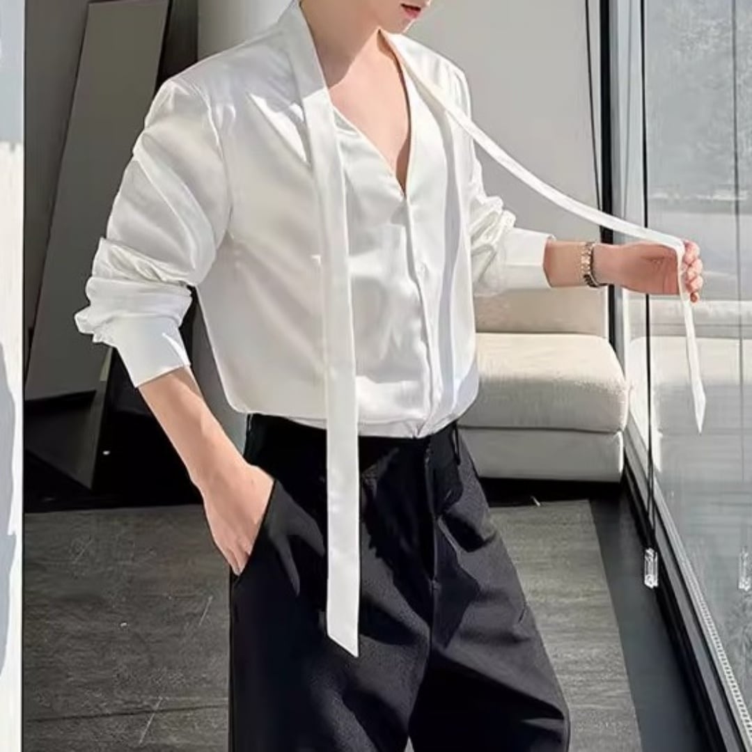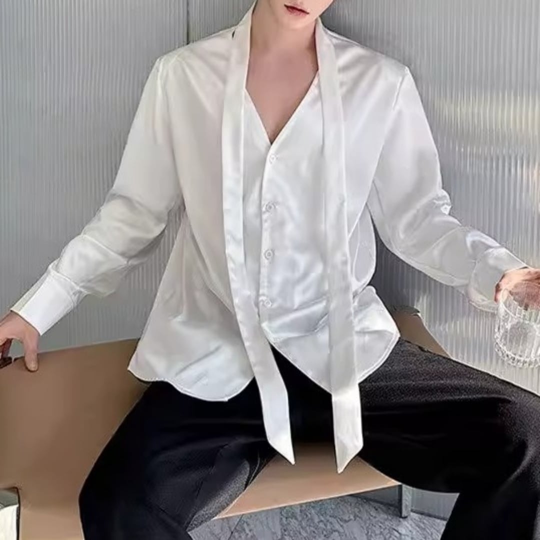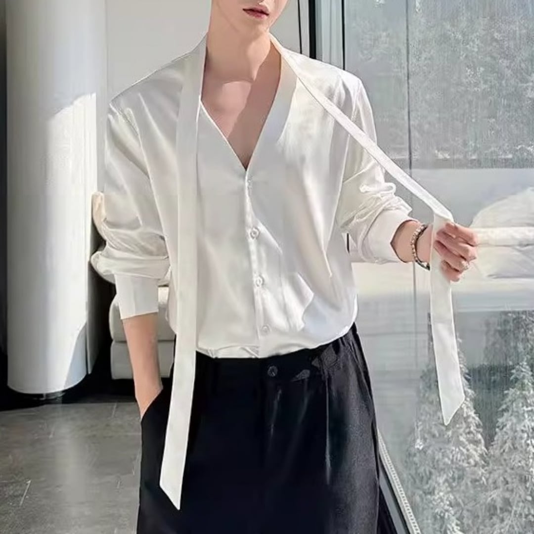 チョーカーデザイン Vネックモードシャツ 2カラー D12262