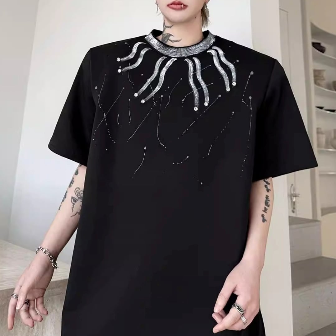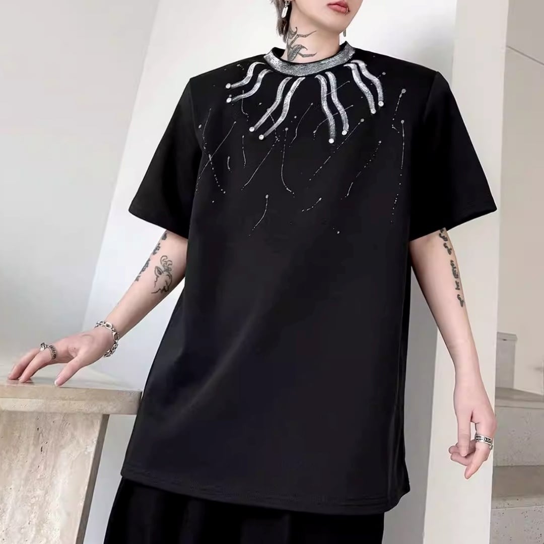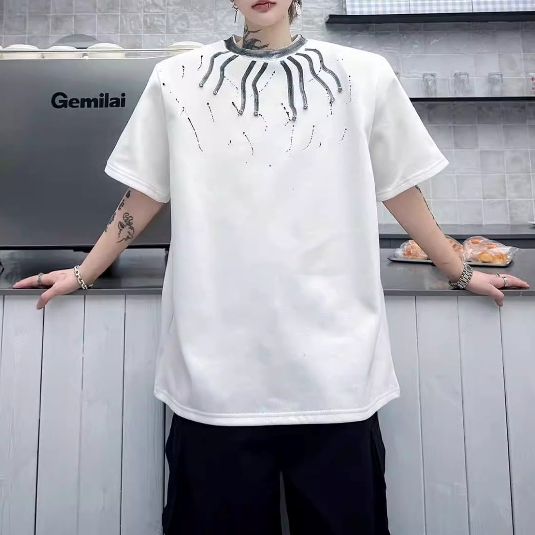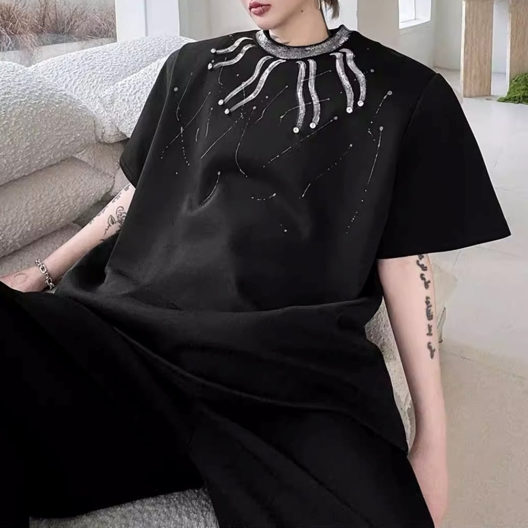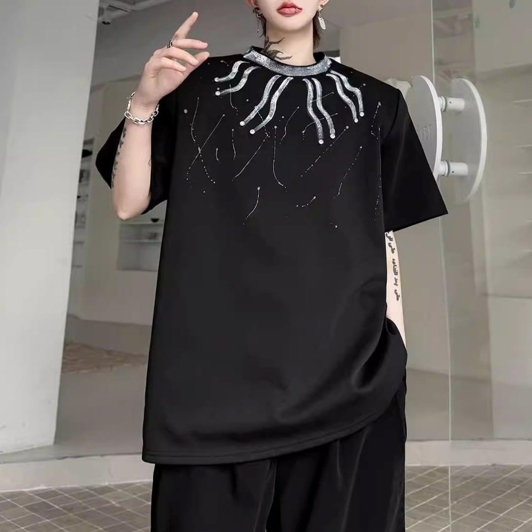 ネックデコレーション オーバーサイズTシャツ 2カラー D12273
