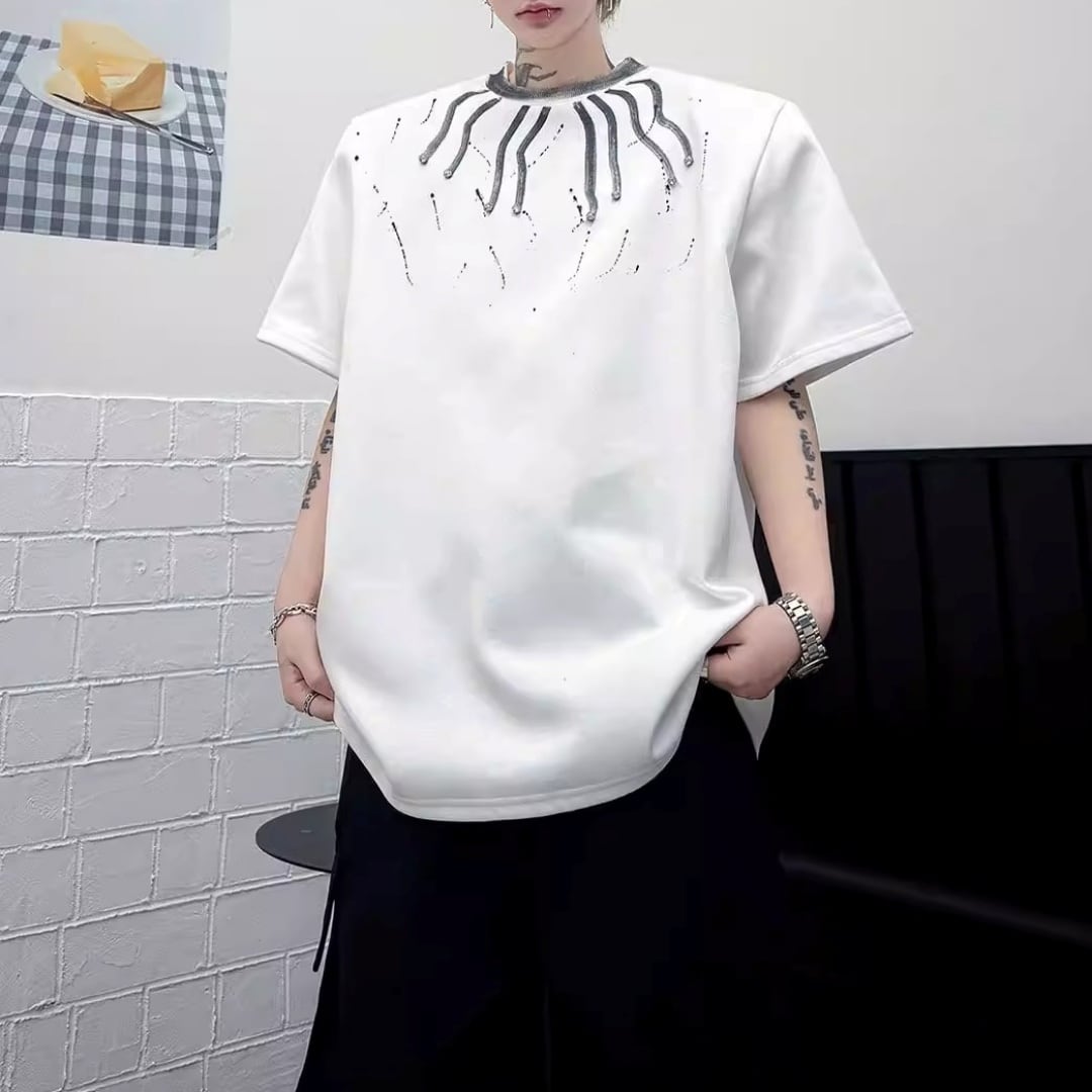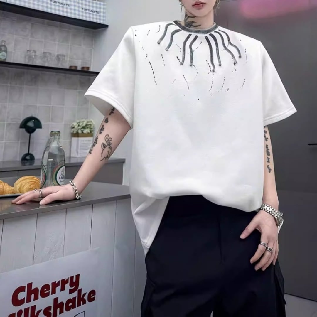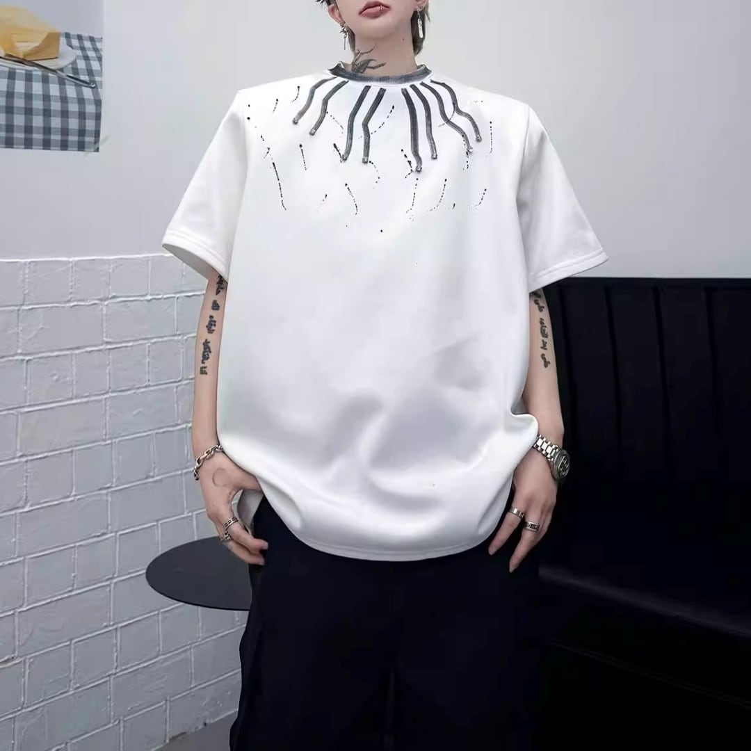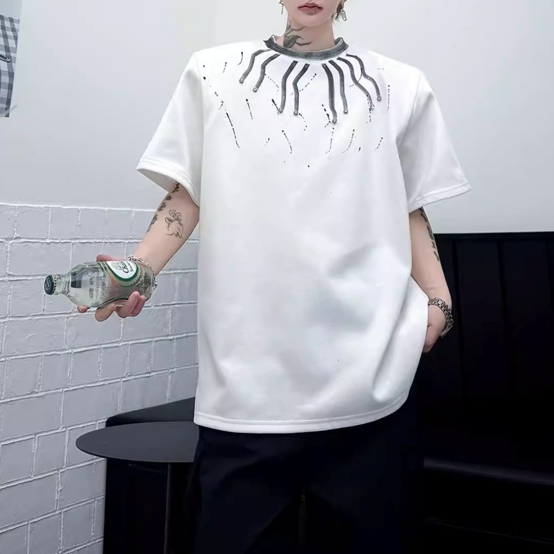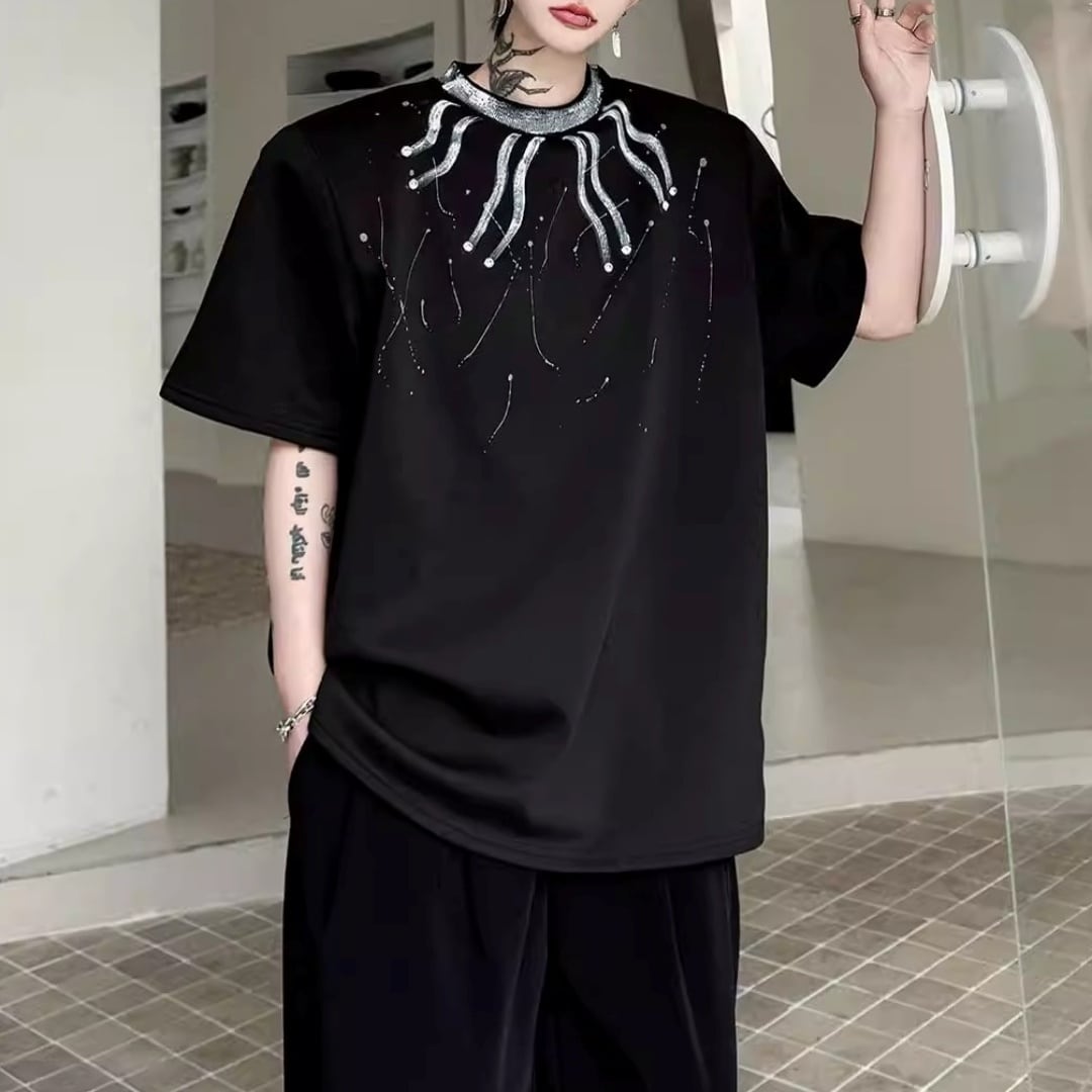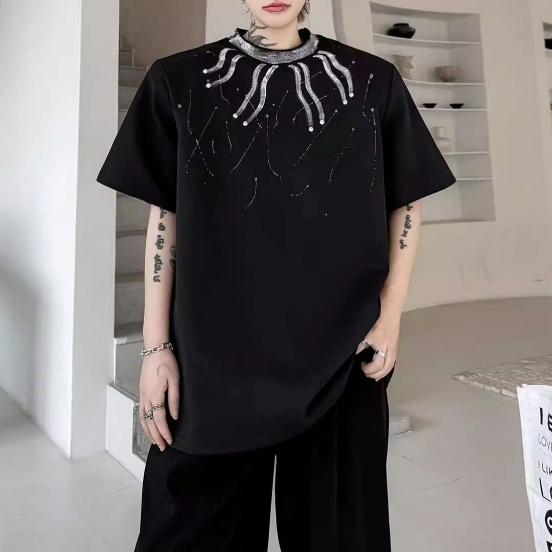 ネックデコレーション オーバーサイズTシャツ 2カラー D12273