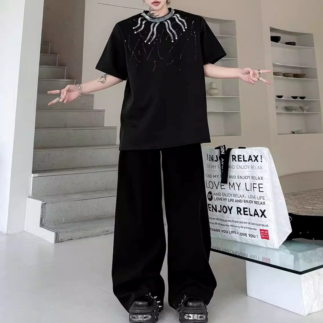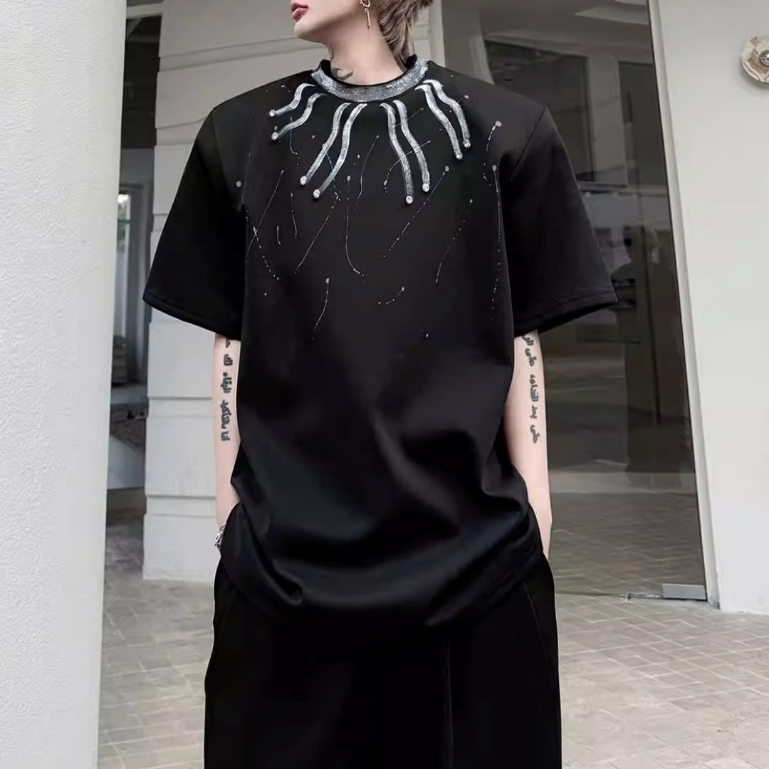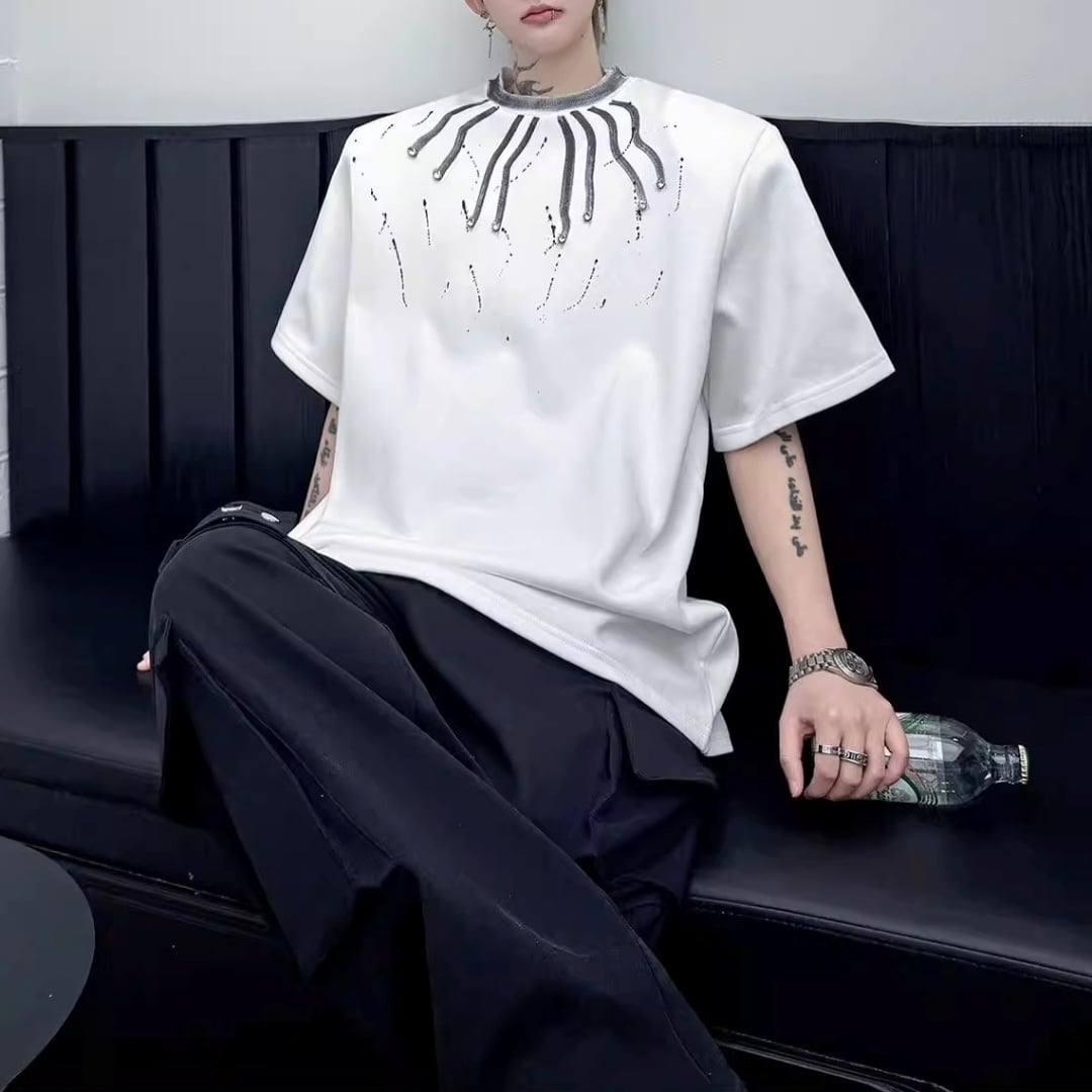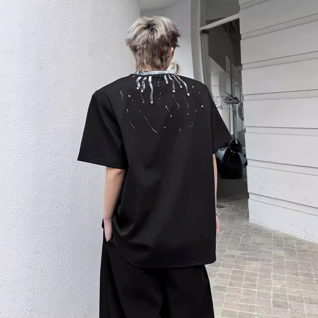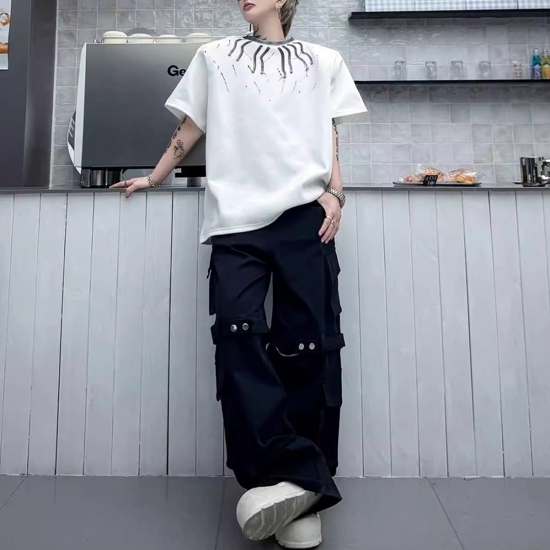 ネックデコレーション オーバーサイズTシャツ 2カラー D12273