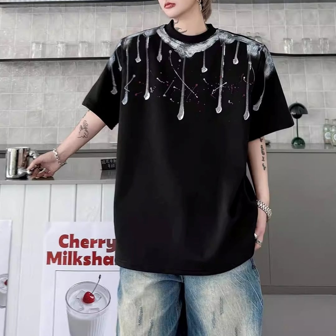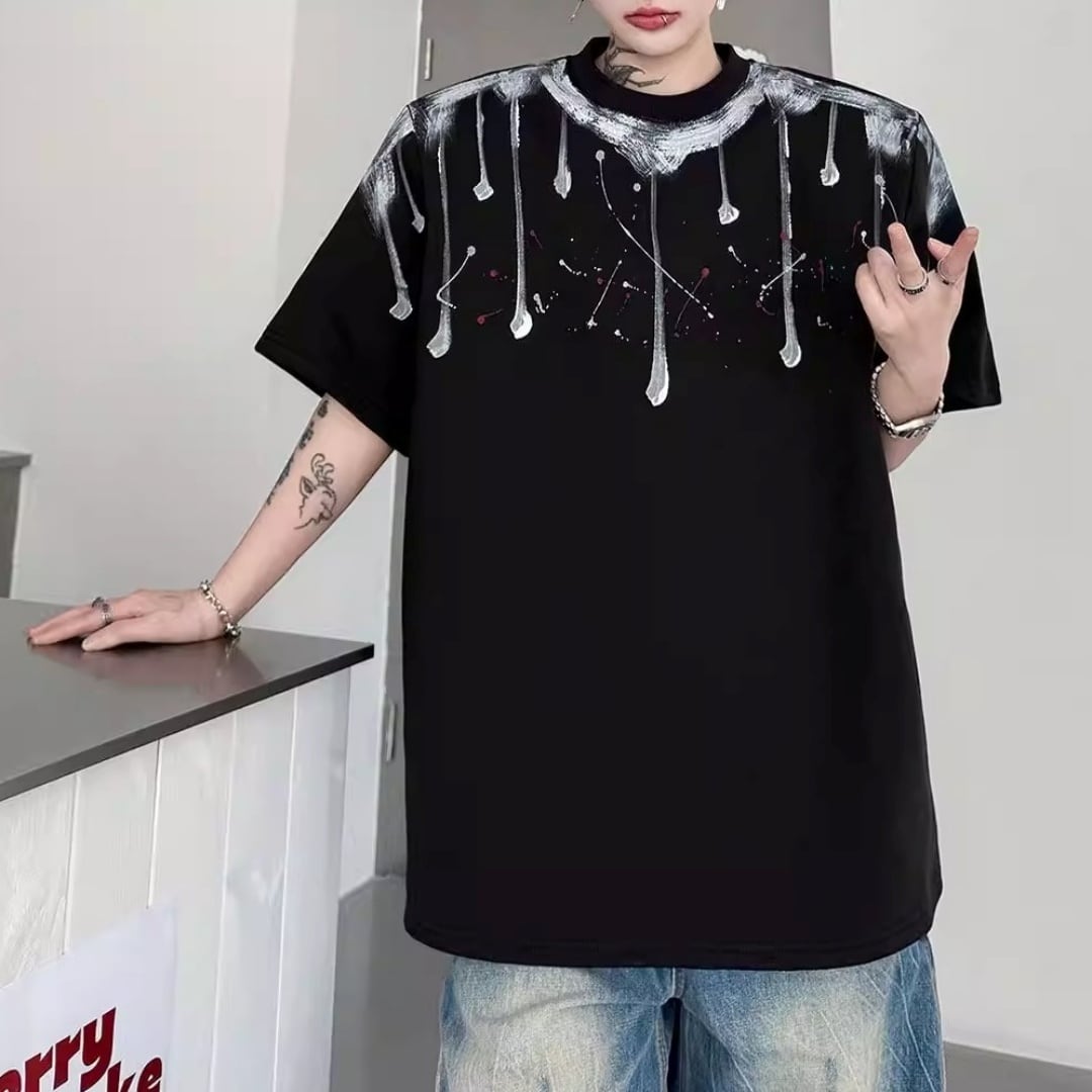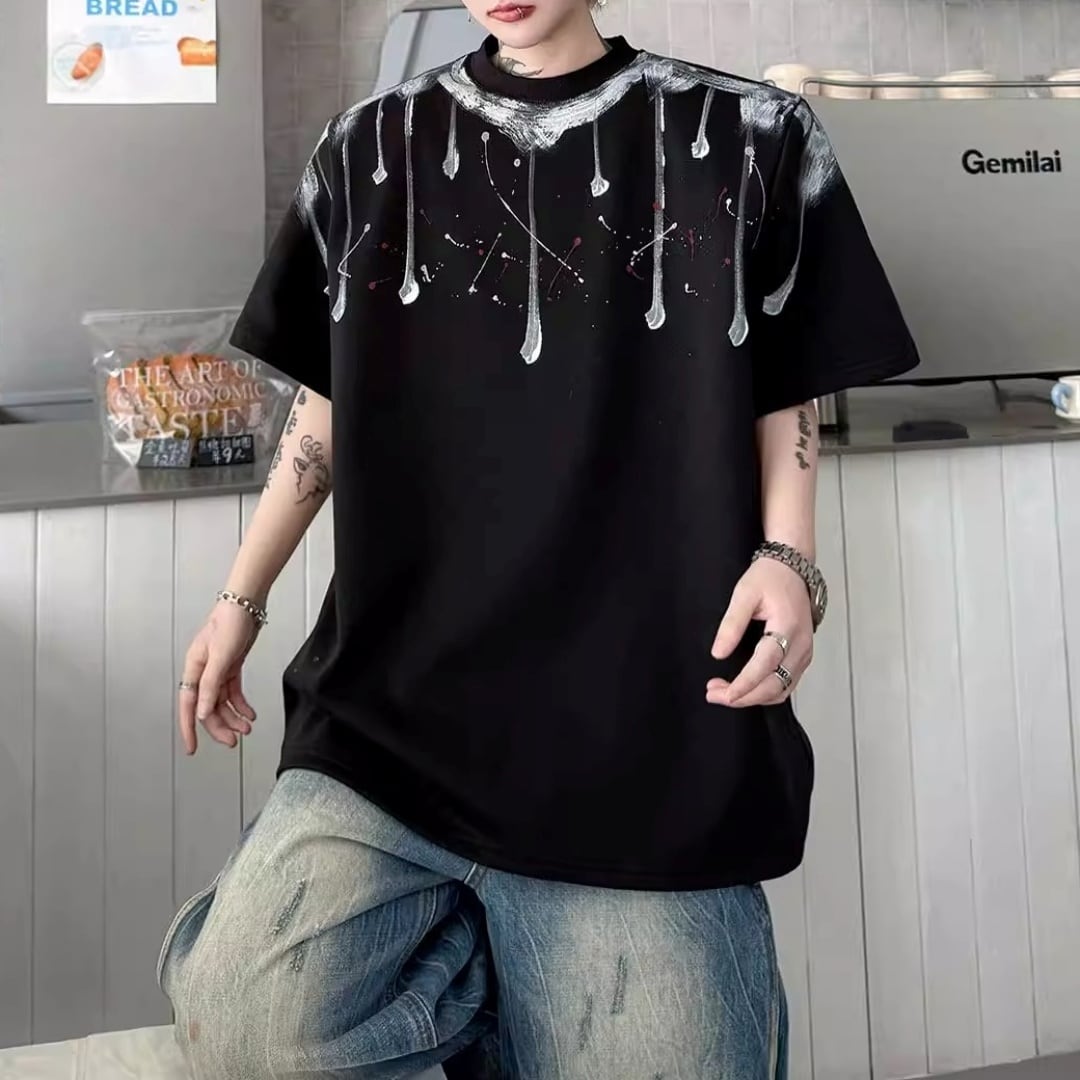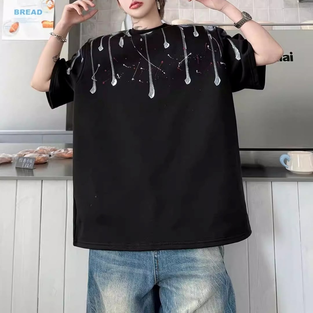 ドリップペイントグラフィック オーバーサイズTシャツ 2カラー D12277