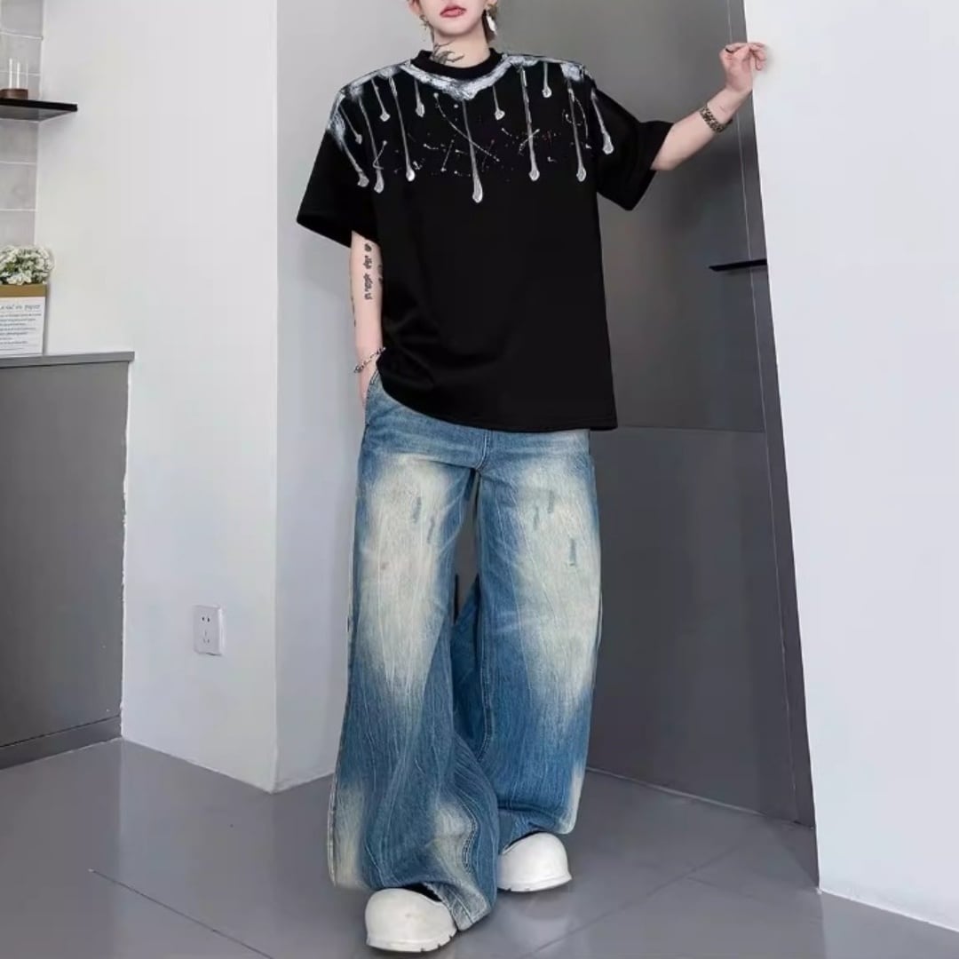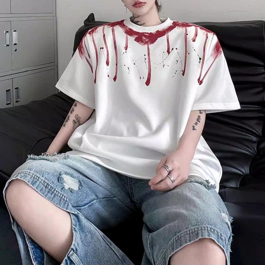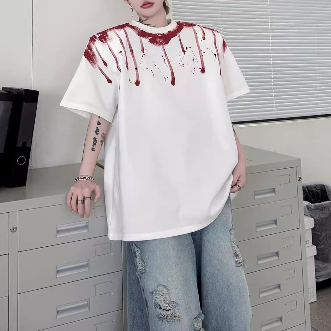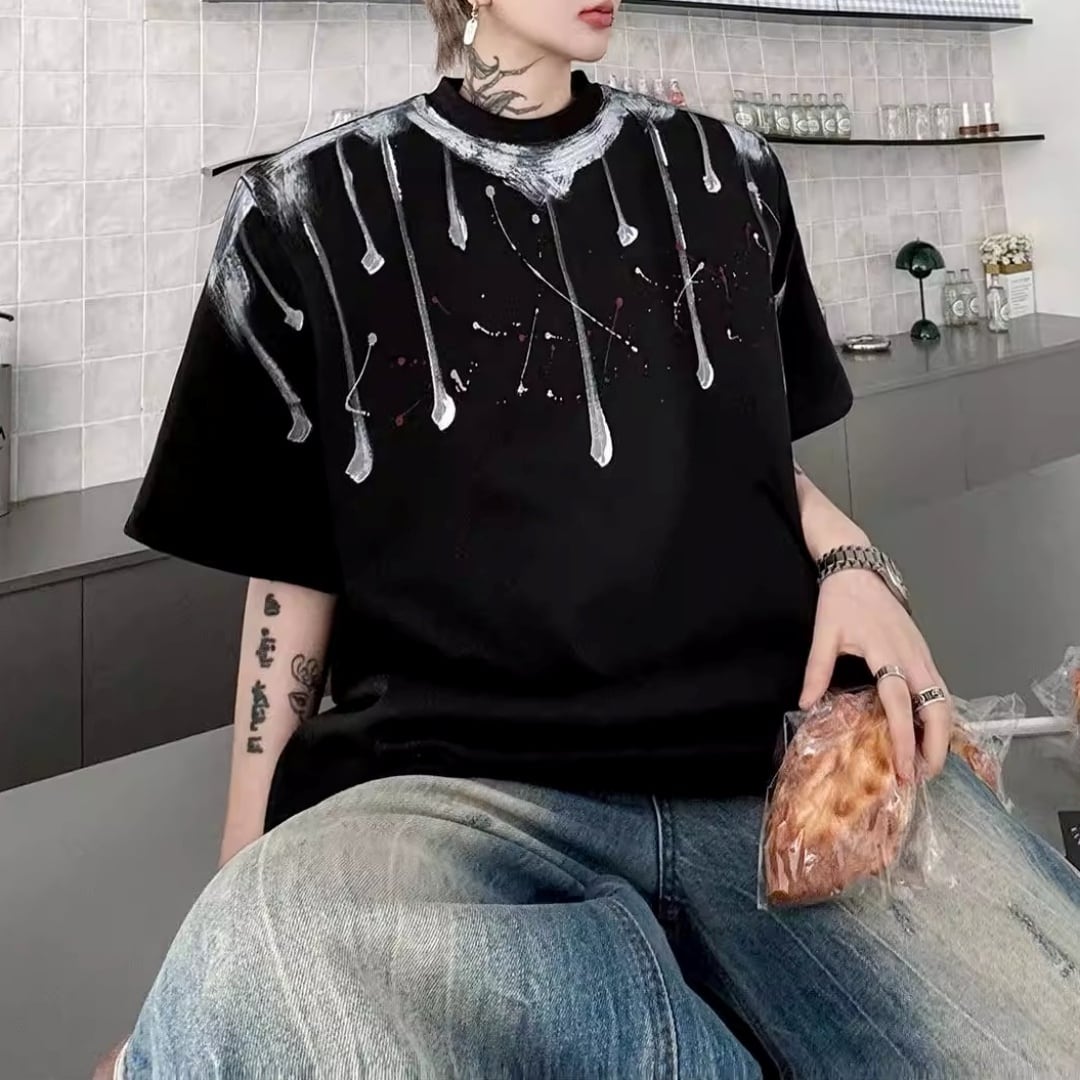 ドリップペイントグラフィック オーバーサイズTシャツ 2カラー D12277