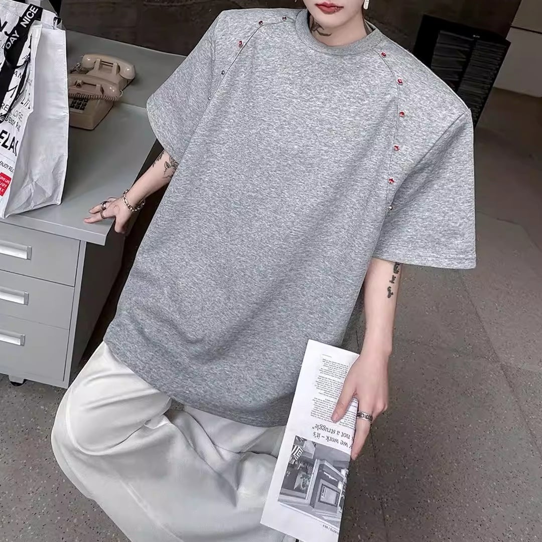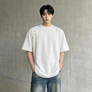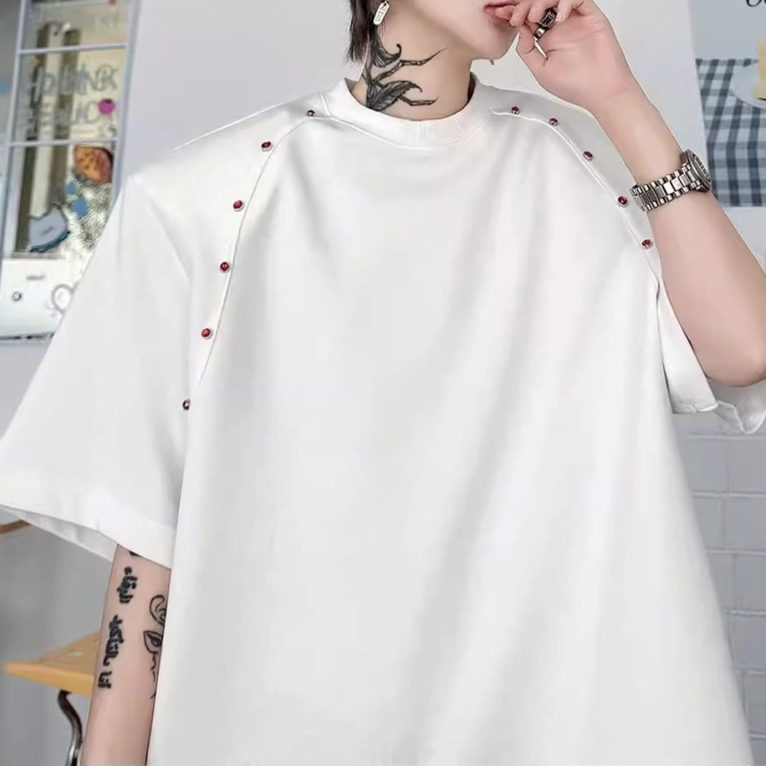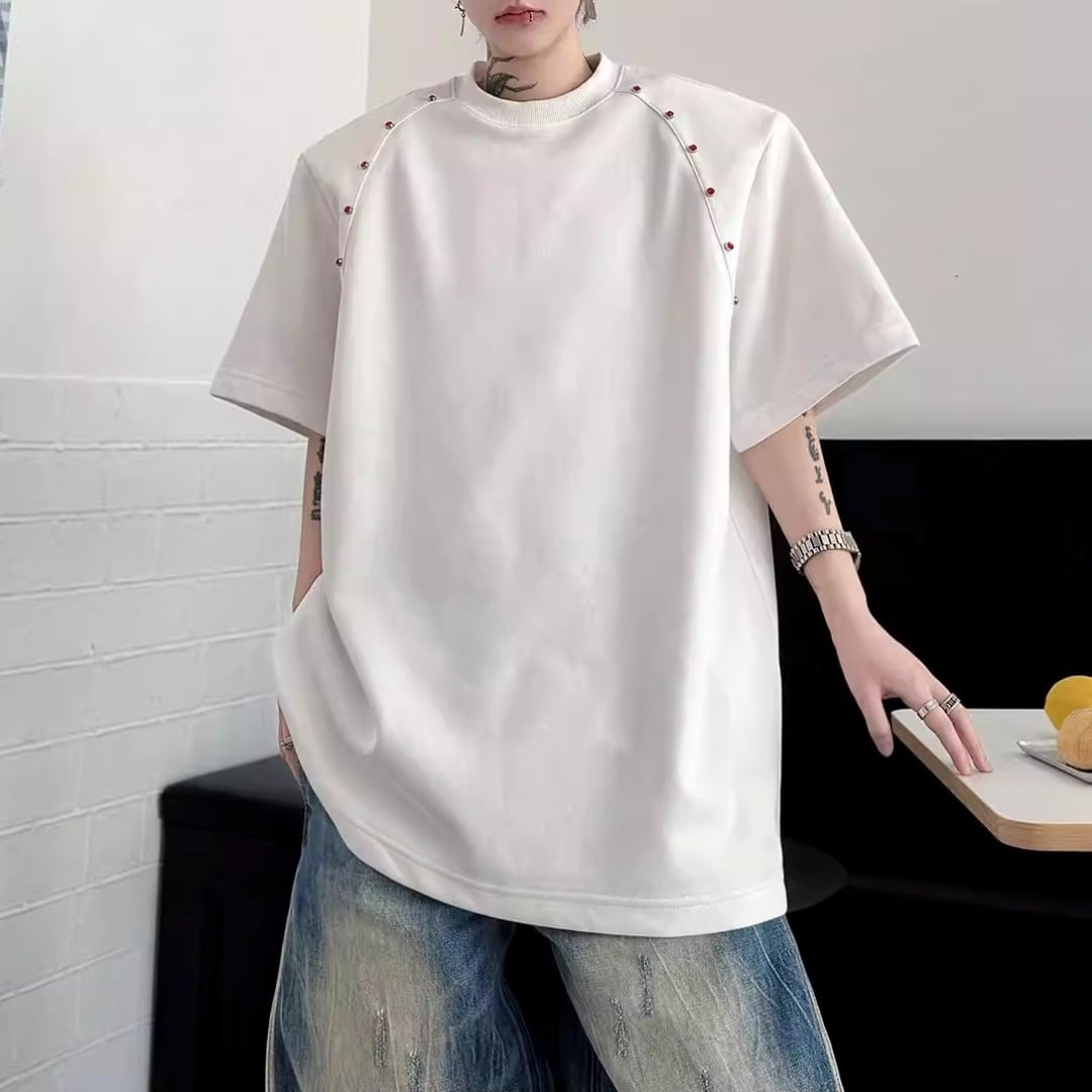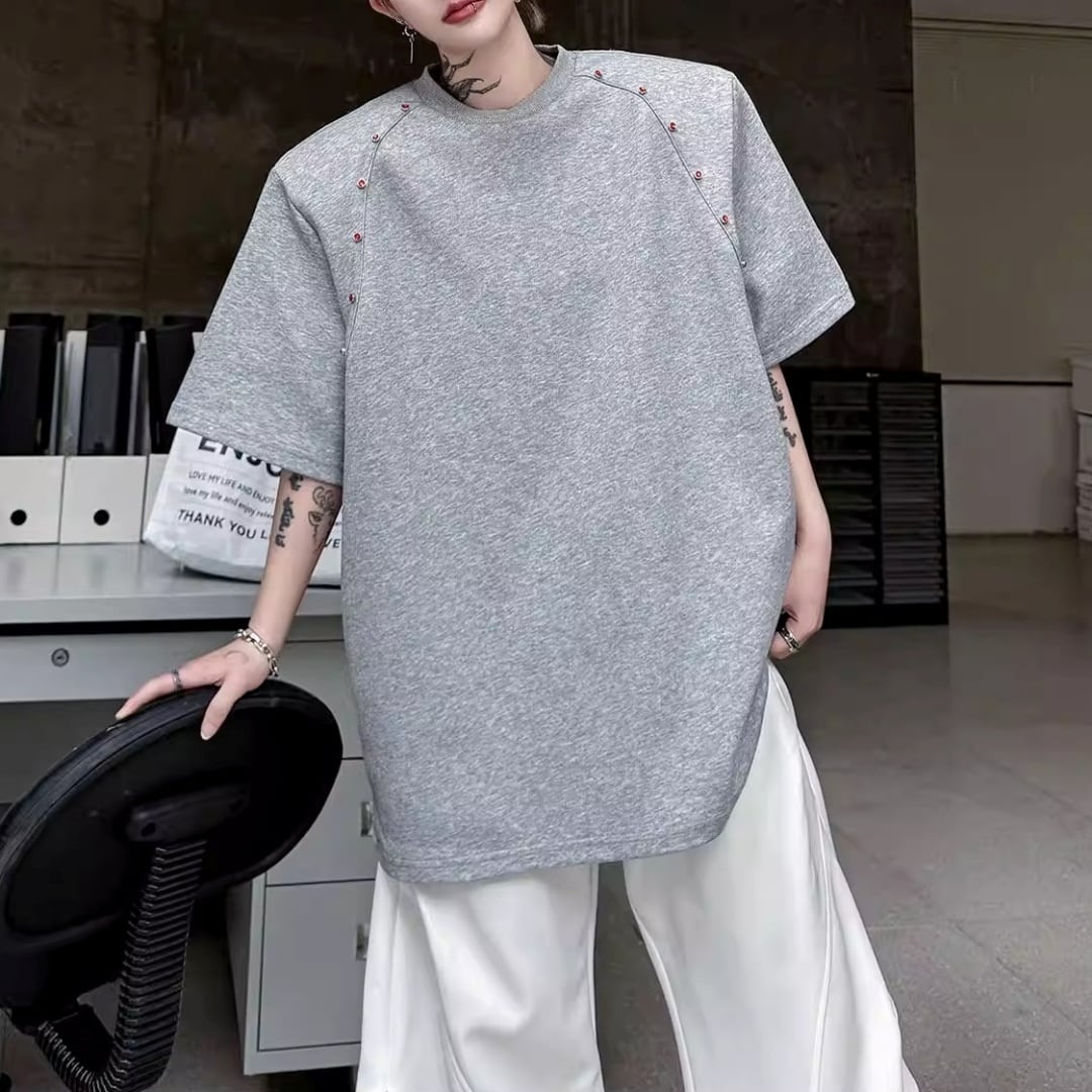 ビーズライン装飾 ワイドクルーネックTシャツ 3カラー D12283