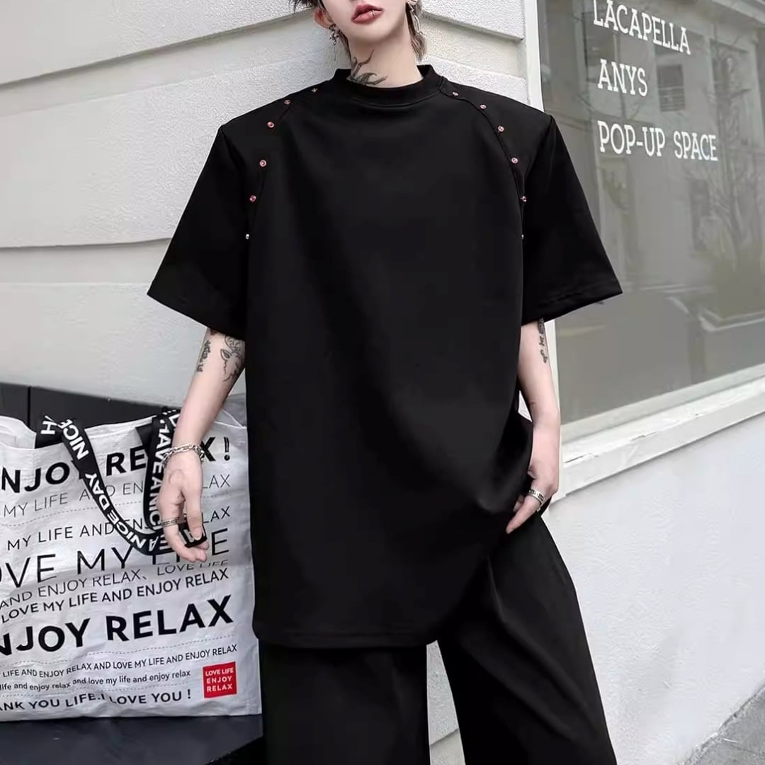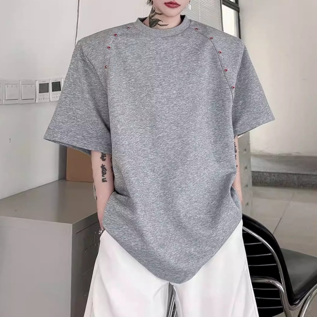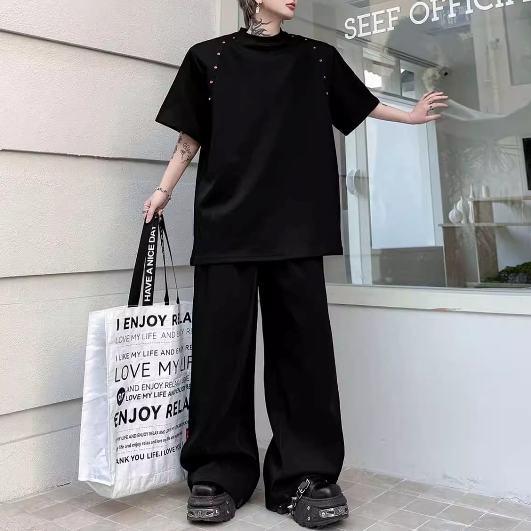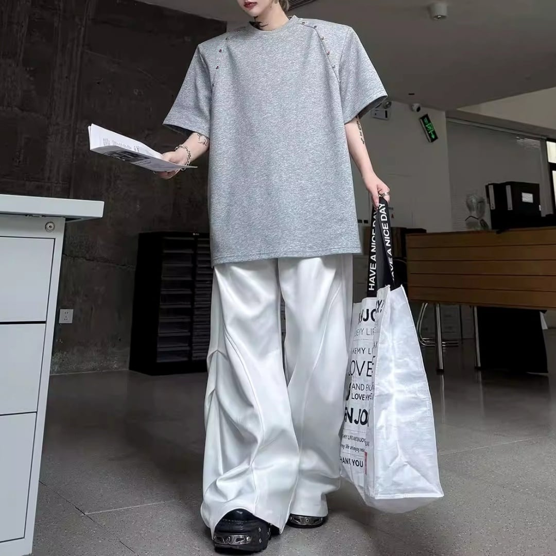 ビーズライン装飾 ワイドクルーネックTシャツ 3カラー D12283