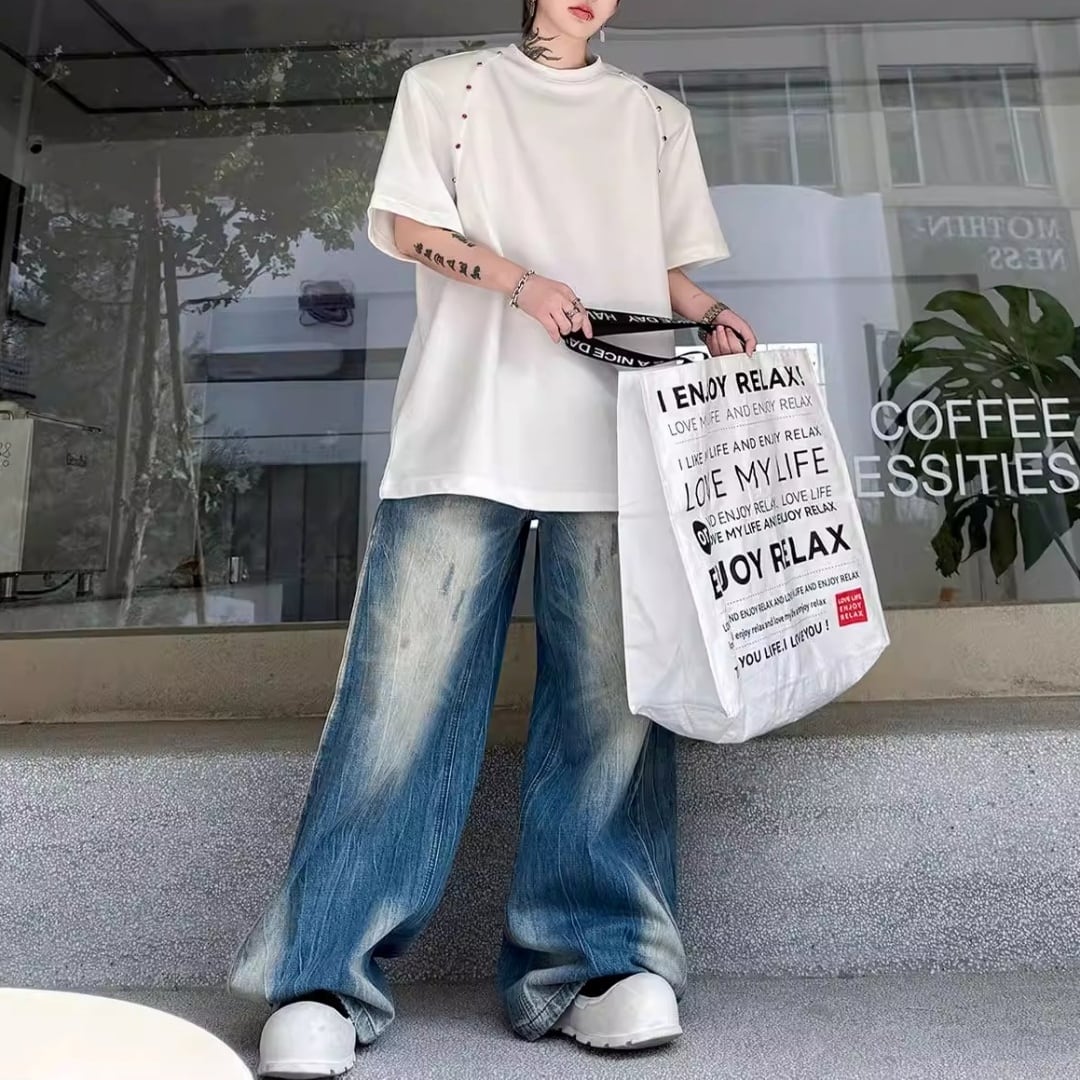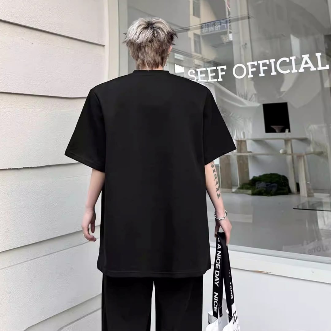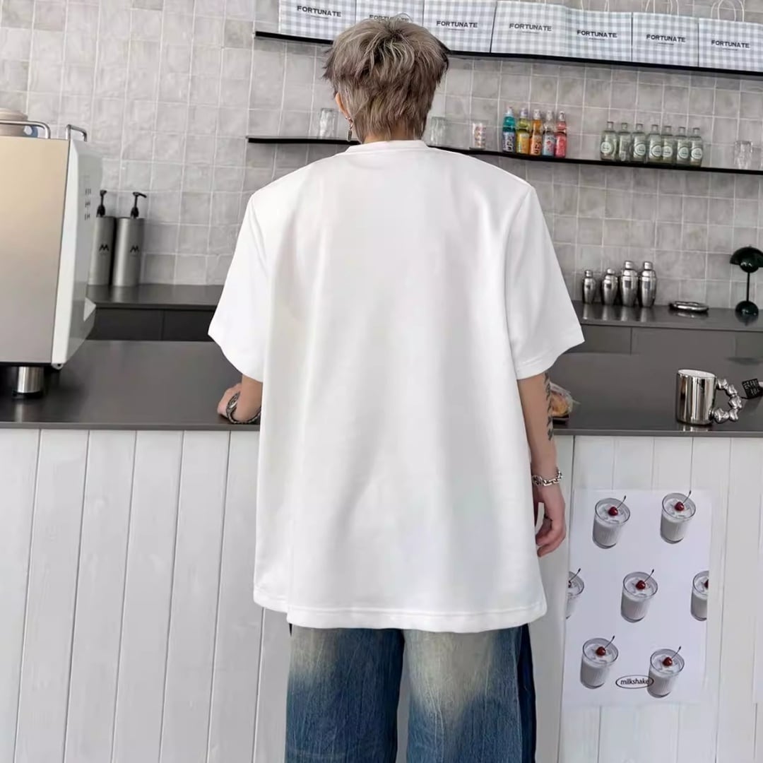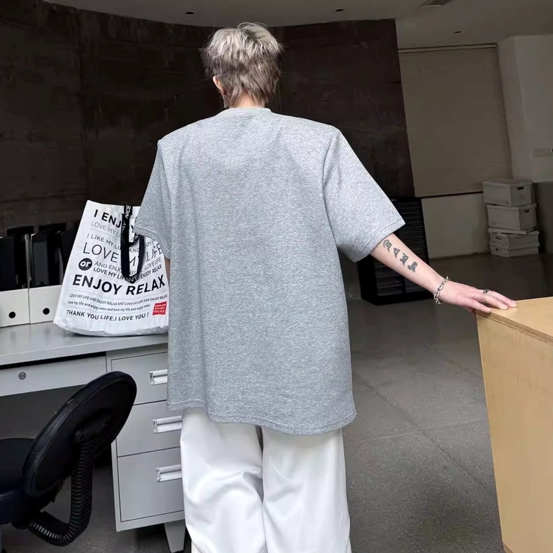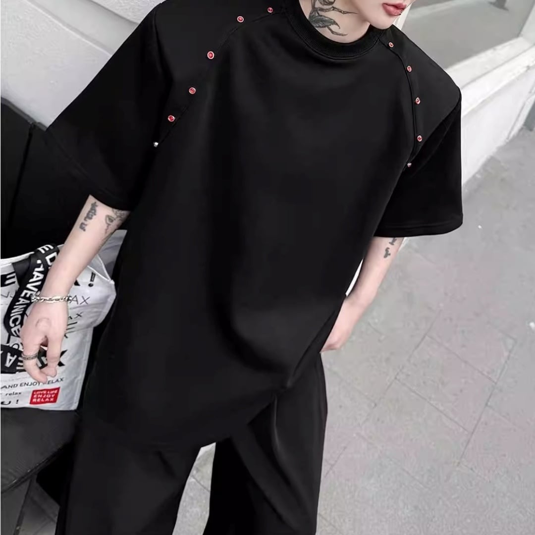 ビーズライン装飾 ワイドクルーネックTシャツ 3カラー D12283