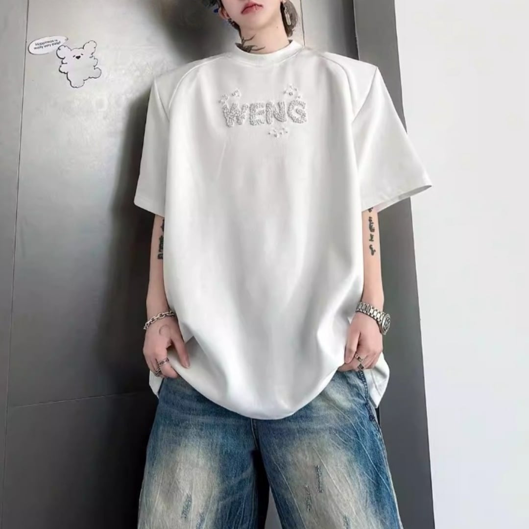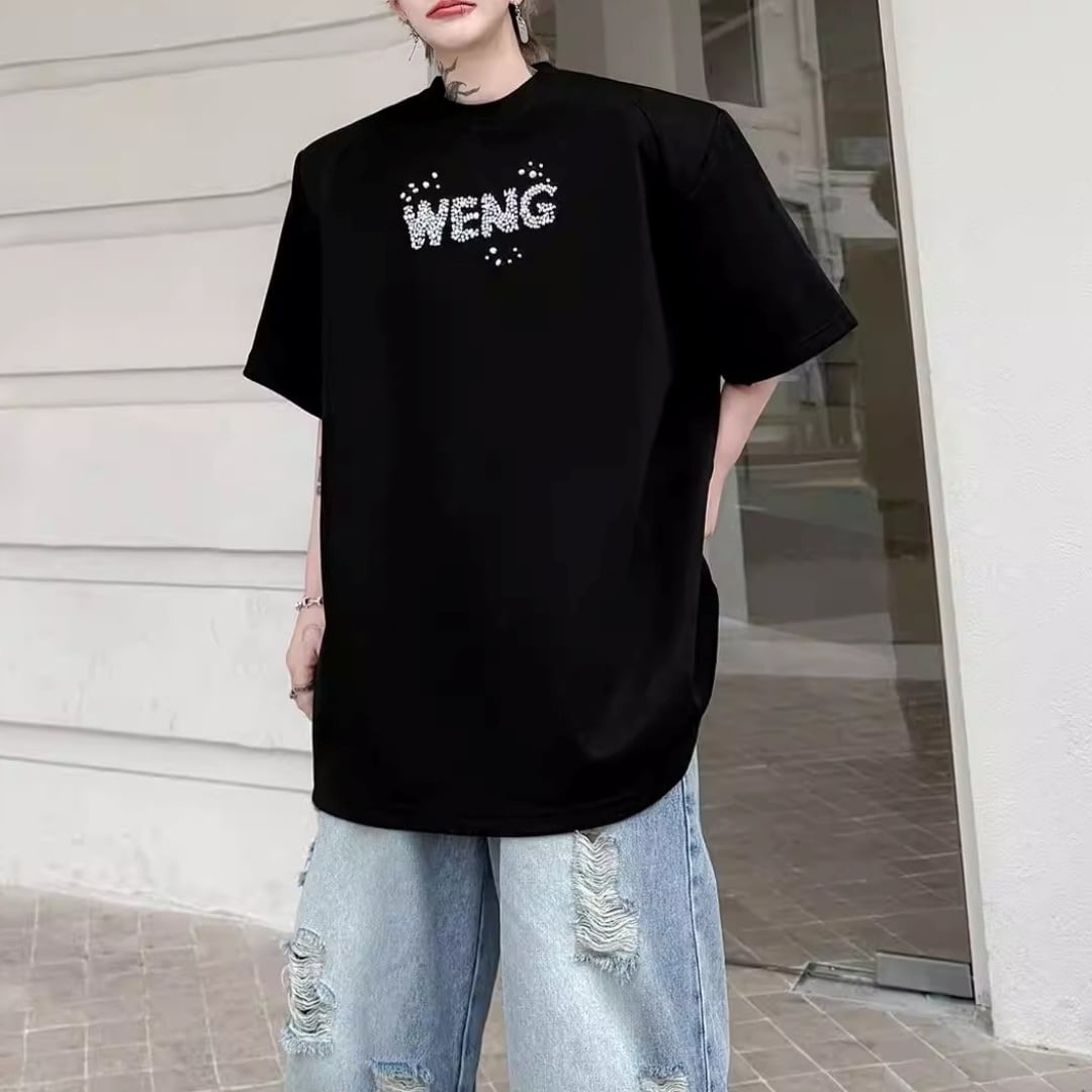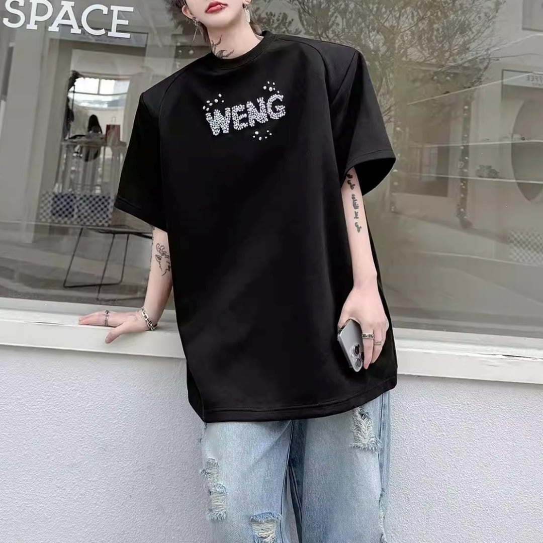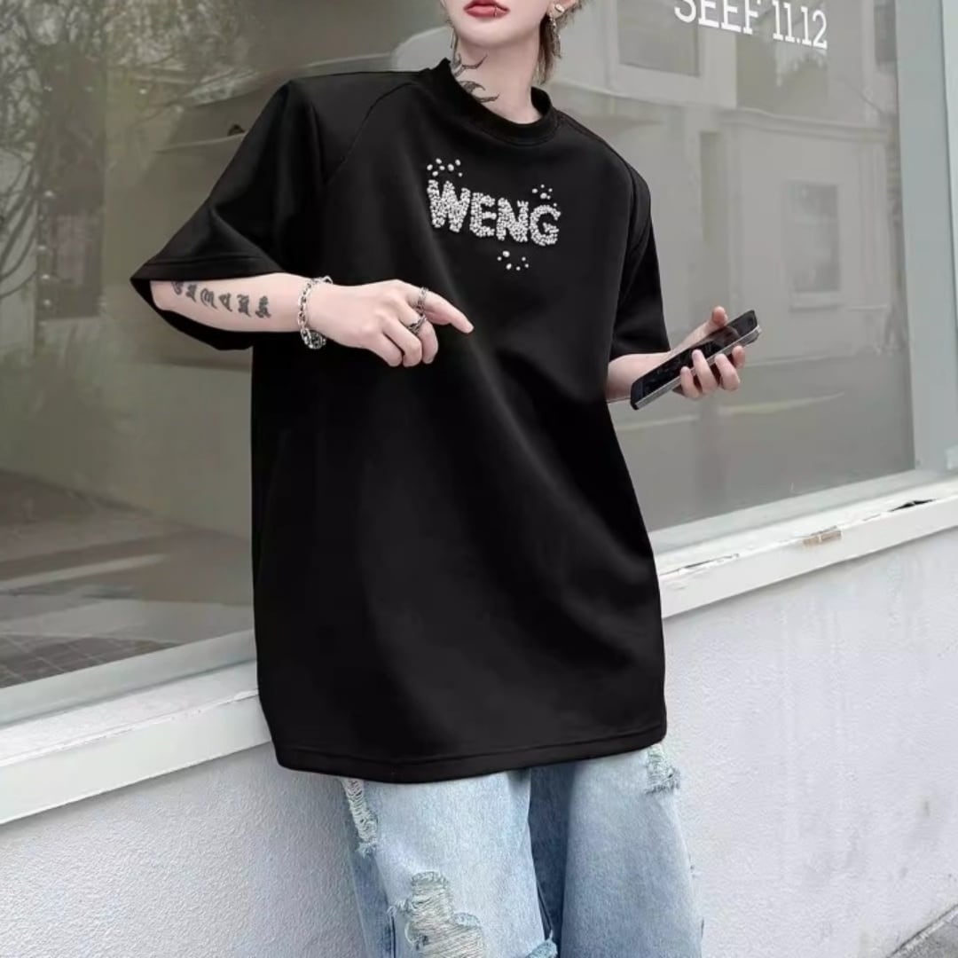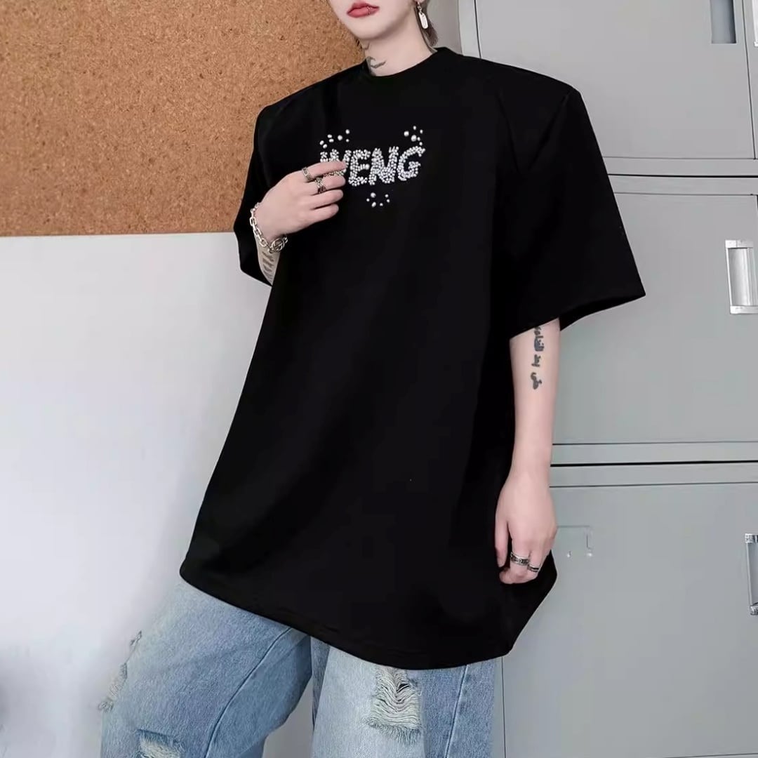 ビジューレタード ワイドシルエットTシャツ 2カラー D12289