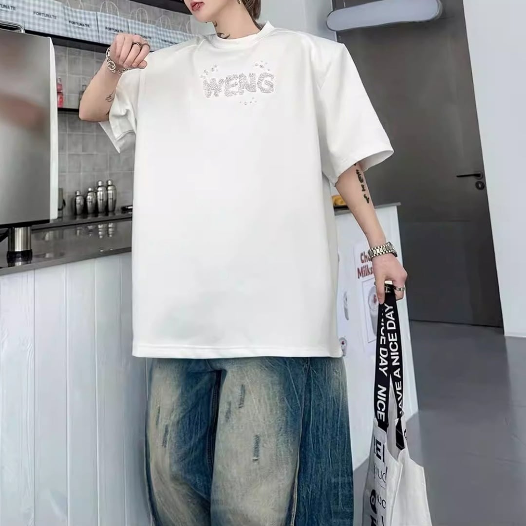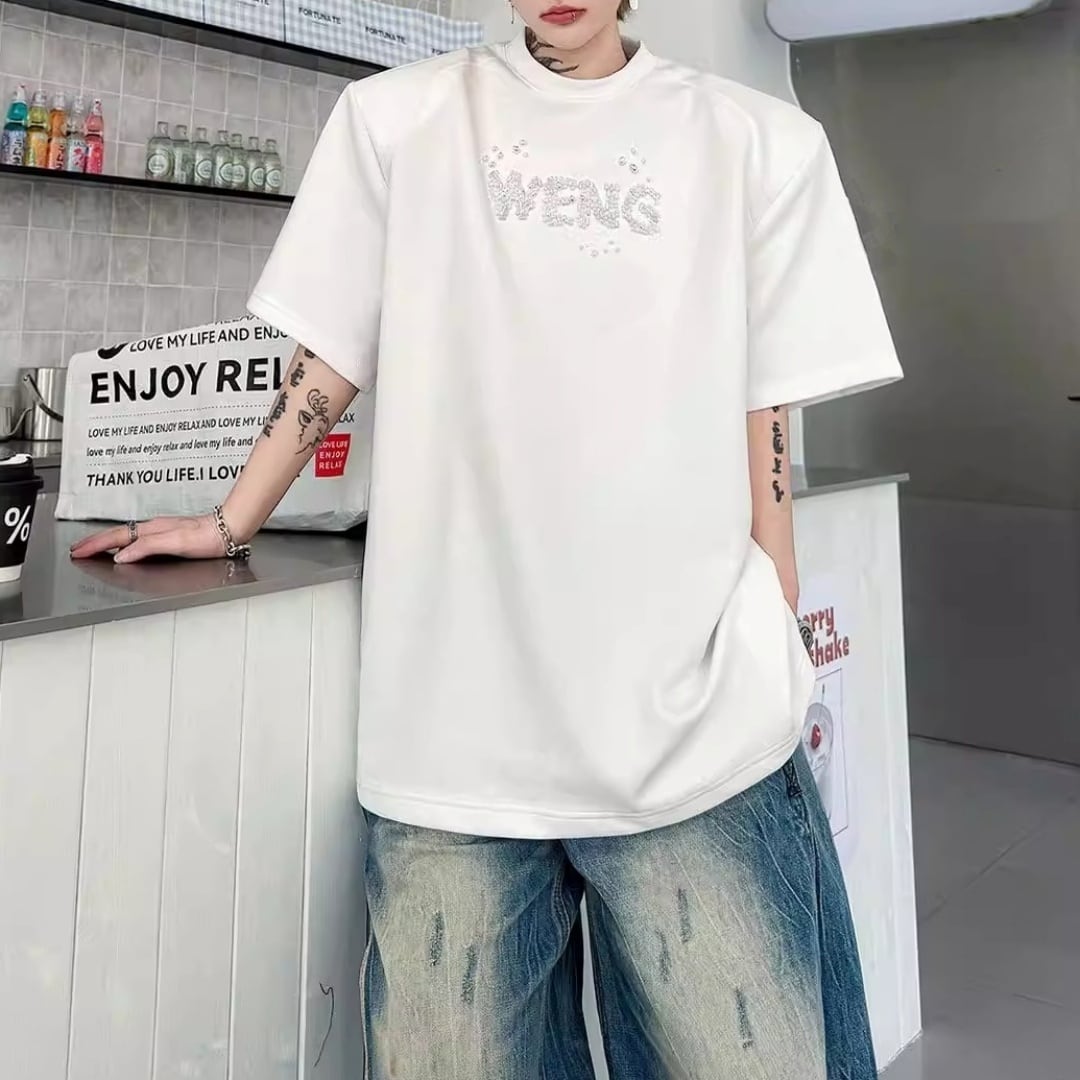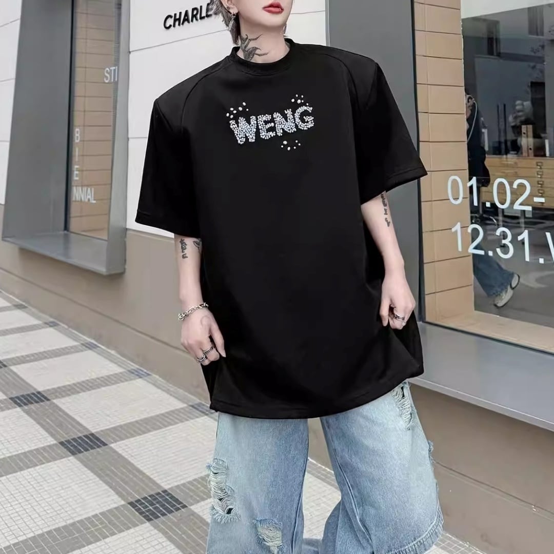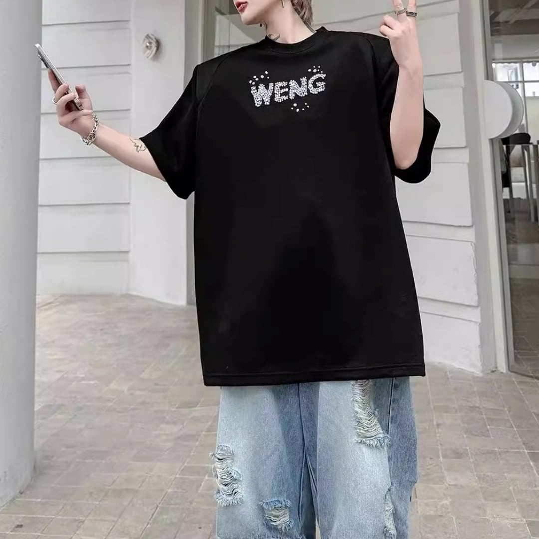 ビジューレタード ワイドシルエットTシャツ 2カラー D12289