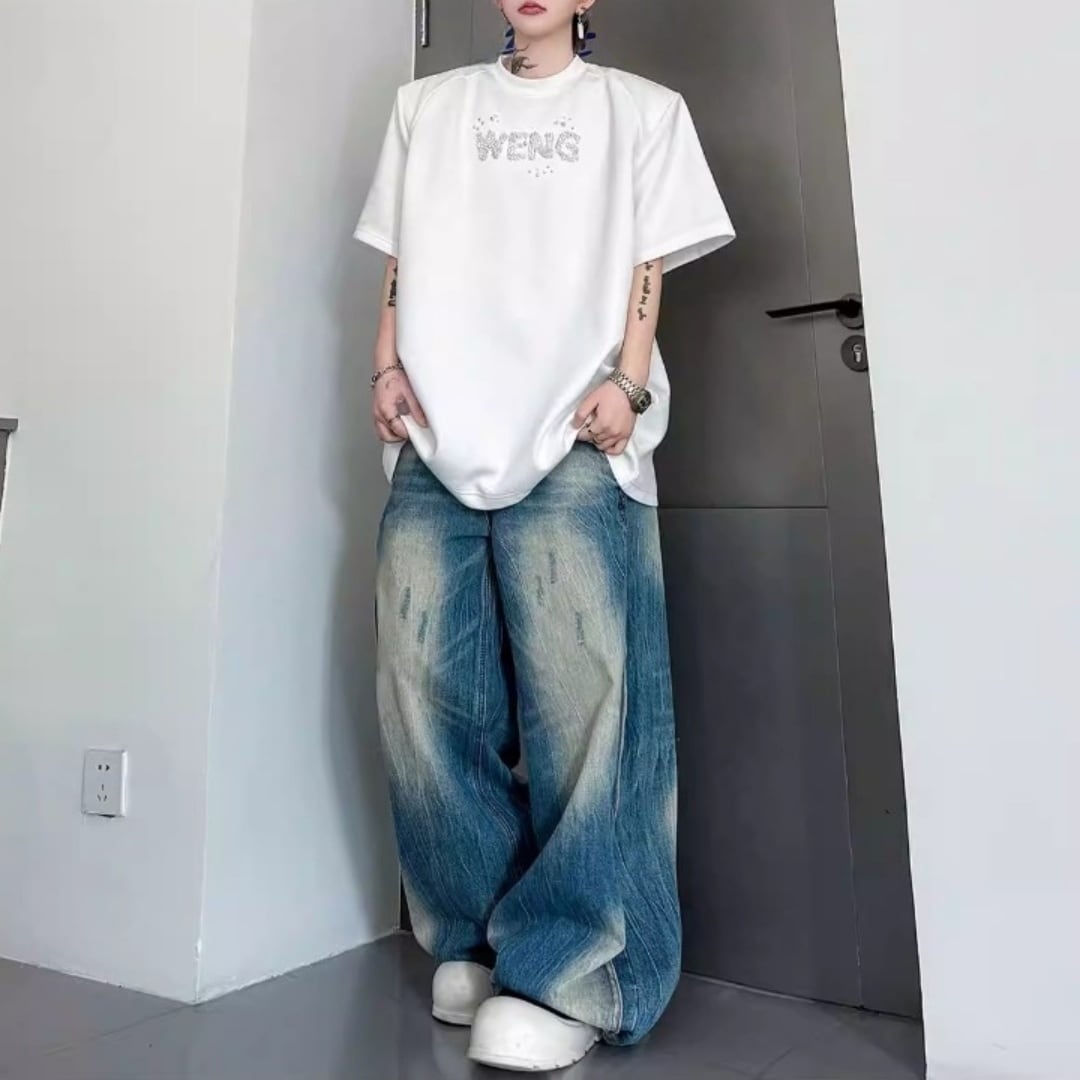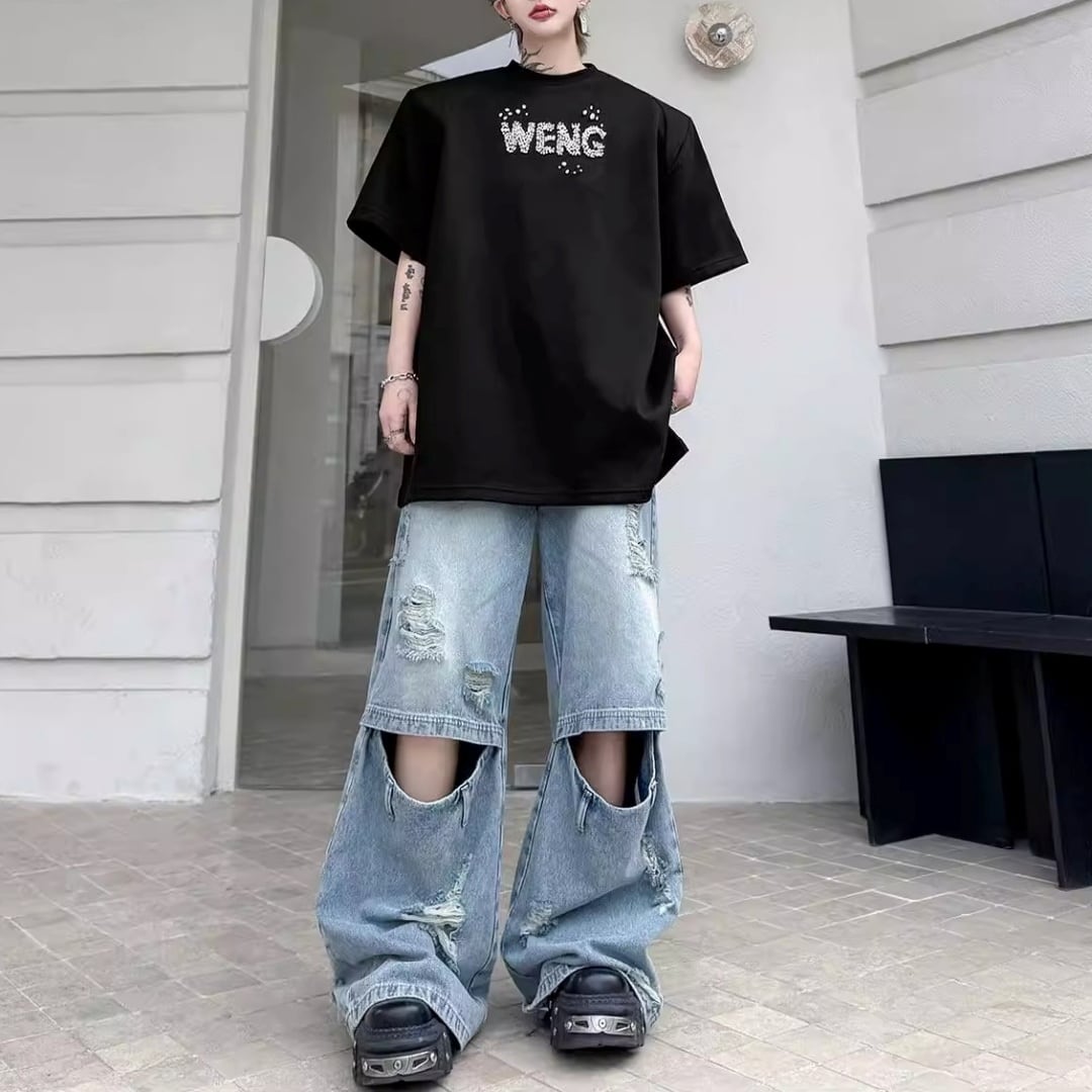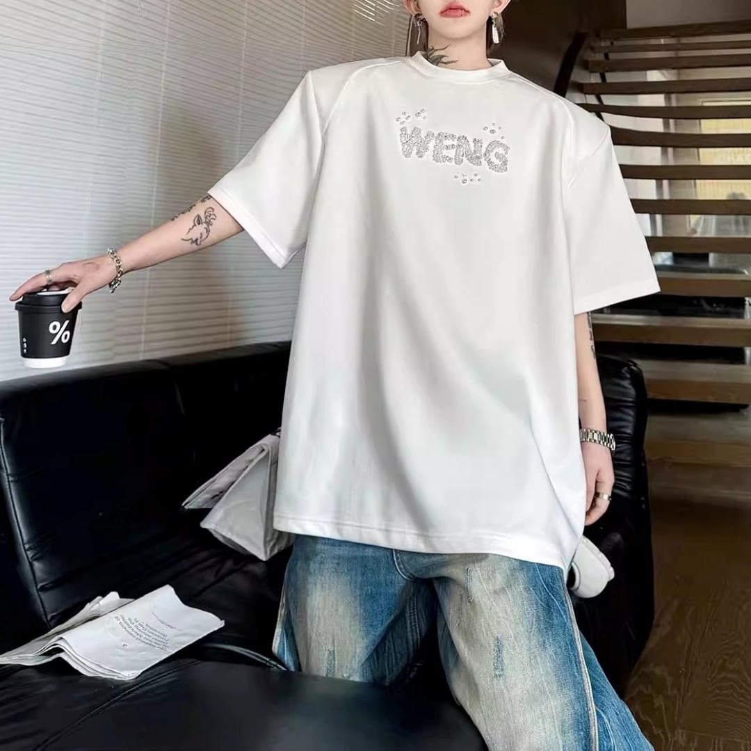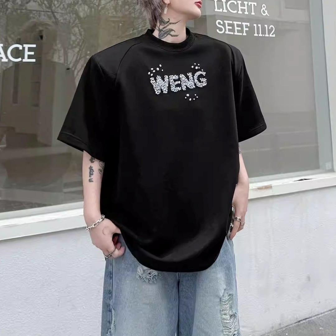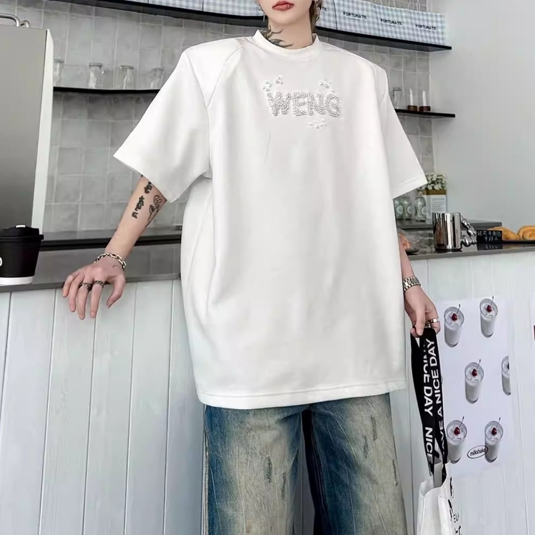 ビジューレタード ワイドシルエットTシャツ 2カラー D12289