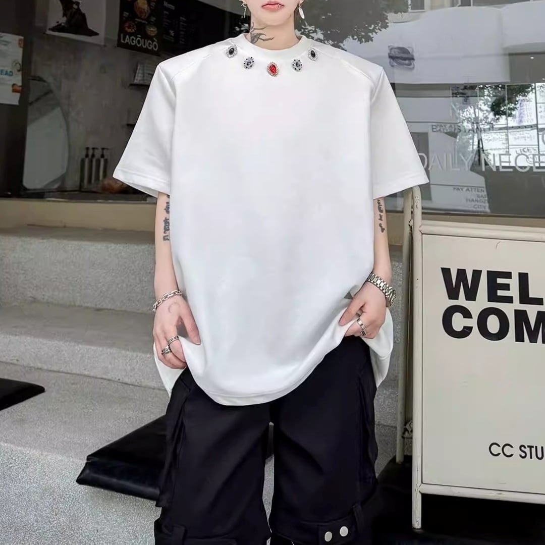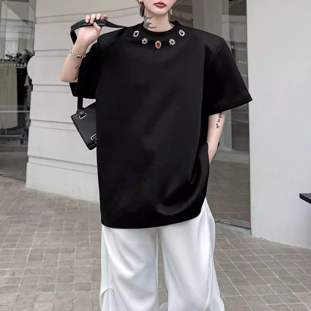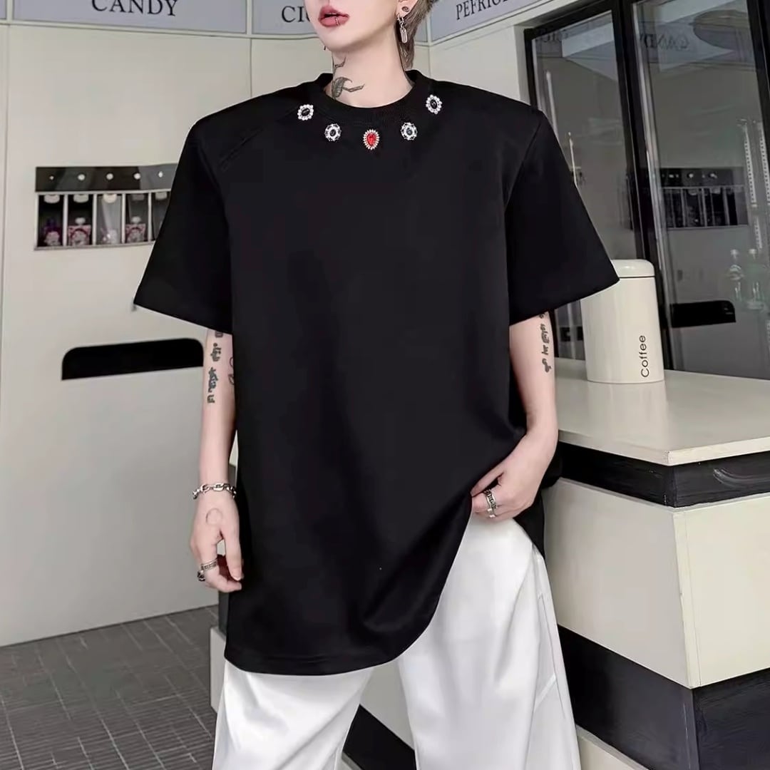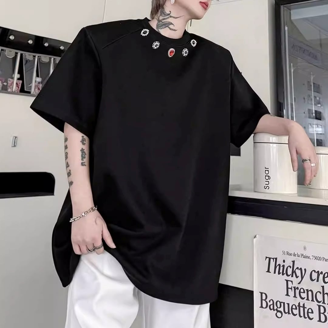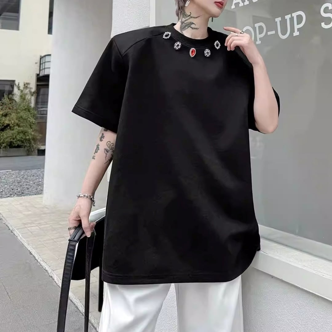 ジュエルネック オーバーサイズTシャツ 2カラー D12290