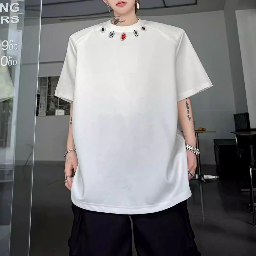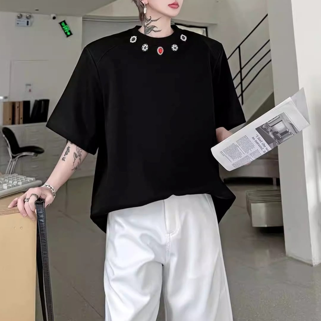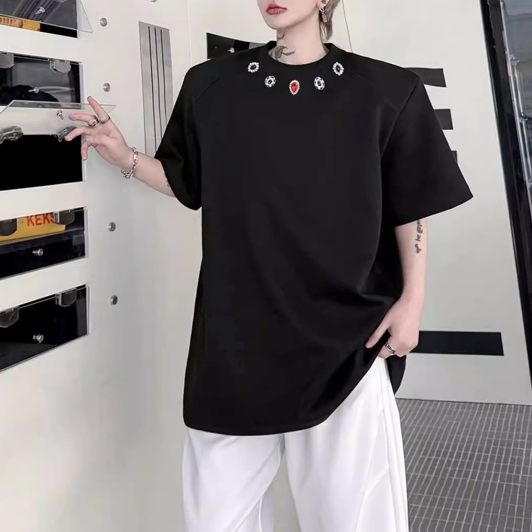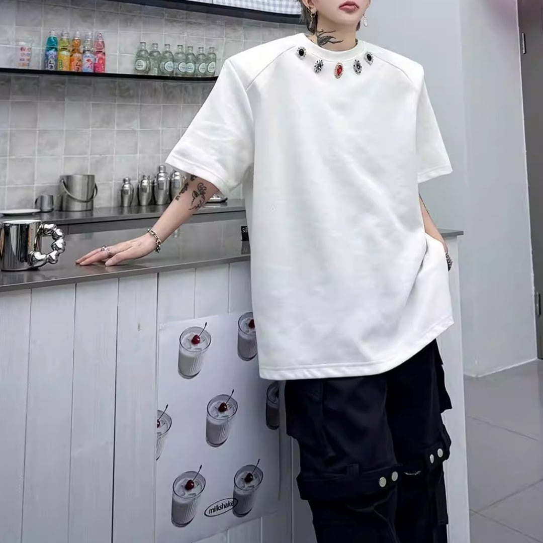 ジュエルネック オーバーサイズTシャツ 2カラー D12290