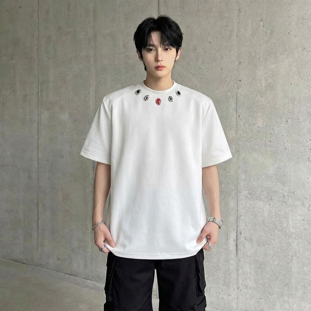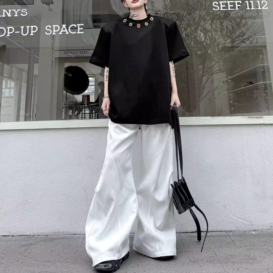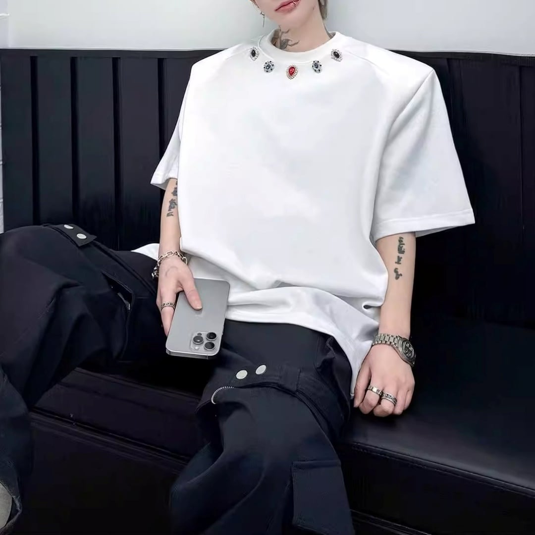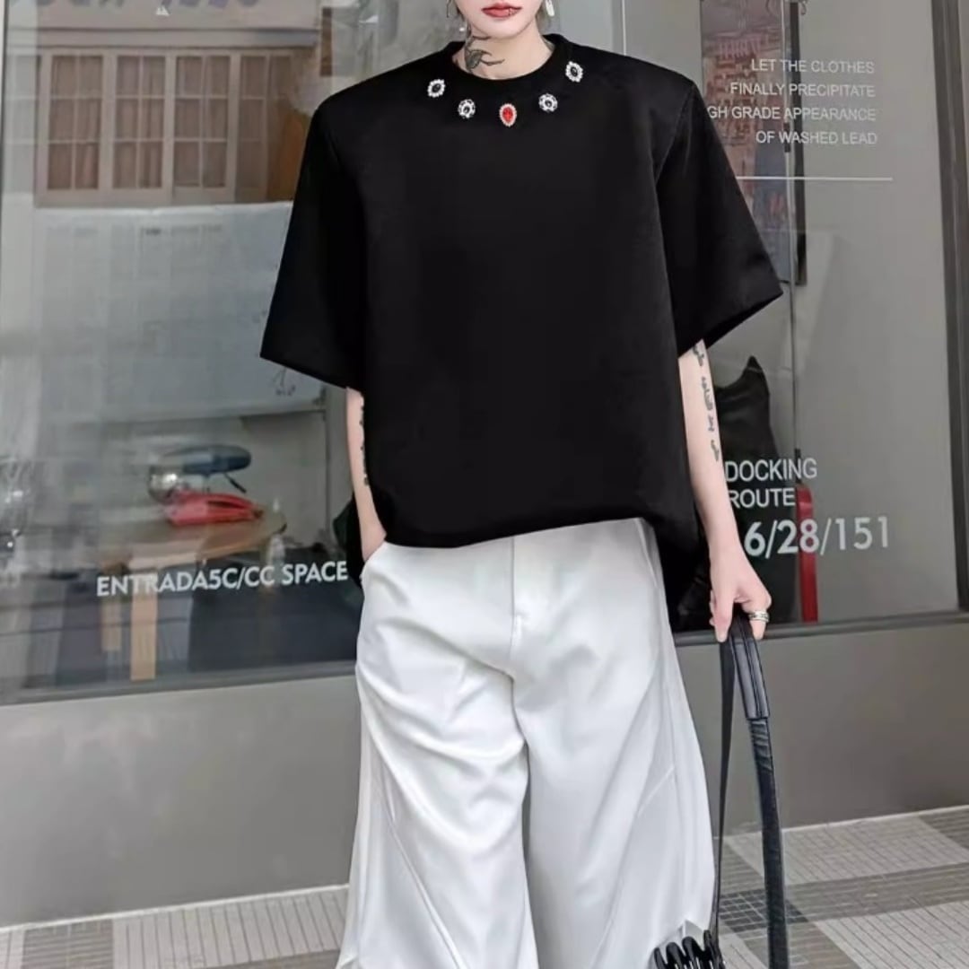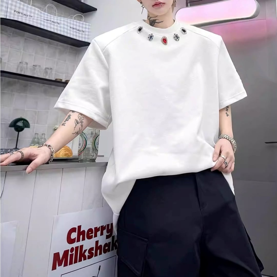 ジュエルネック オーバーサイズTシャツ 2カラー D12290