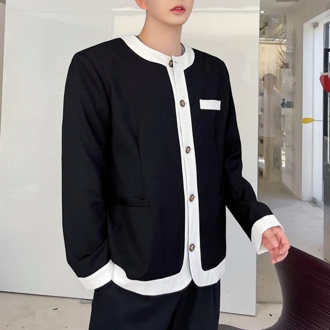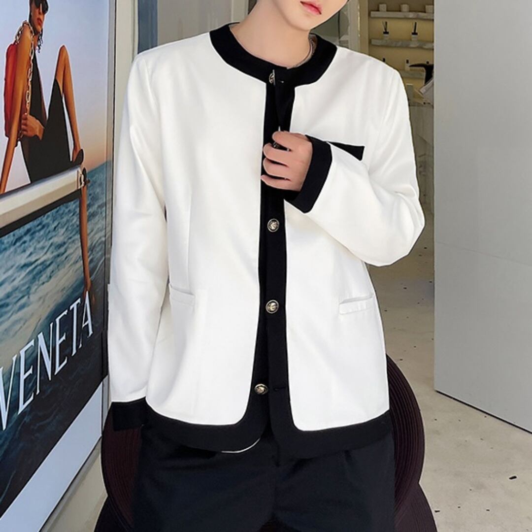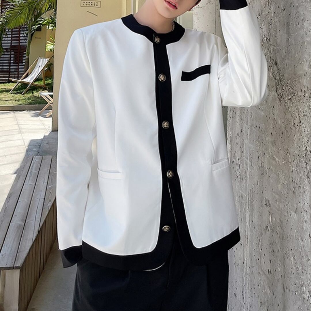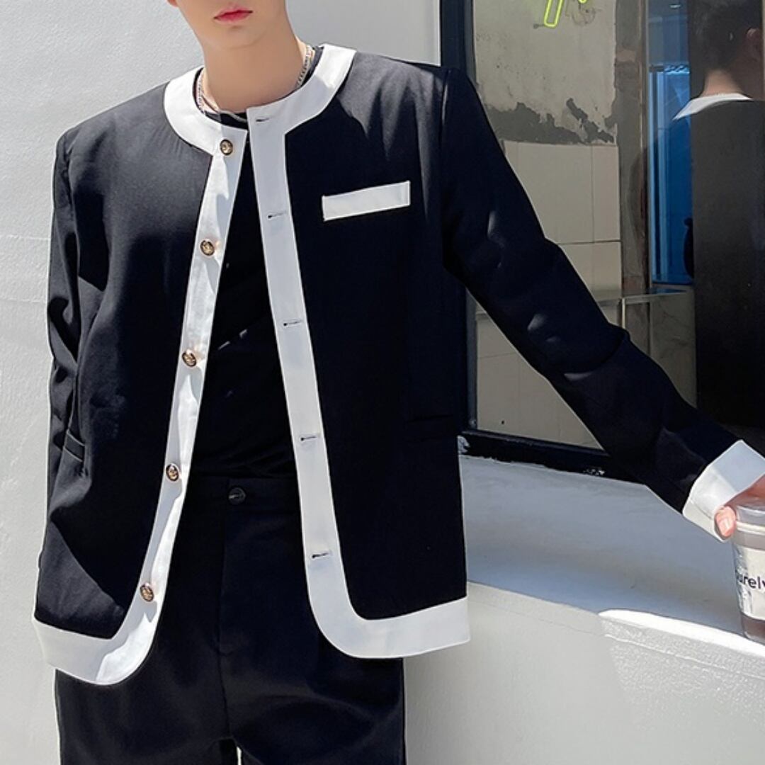 【即納対応商品】モノトーン ノーカラージャケット 2カラー D10010